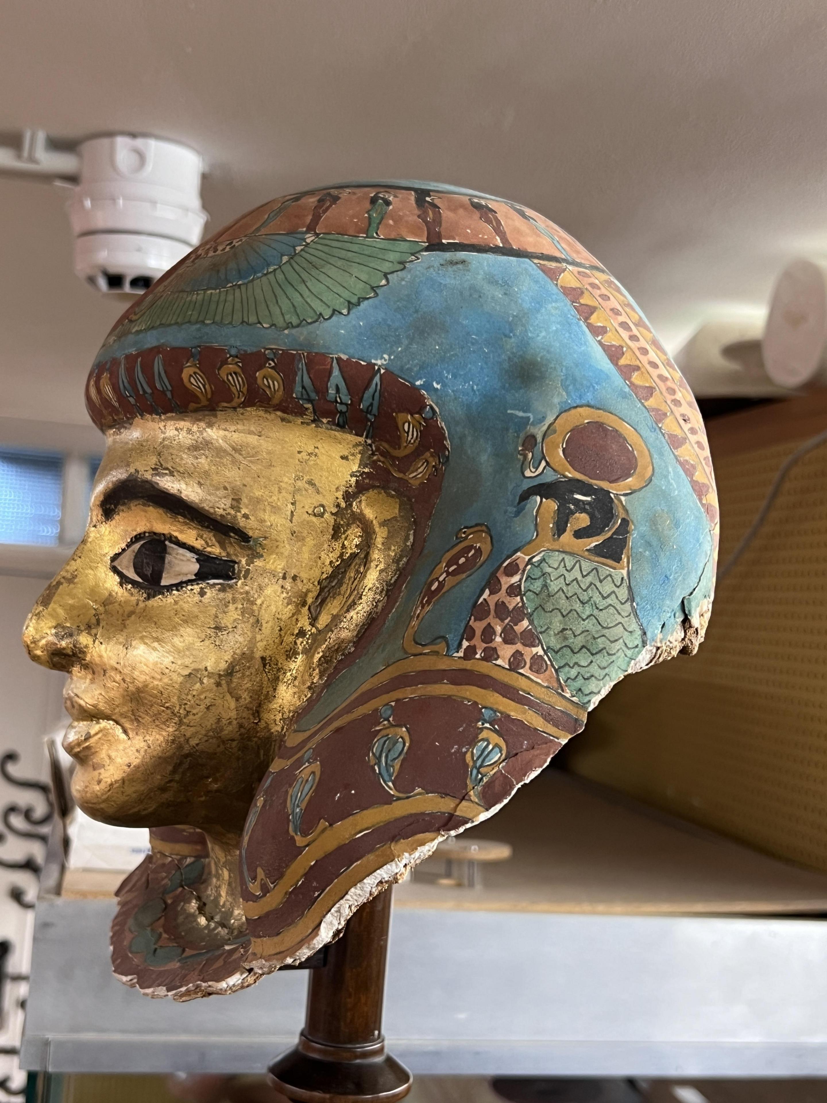 Egypt, a painted mummy mask, restored and possibly partly from the Late Period.