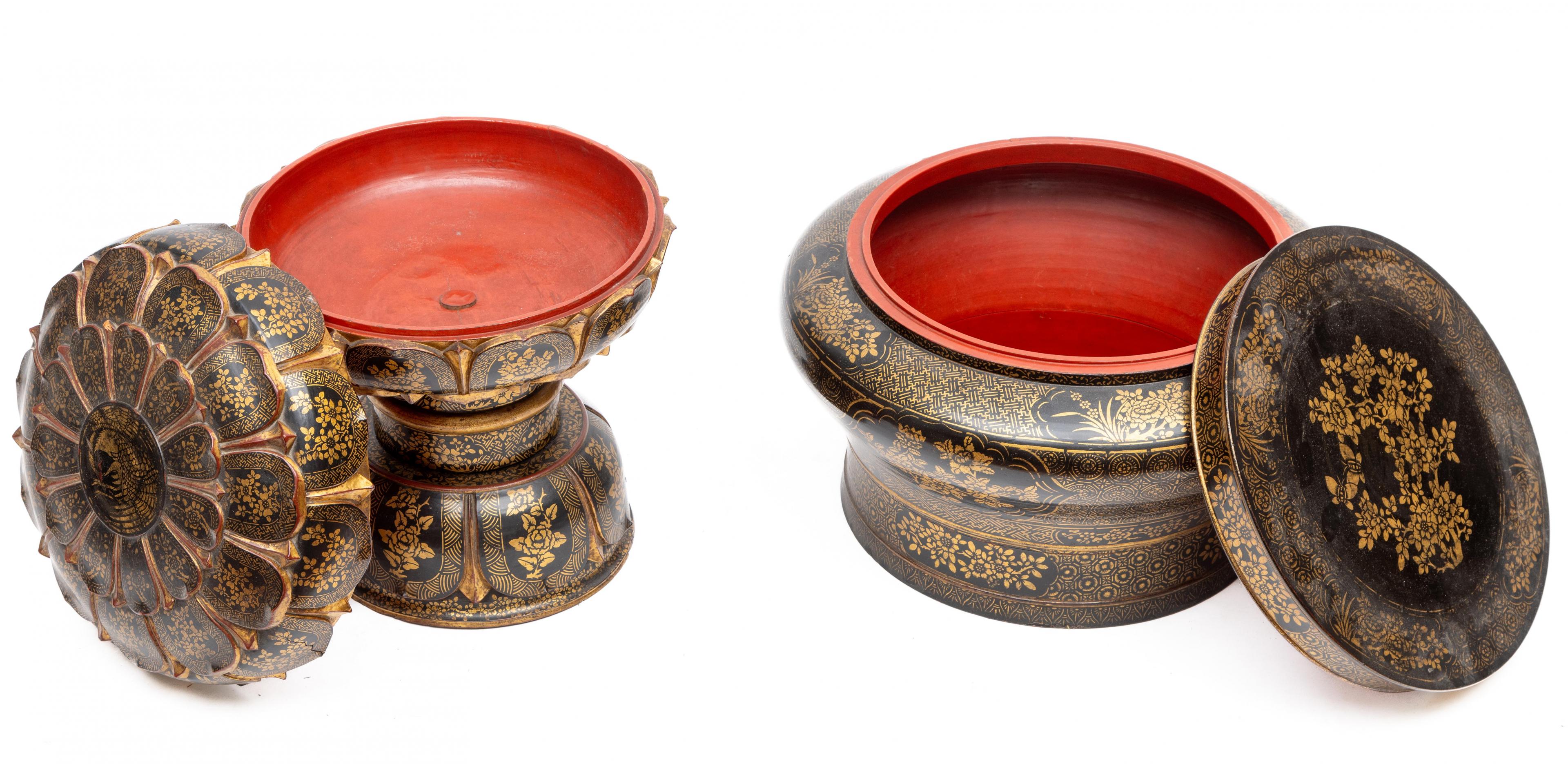 Thailand, twee houten ceremoniële voedselschalen.