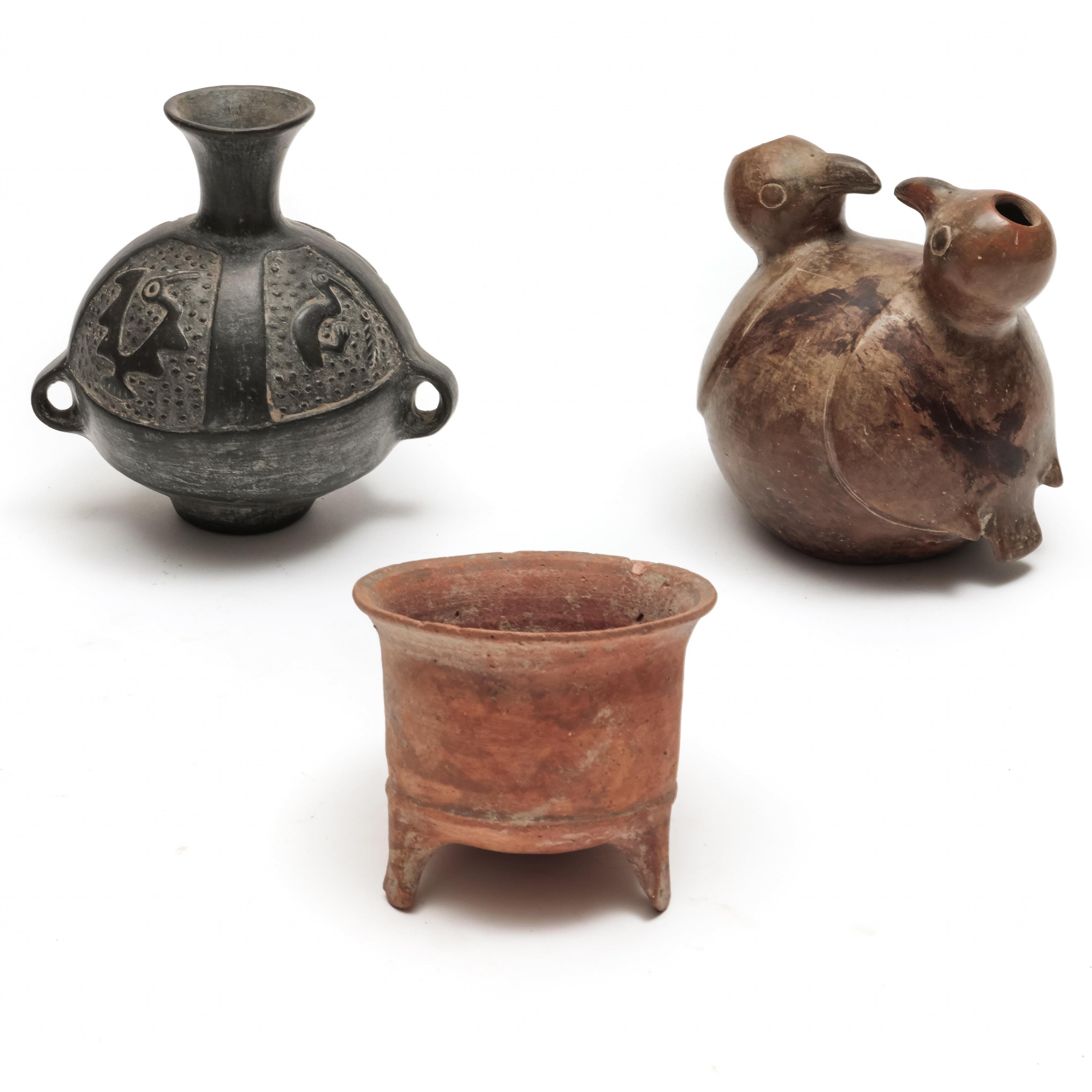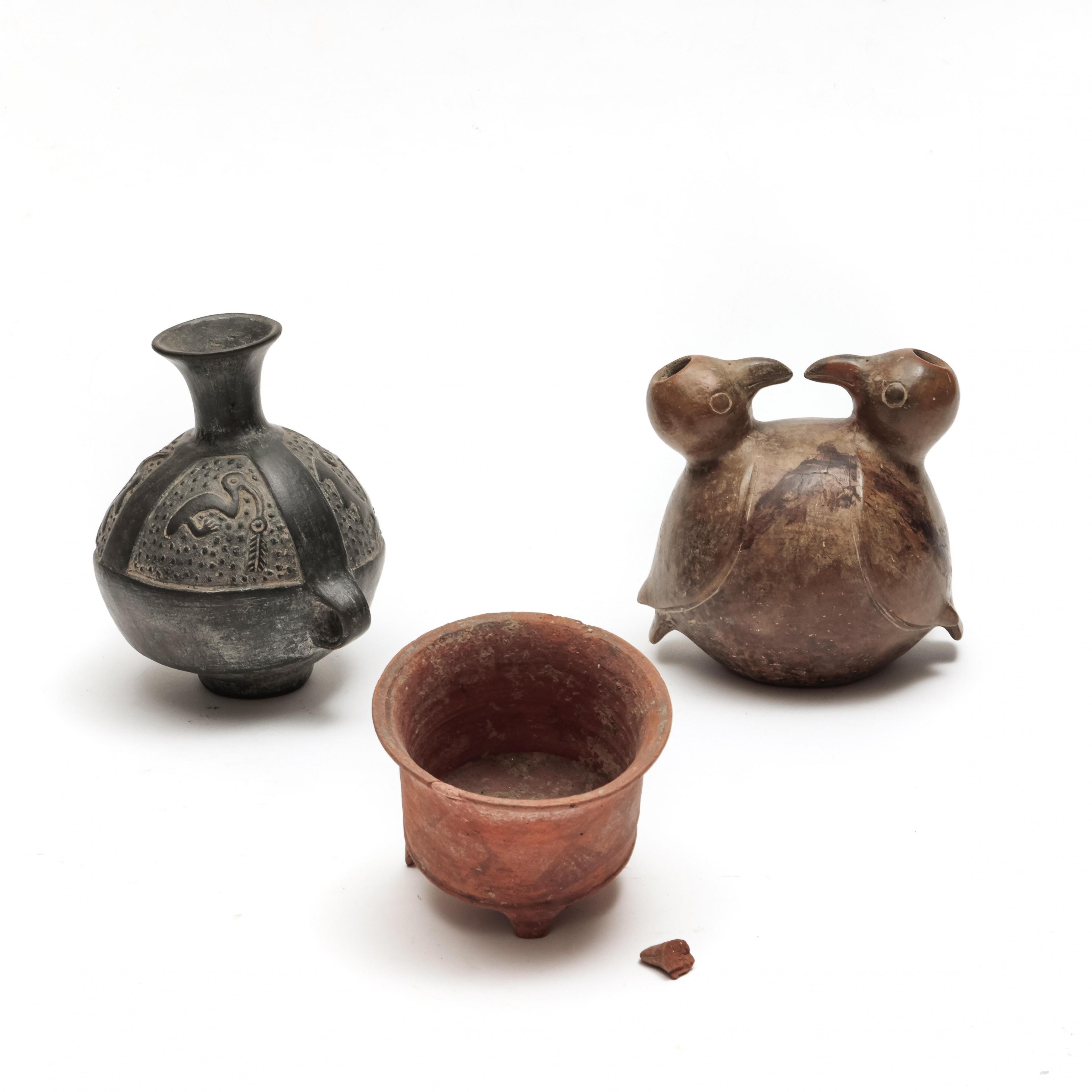 Peru, Sican a terracotta vase and a vase with double bird-heads