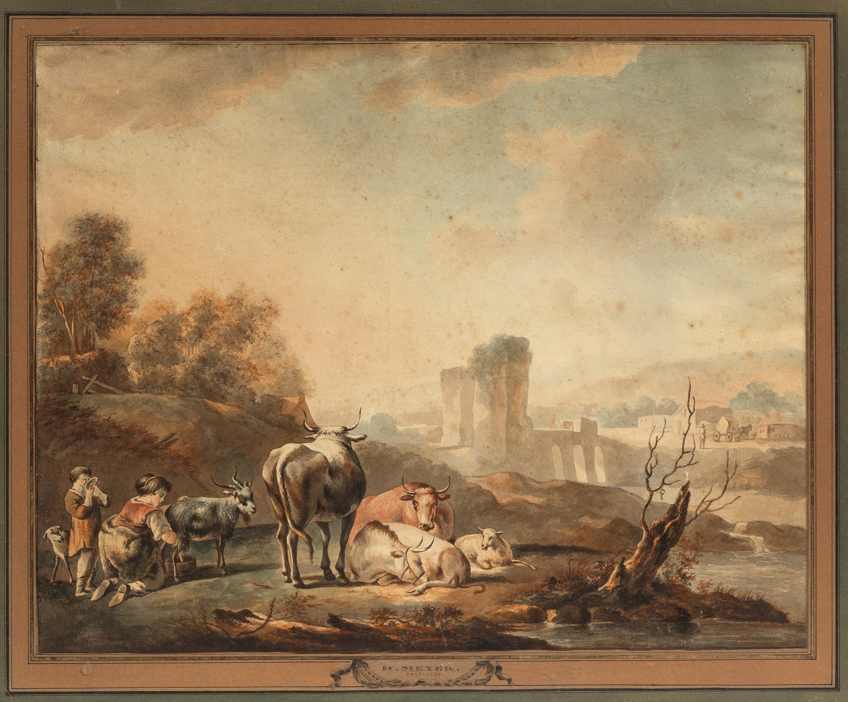 paar aquarellen, één gesign. r.o., 37 x 47 cm.