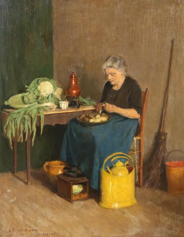 Aardappelschillende vrouw