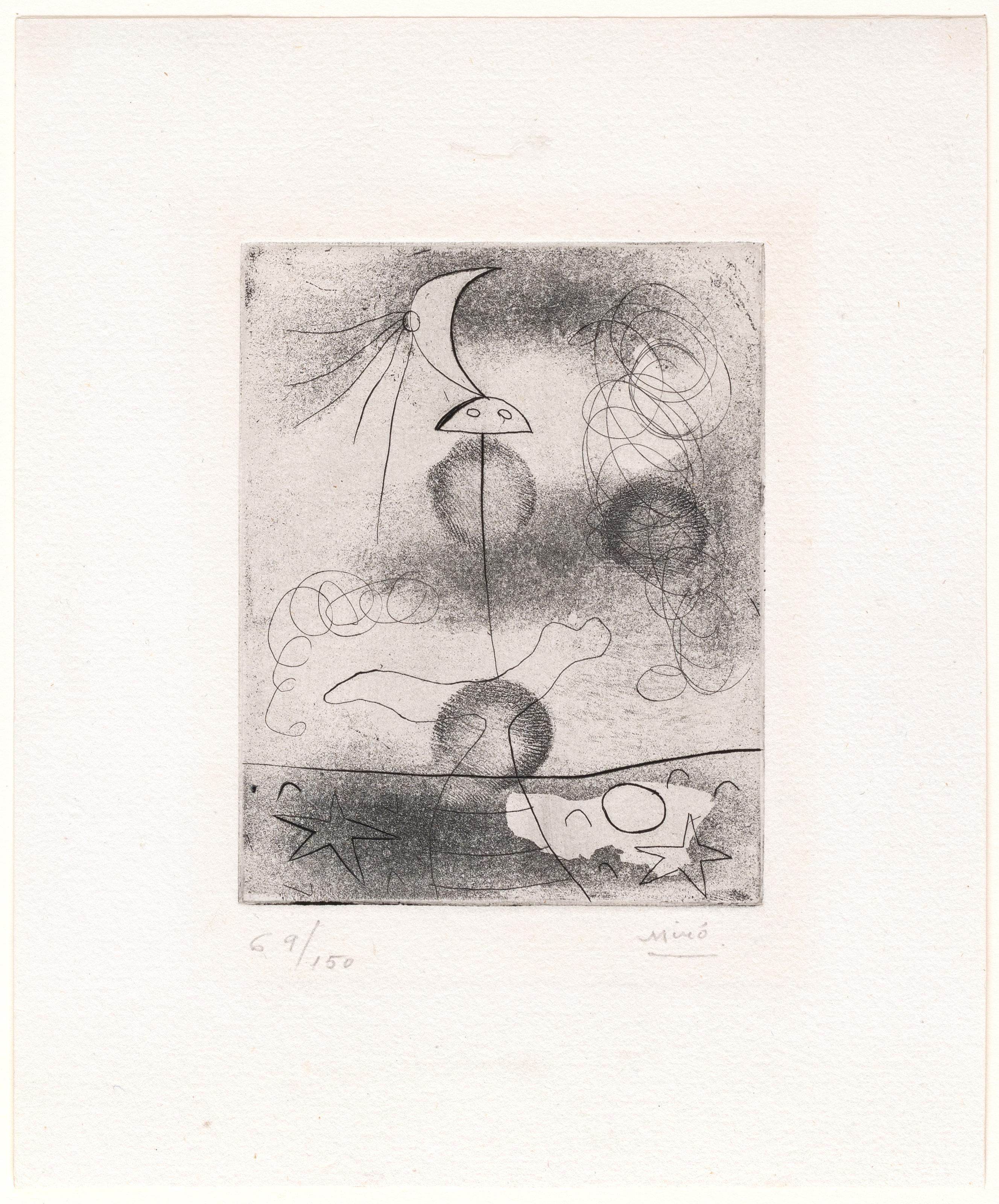 etching, signed ' Miro' and numbered '69/150', image 10 x 8 cm., sheet 17,5 x 14,6 cm.