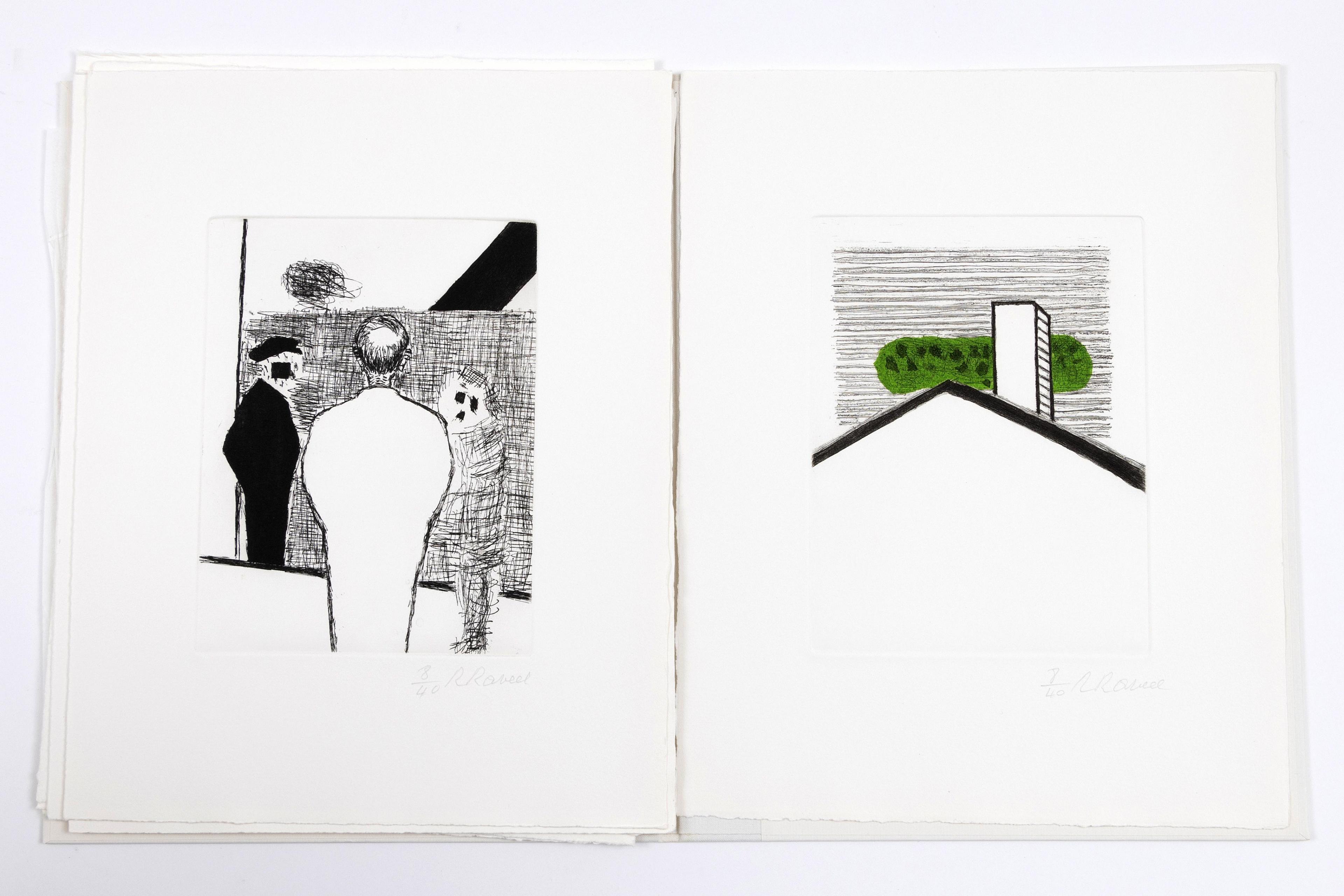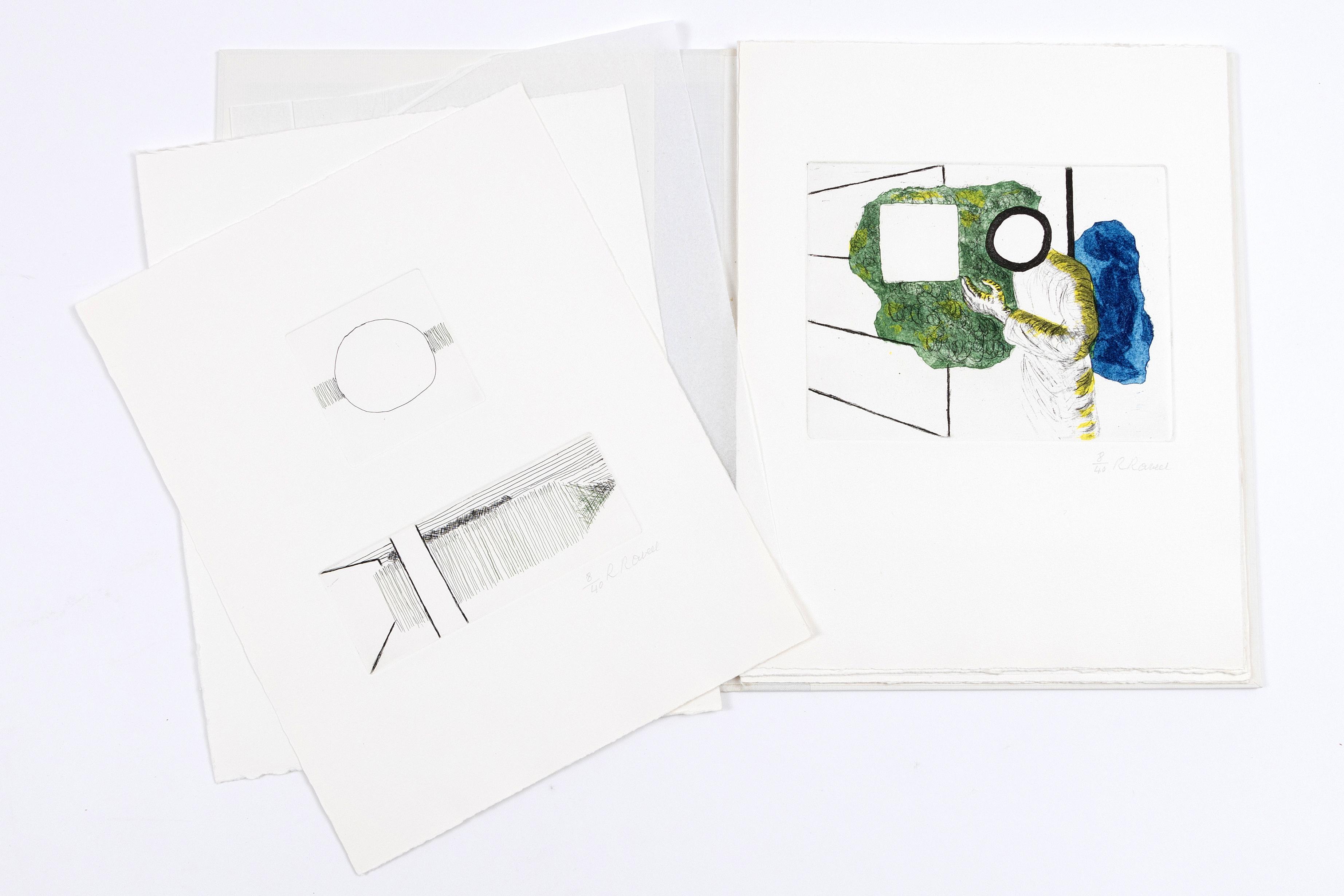 portfolio in two parts with one part with nine etchings and text and the other with nine etchings on eight sheets, signed ' R. Raveel' and numbered '8/40', 35 x 27,6 cm.