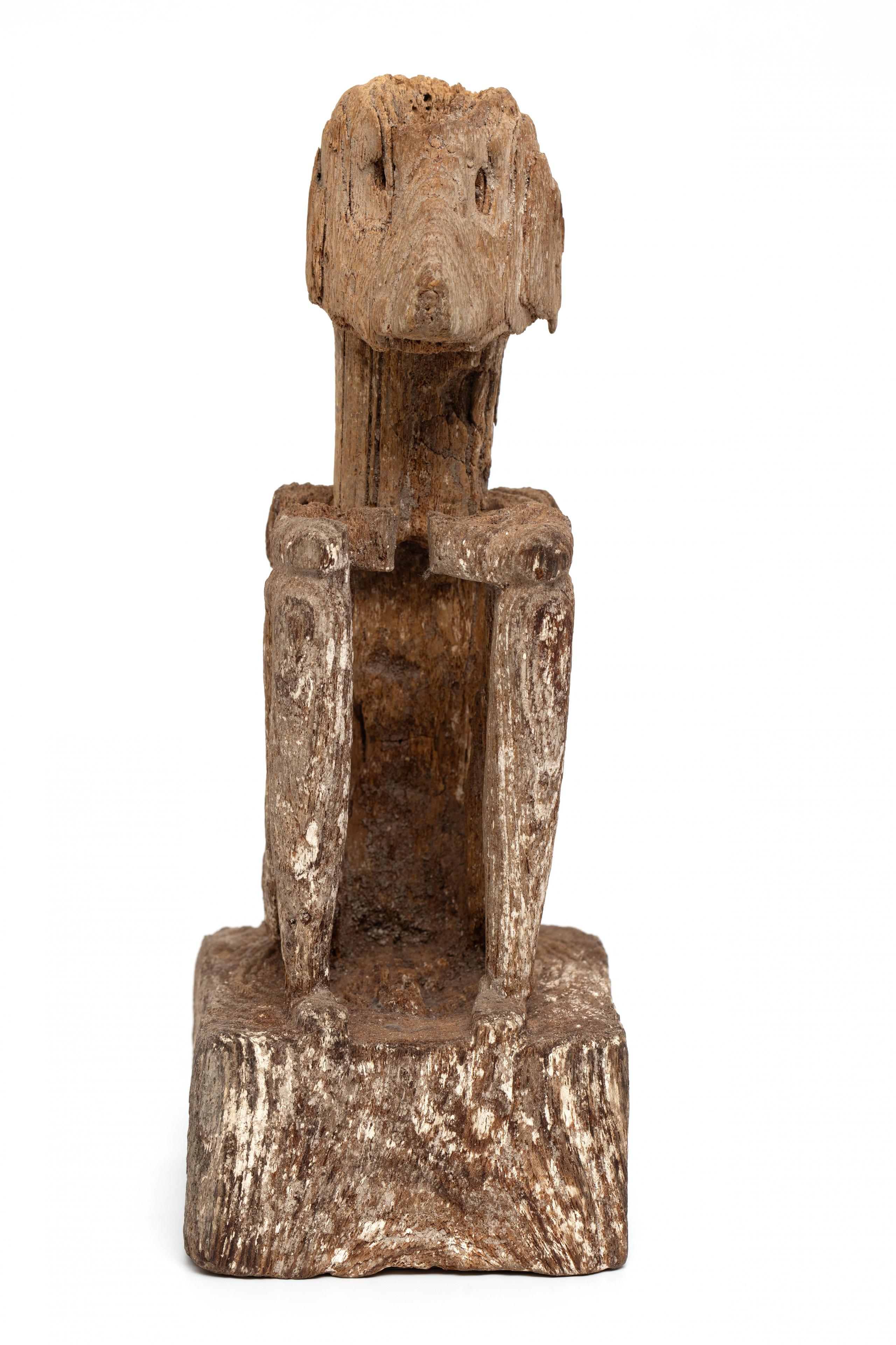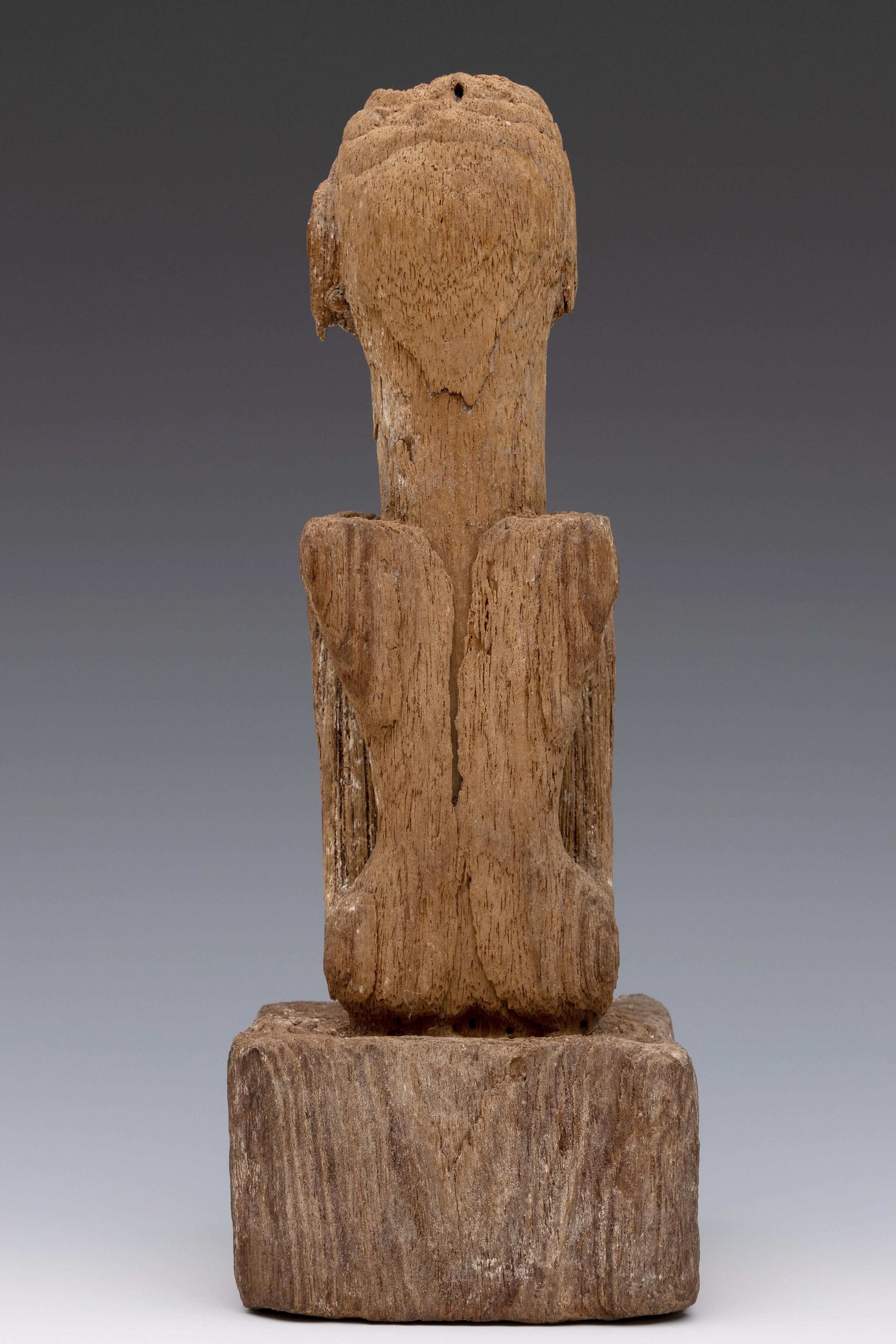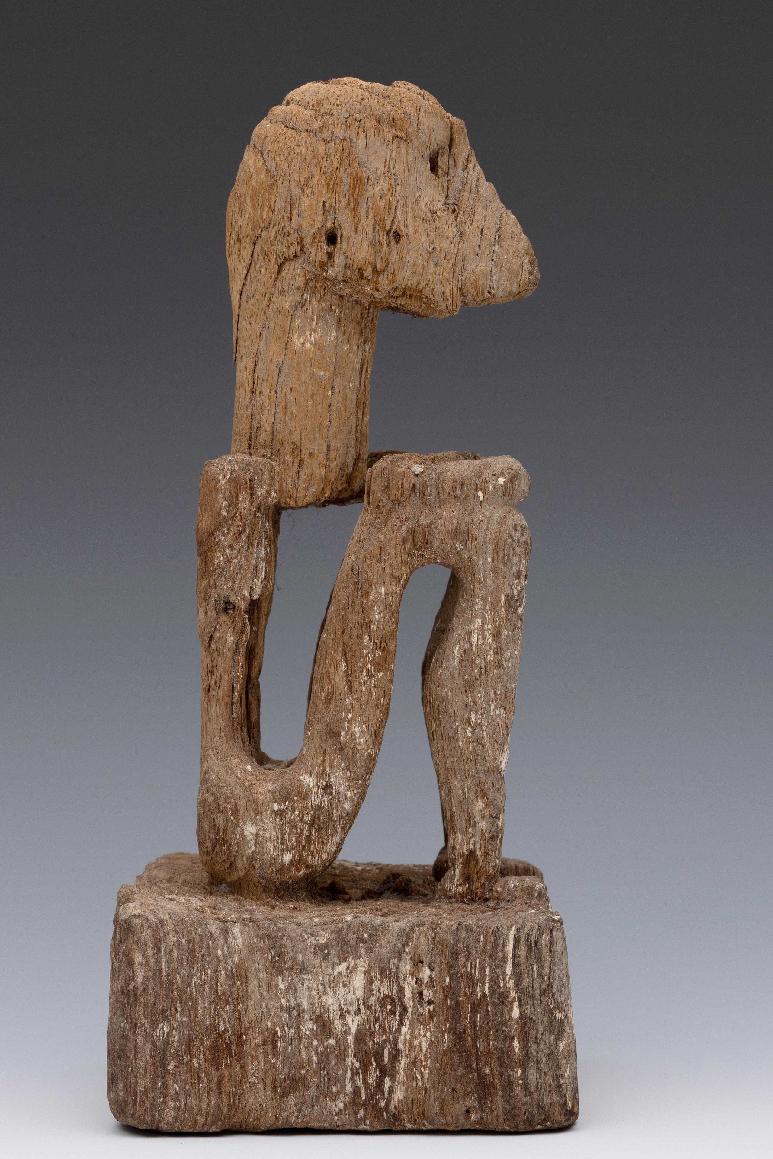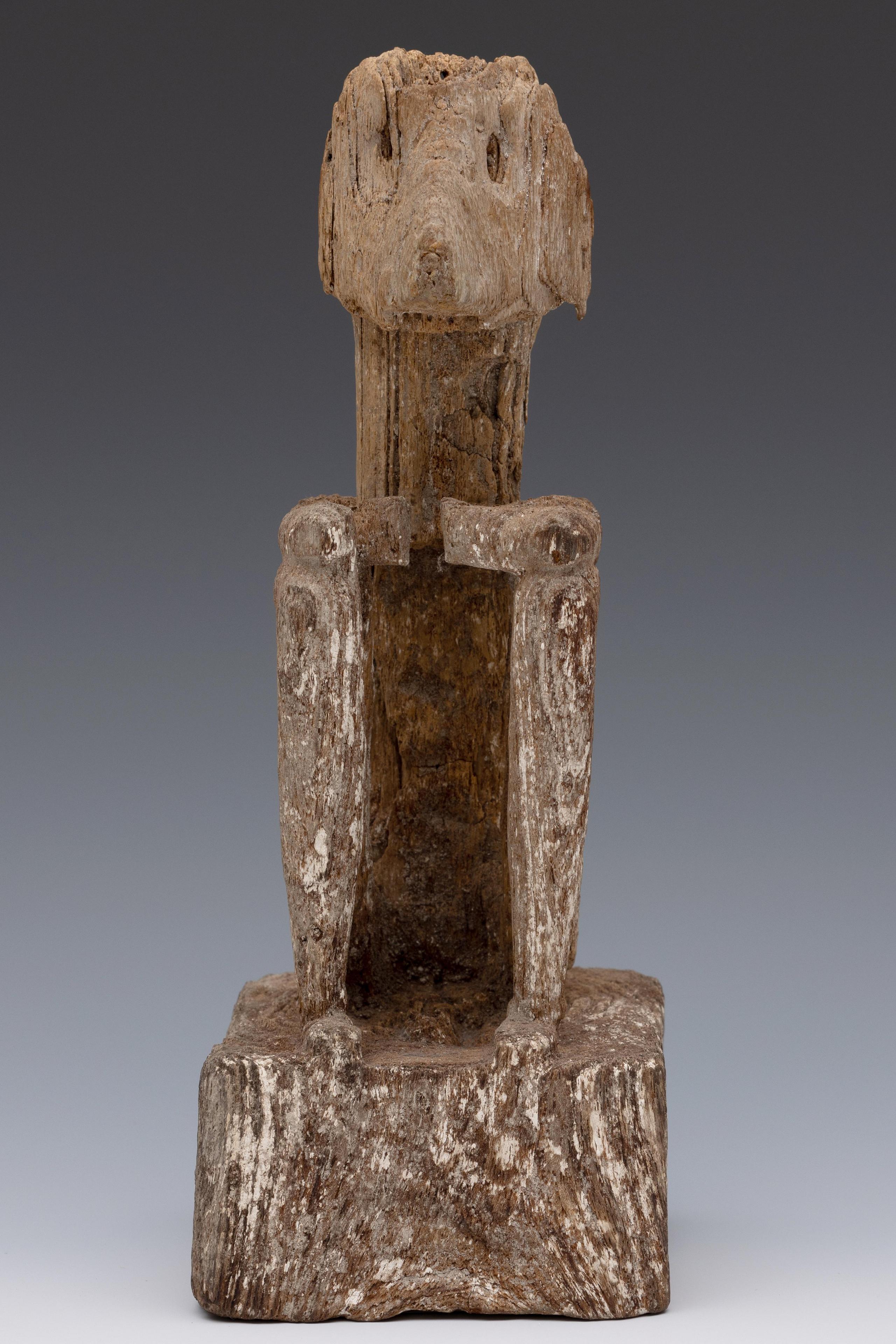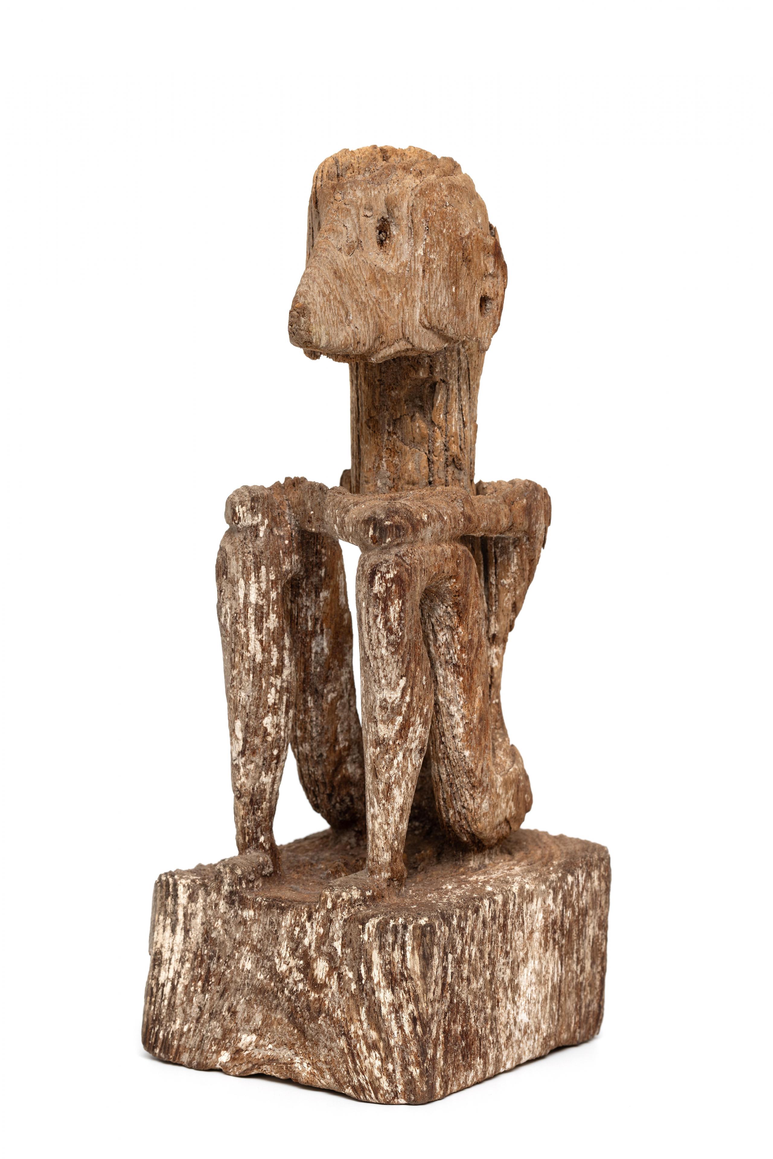 arms crossed resting on the raised knees, drilled eyes and ears.