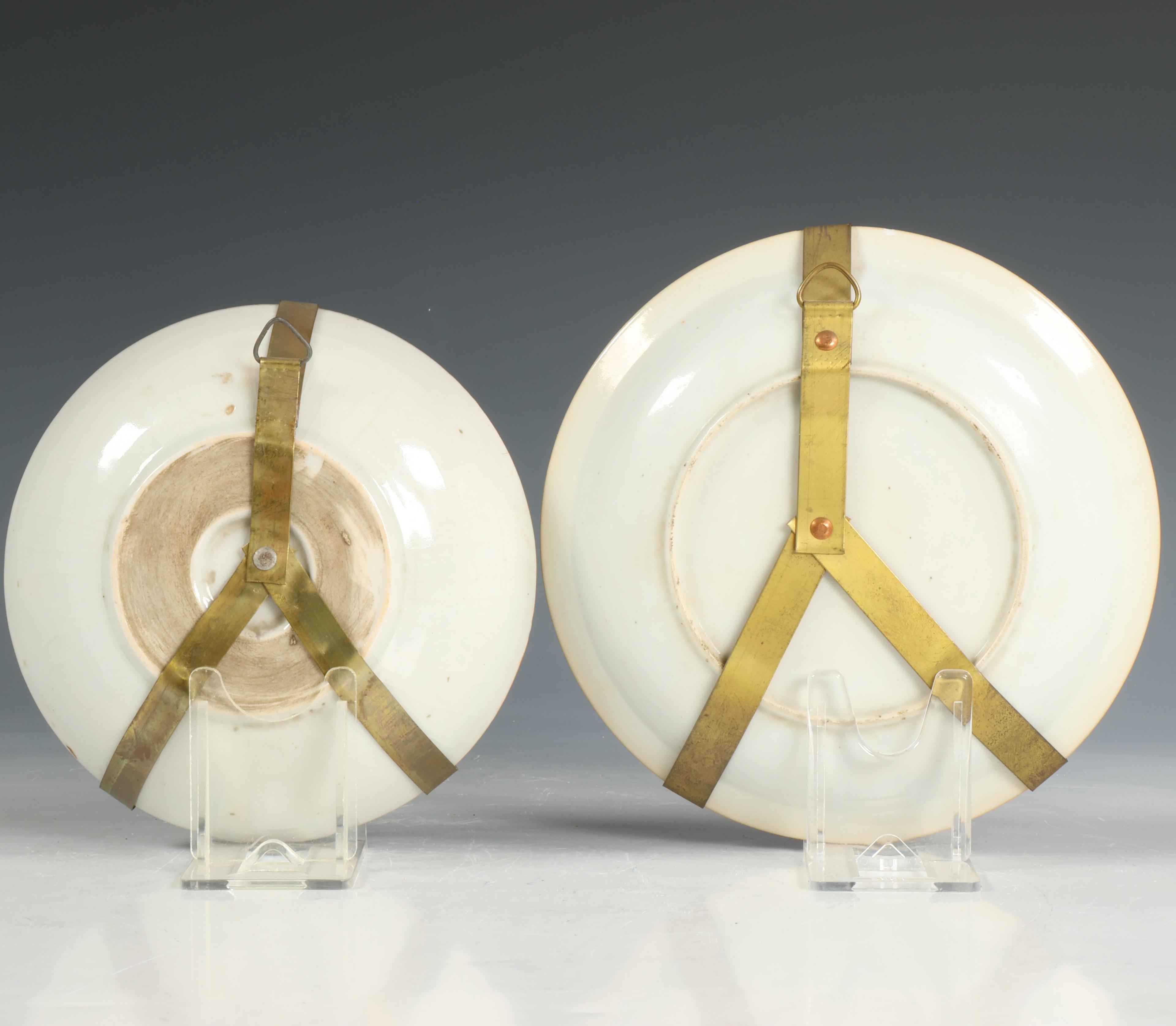 China, a famille rose and a blue and white saucer, ca. 1800,