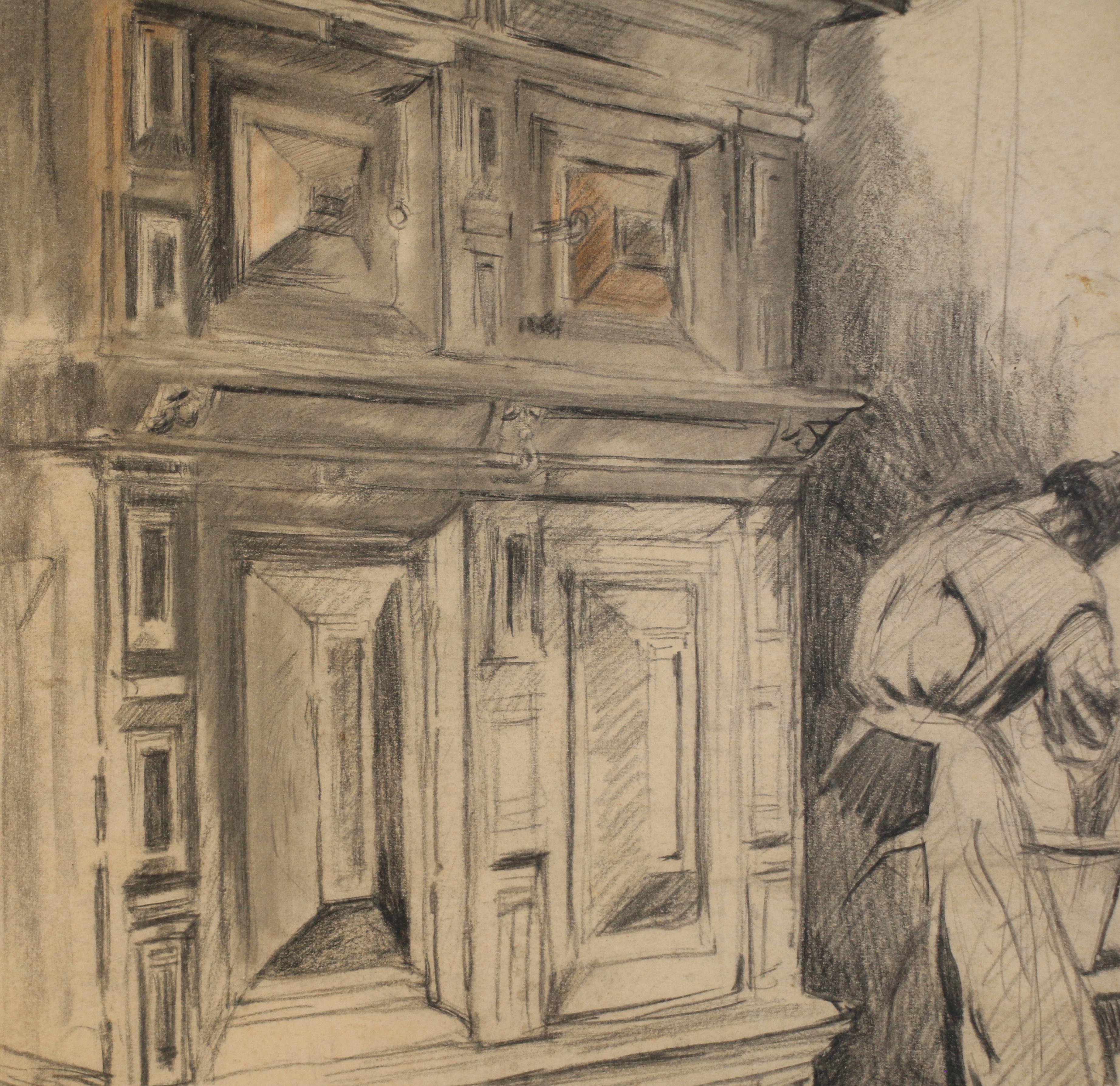 houtskool en pastel, gesign. r.o., 46 x 31 cm.