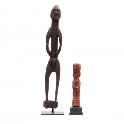 Papua, Asmat, a wooden ancestor figure and Dayak, a carved wooden hilt;