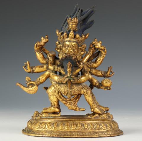 Tibeto-Chinese, a gilt-bronze figure of Mahakala and his consort, ca. 19th century,