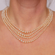 Pearl necklace and chute, consisting of four strands of cultured pearls (diam. 3 - 6 mm), on a silver bow-shaped clasp, set with paste (with hallmark for Sweden). Some pearls added loose. In a box from John van der Vet jeweler.