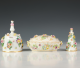 Meissen, porseleinen tafelbel, kaarsendover en dekseldoos, (1818-1860);