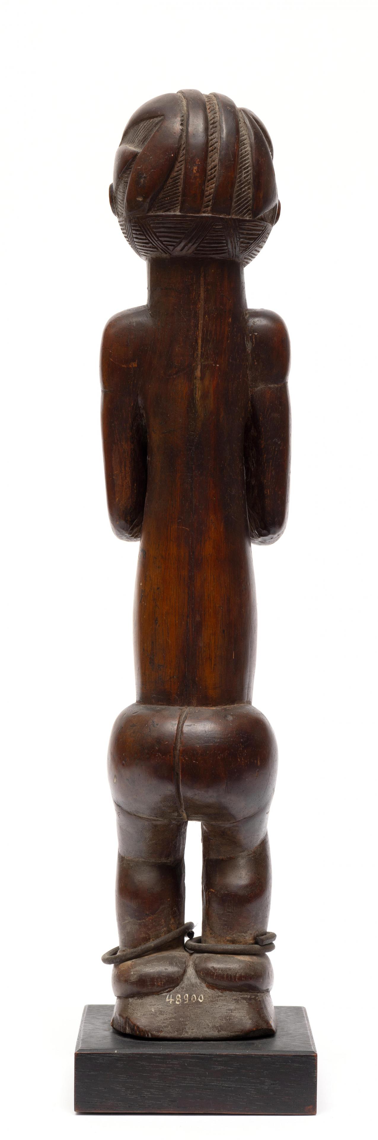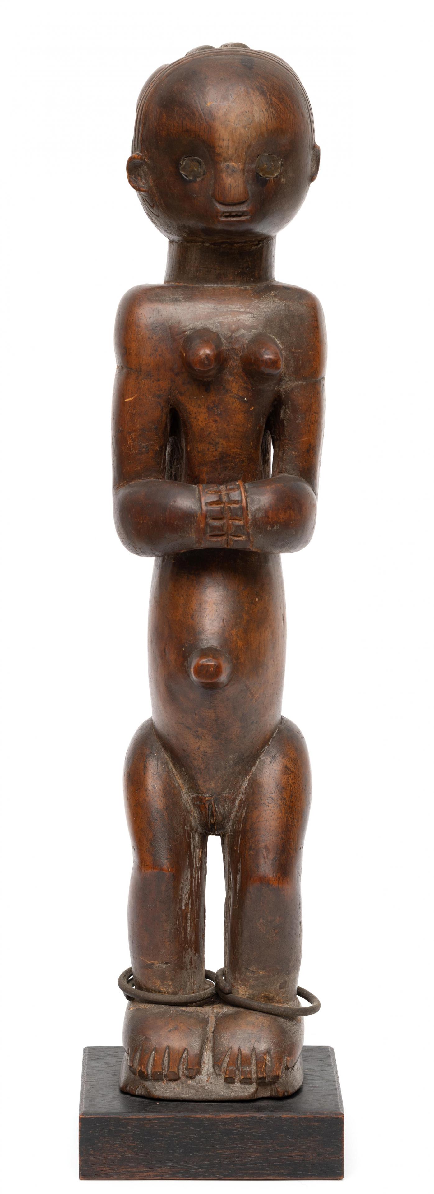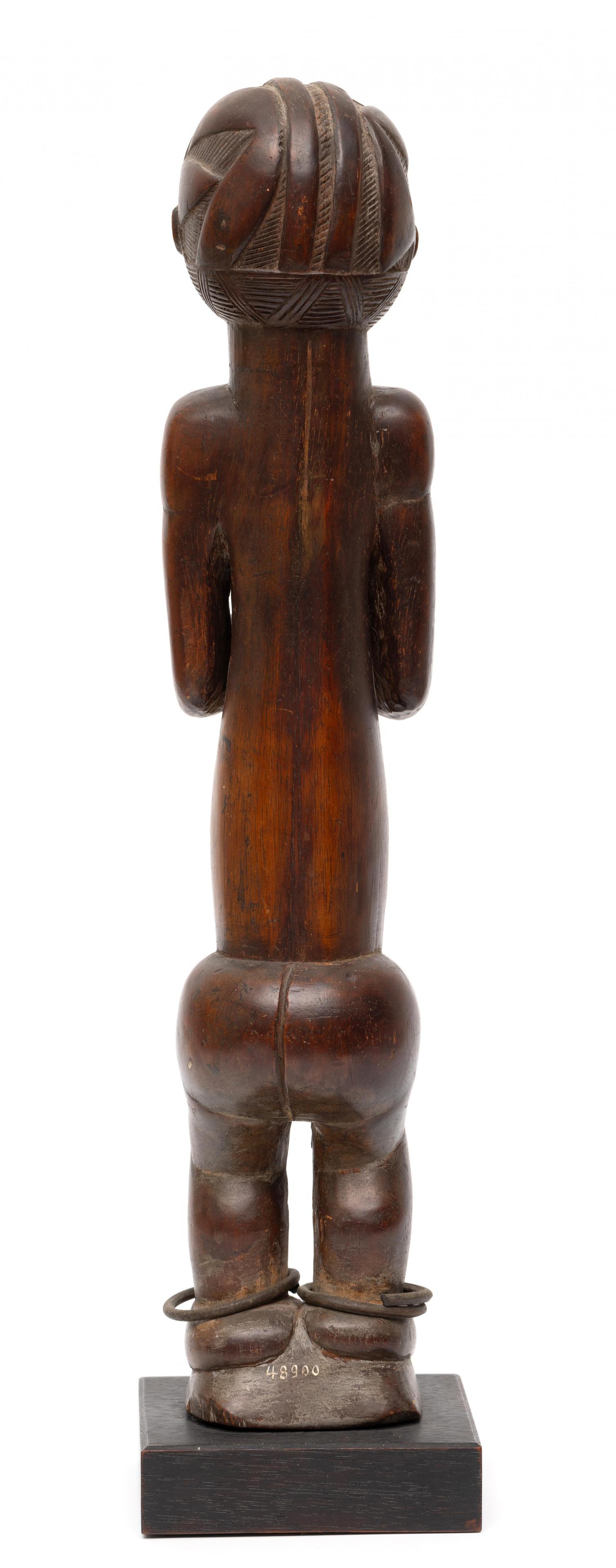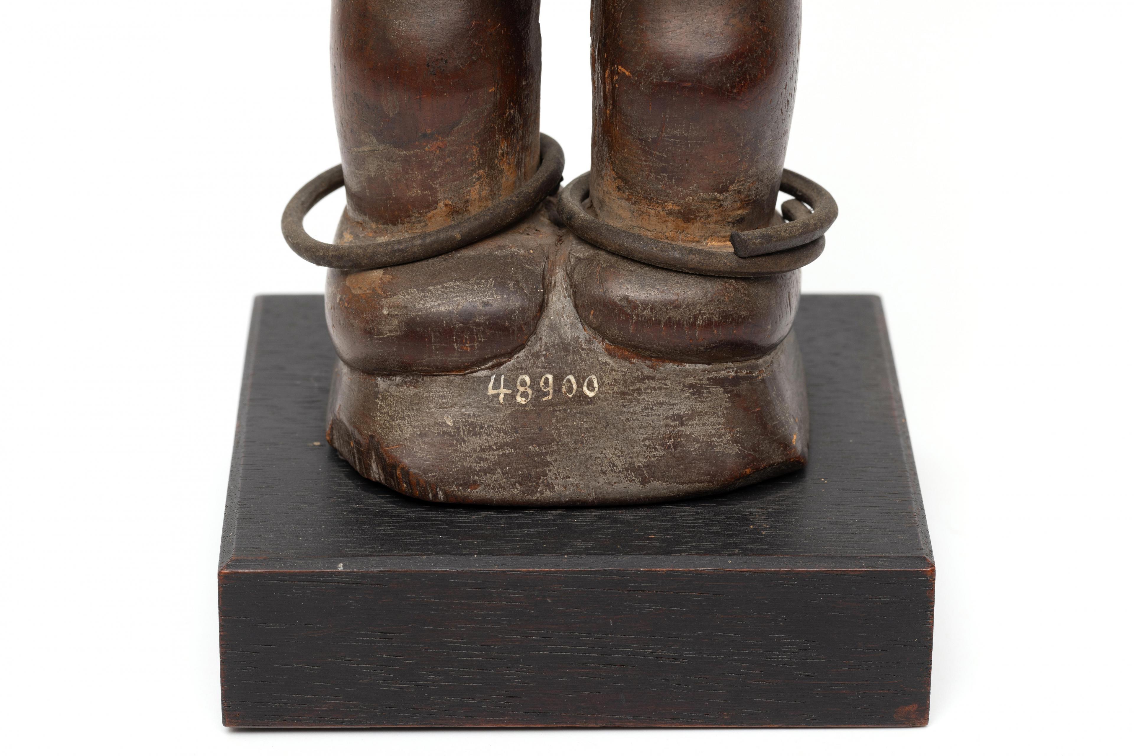 glass inlaid eyes, copper anklets, inv. nr. 48900 in white ink at the back.