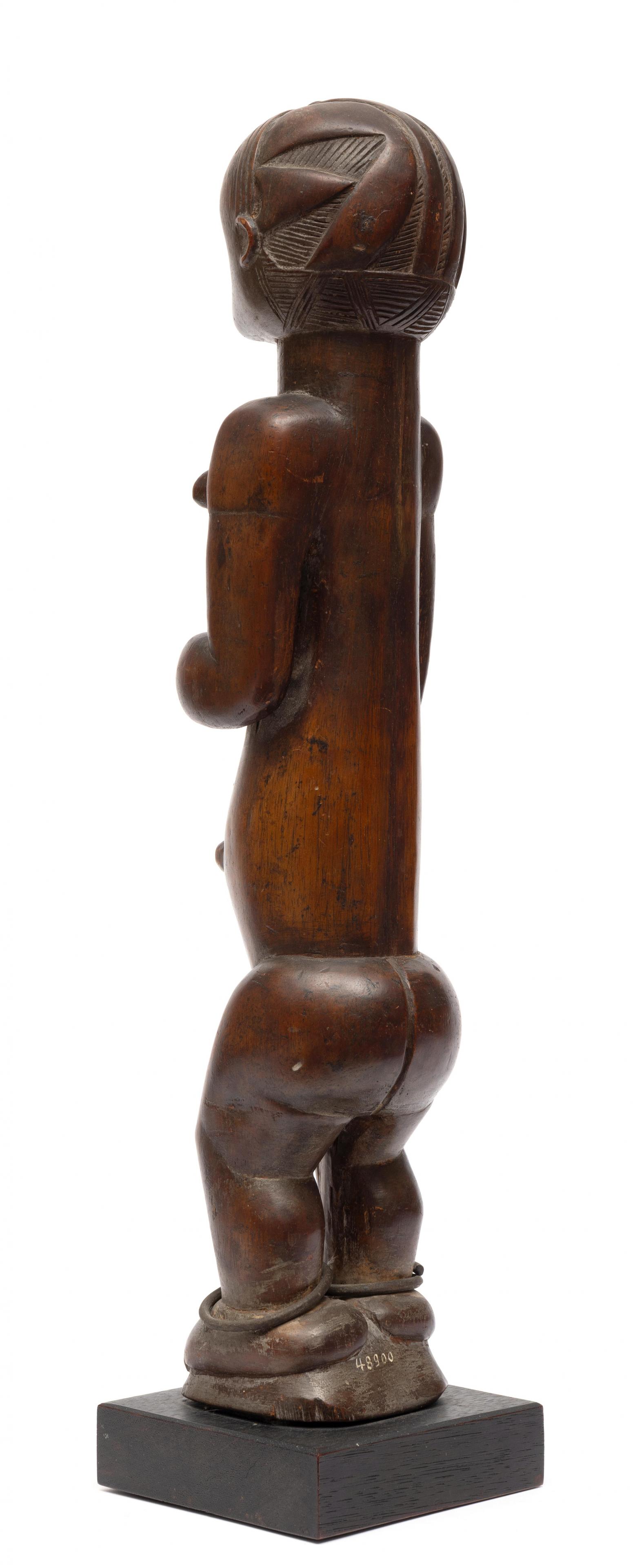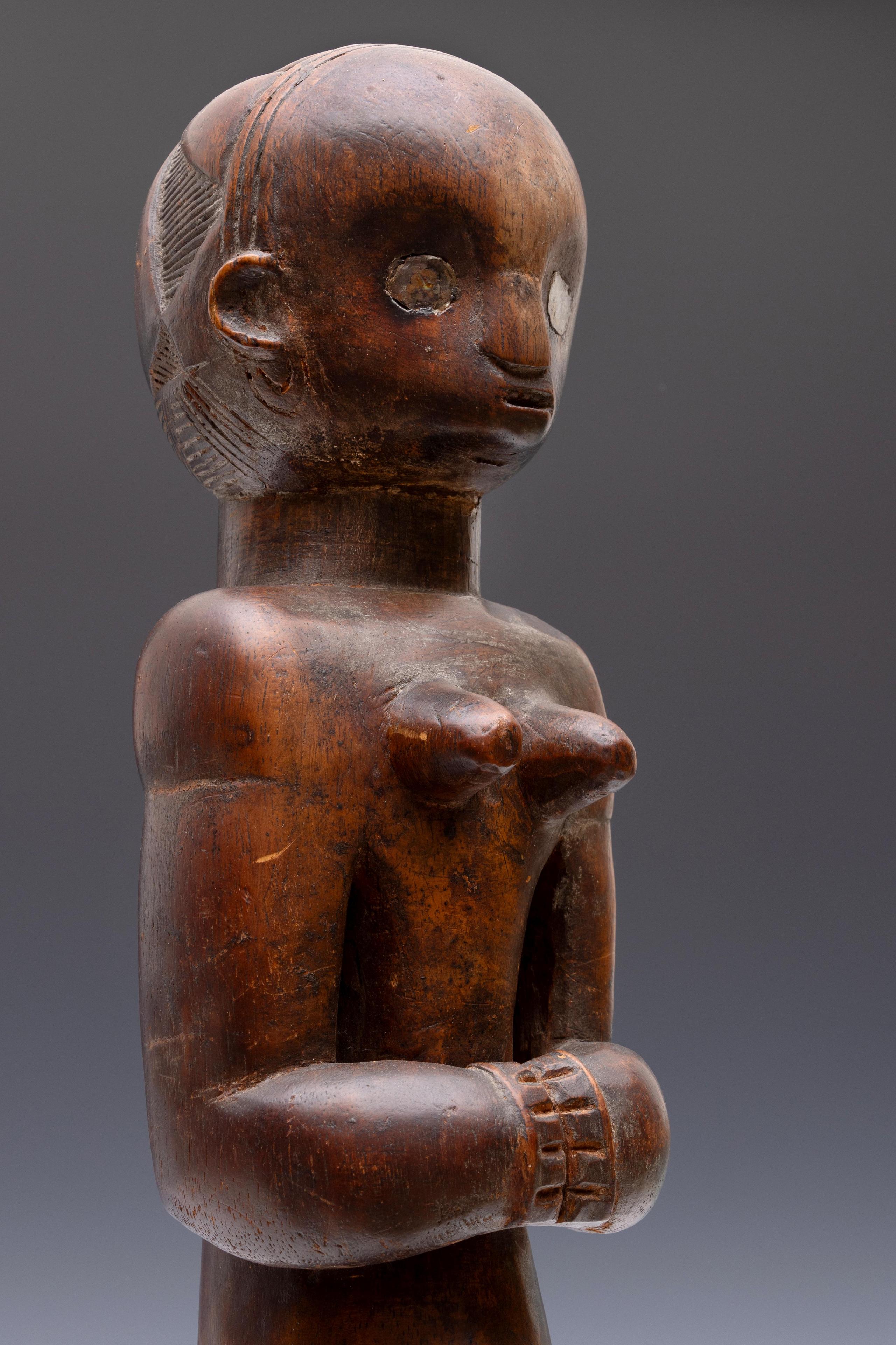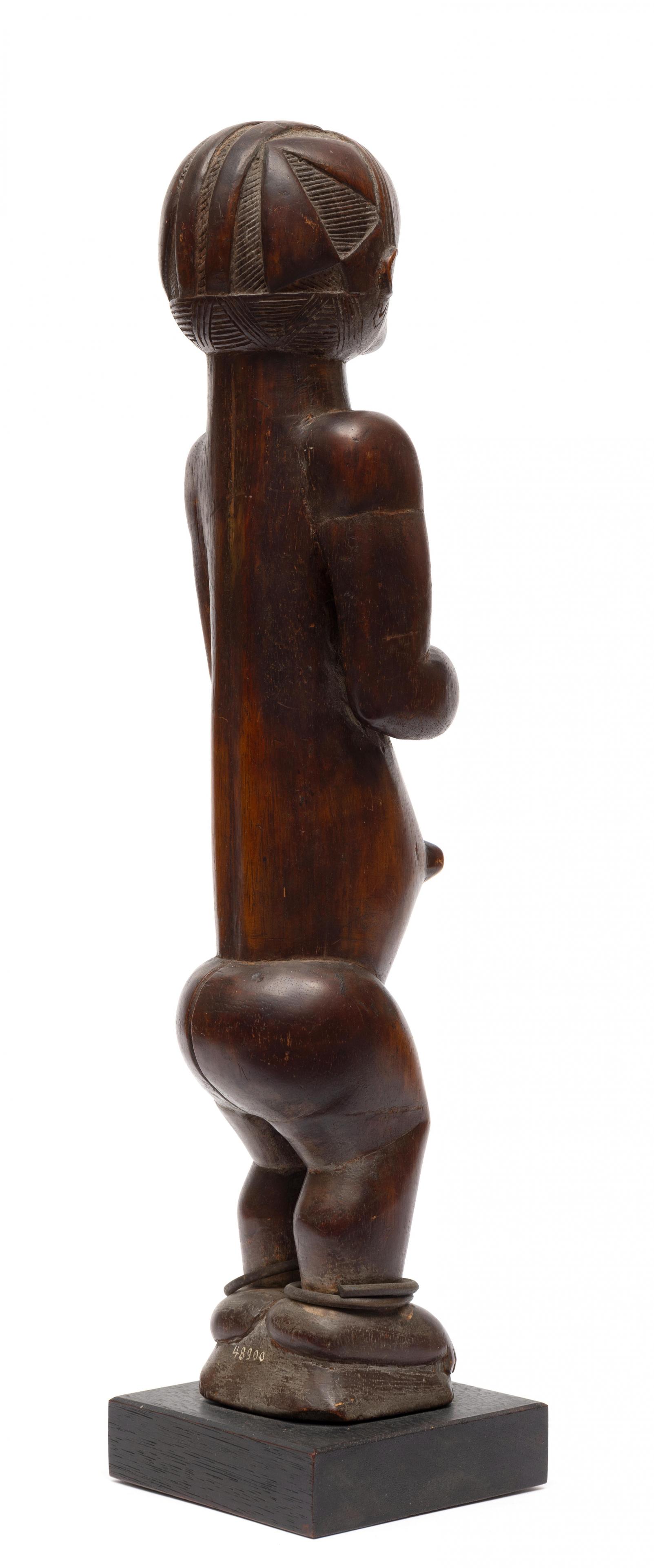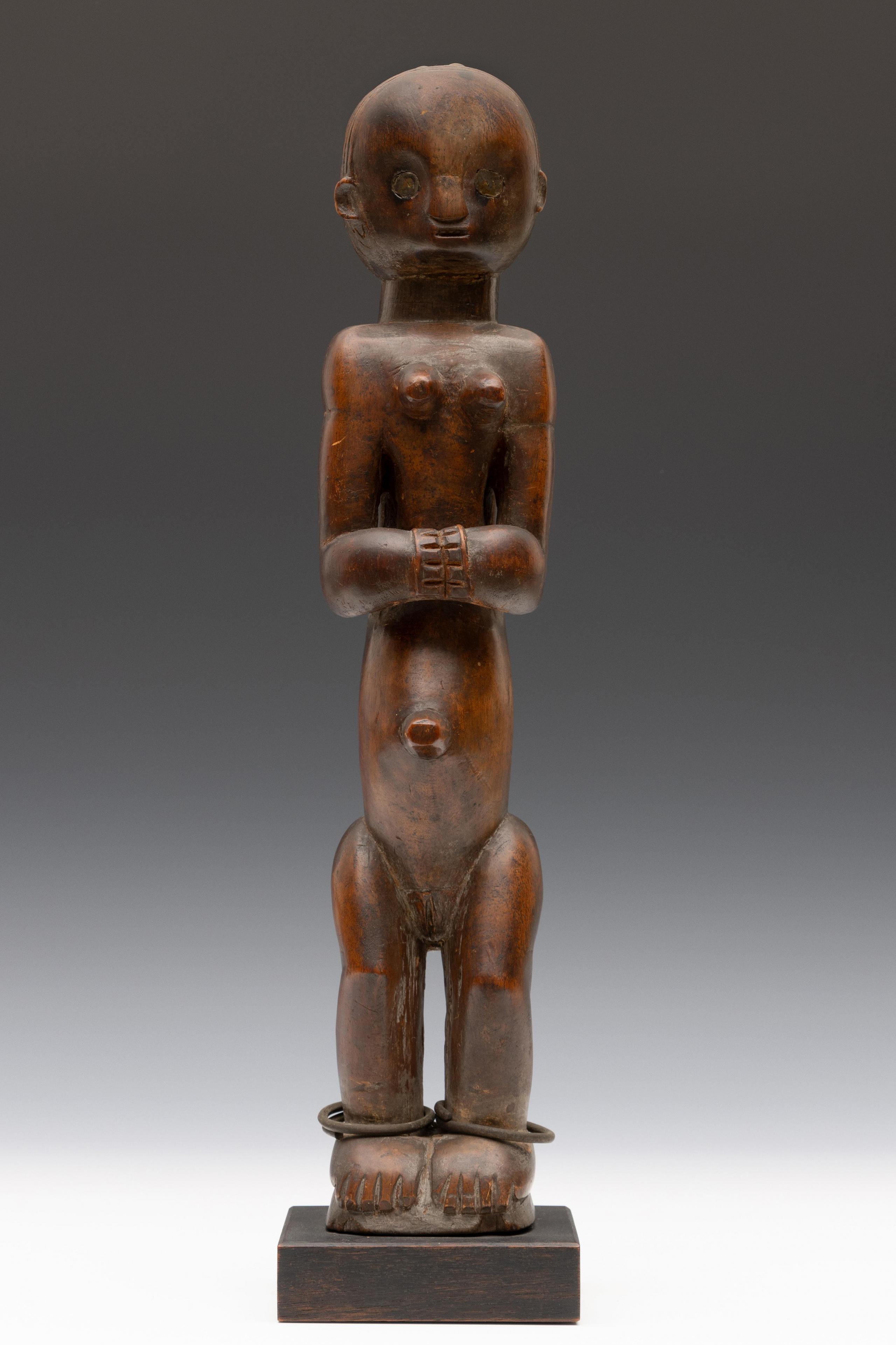 glass inlaid eyes, copper anklets, inv. nr. 48900 in white ink at the back.
