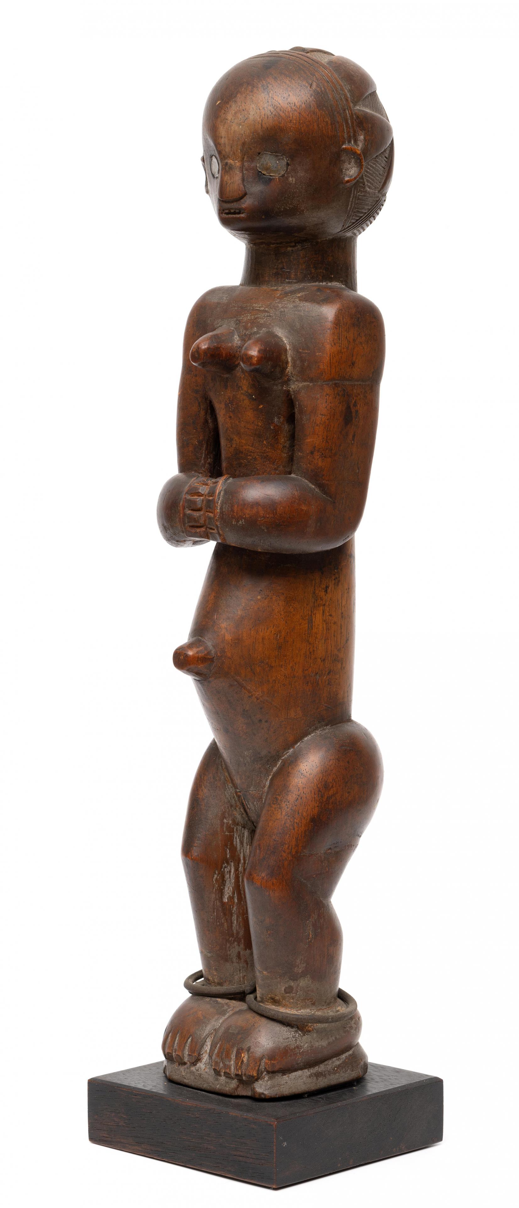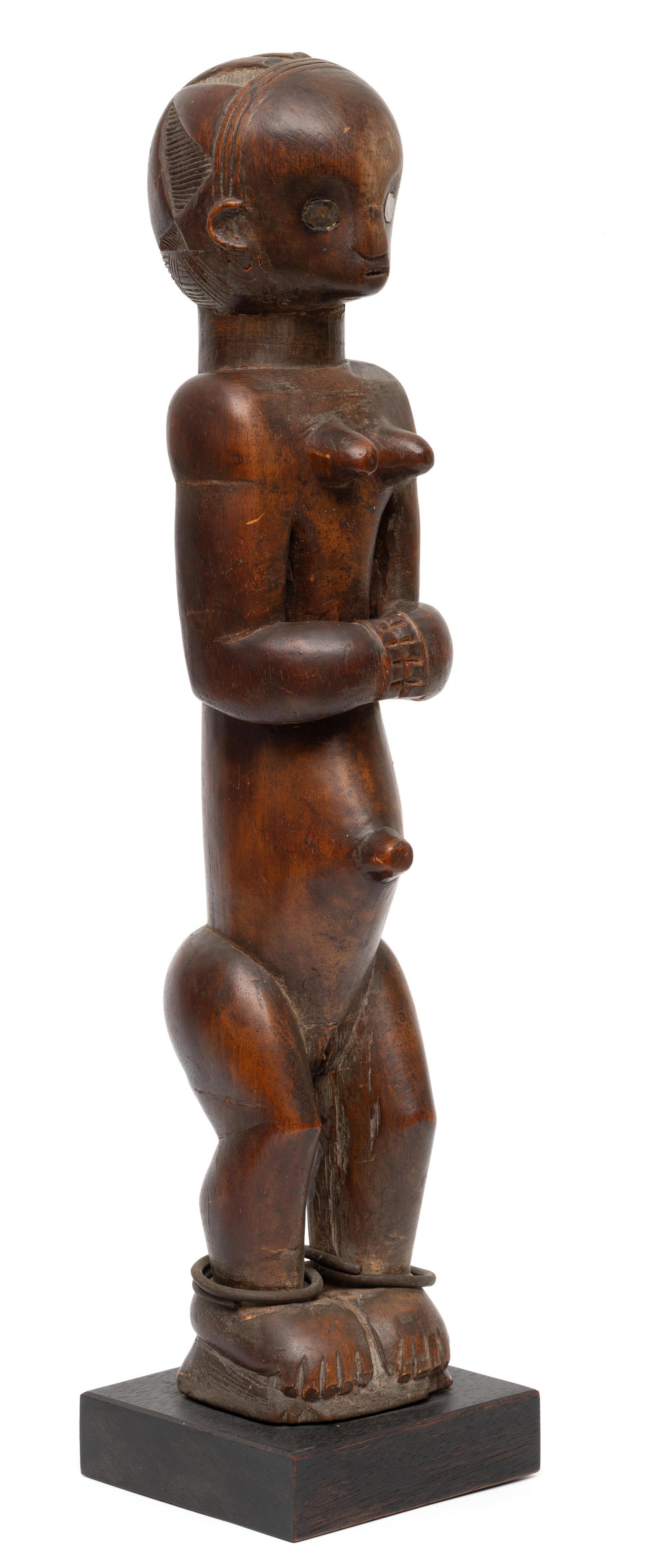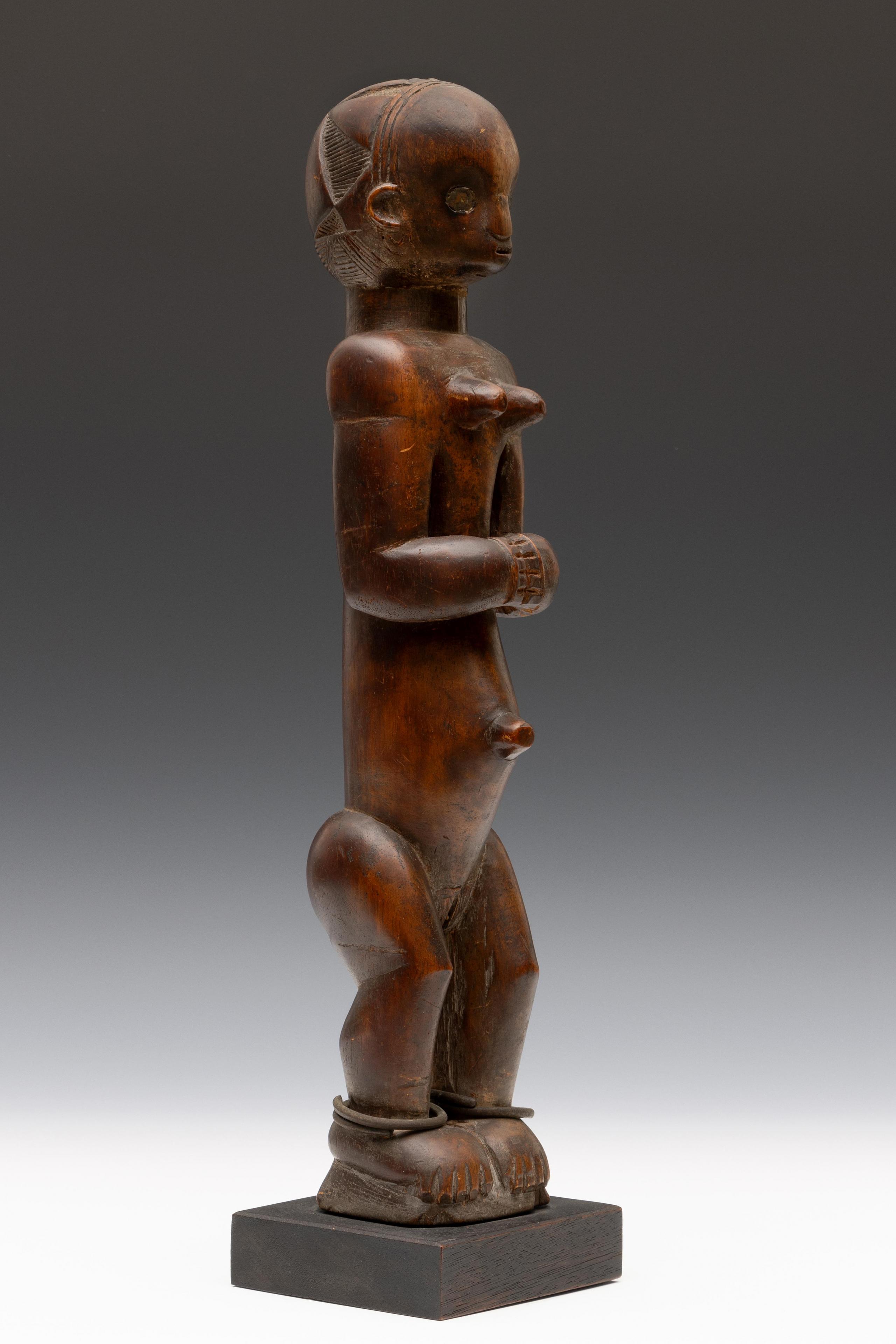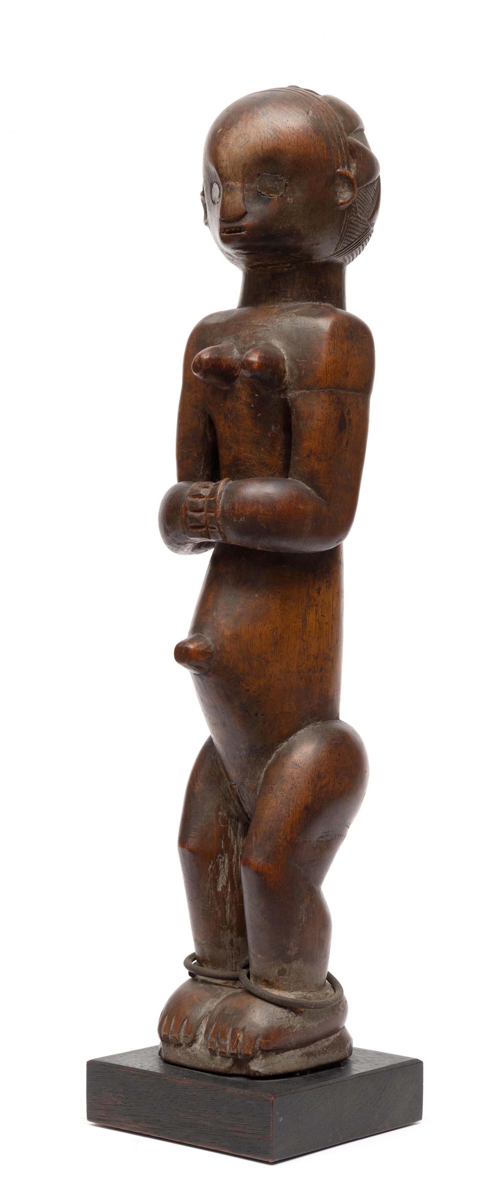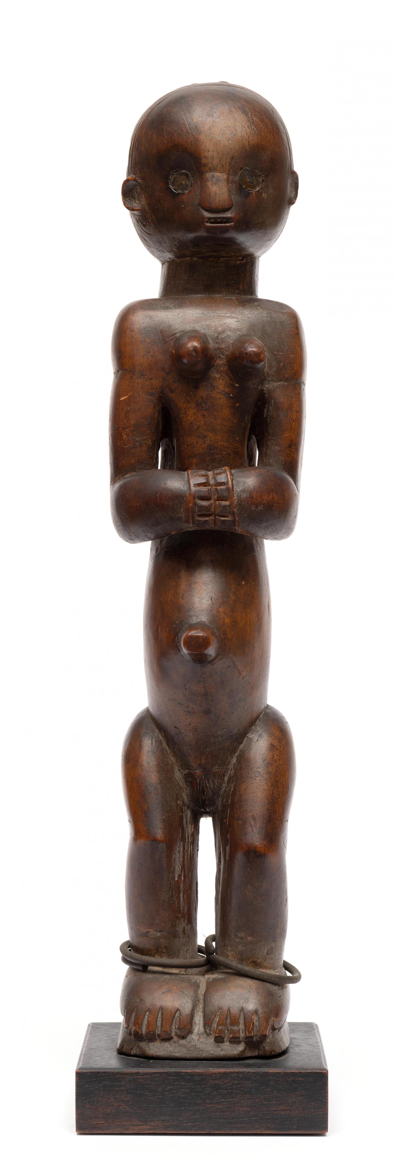 glass inlaid eyes, copper anklets, inv. nr. 48900 in white ink at the back.