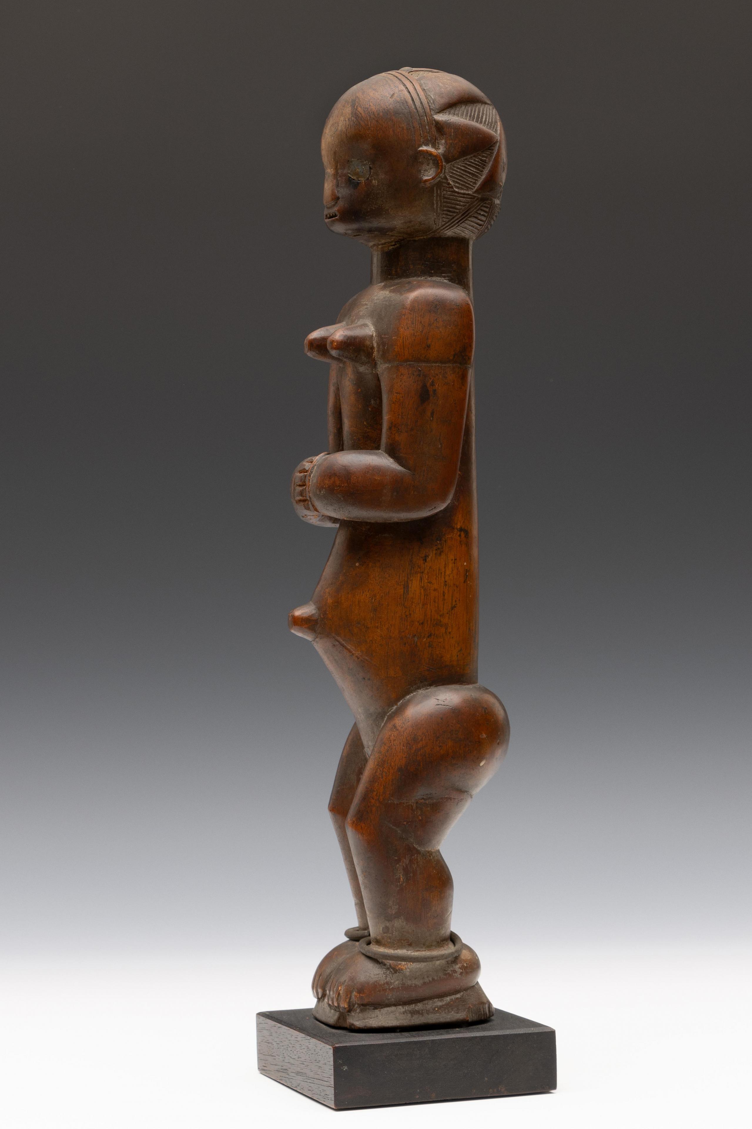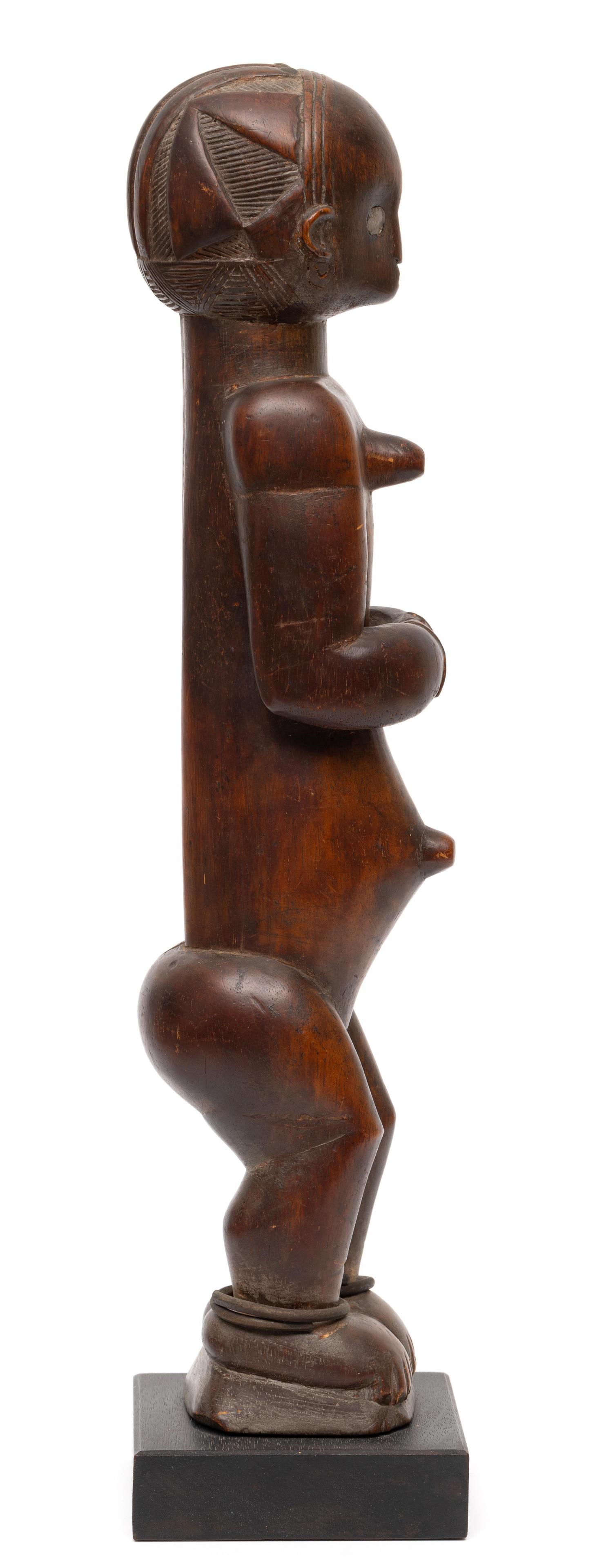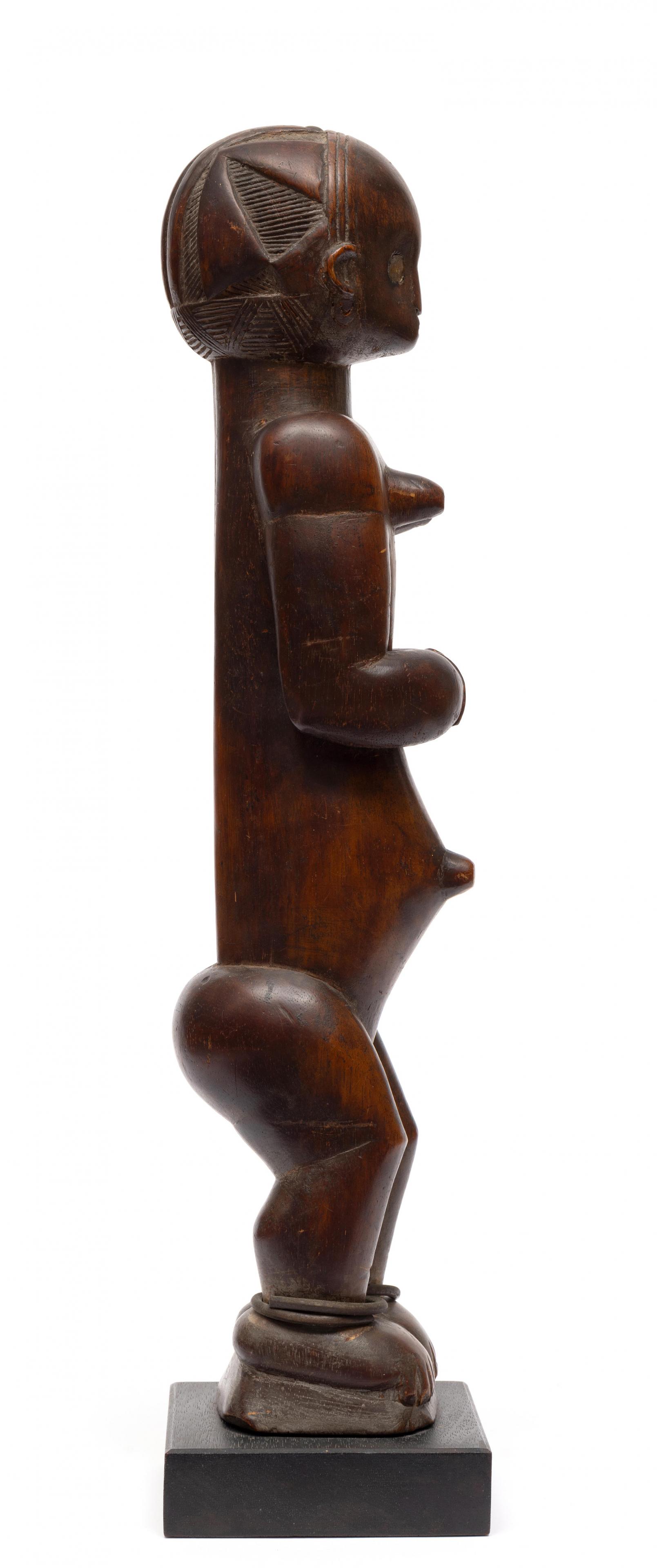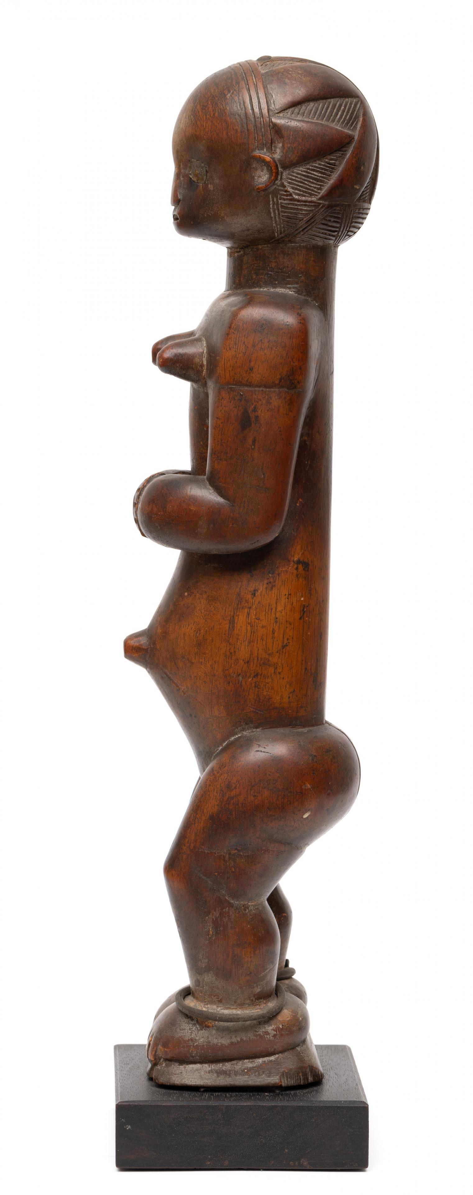 glass inlaid eyes, copper anklets, inv. nr. 48900 in white ink at the back.