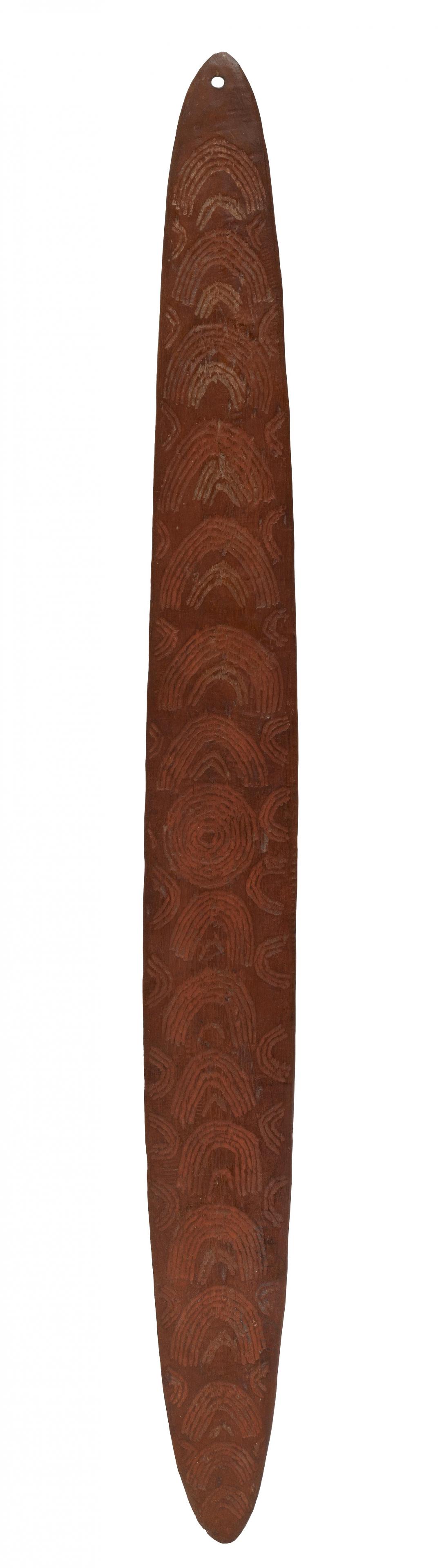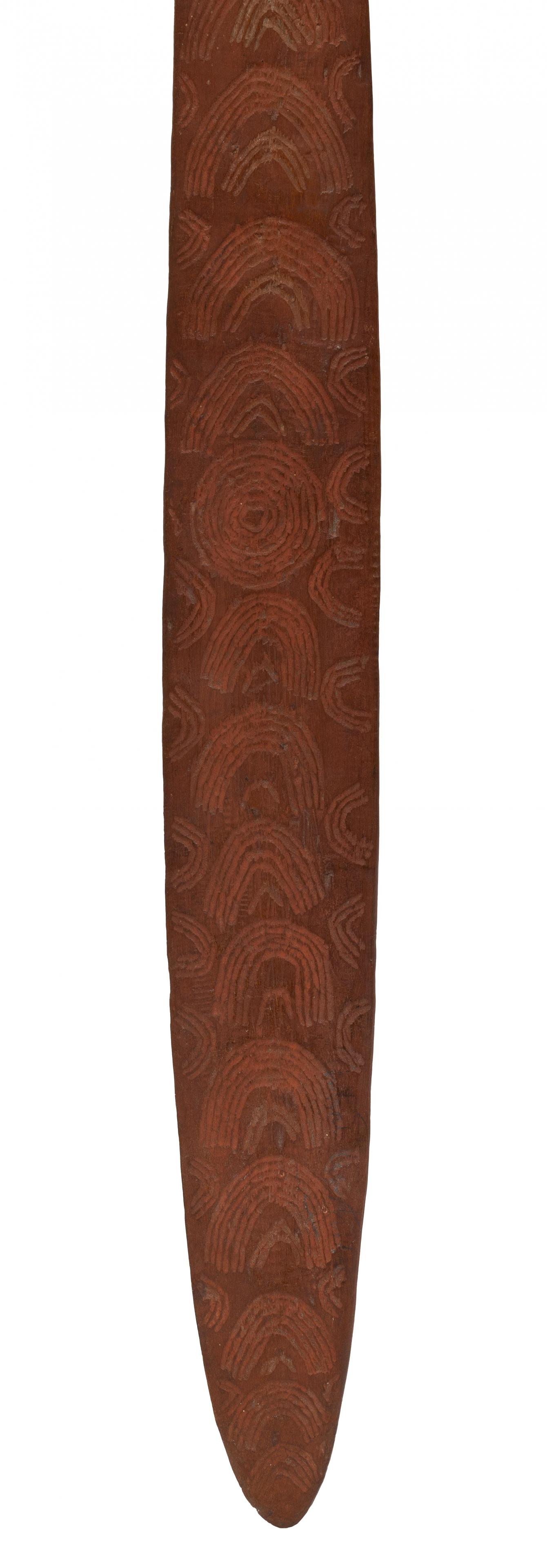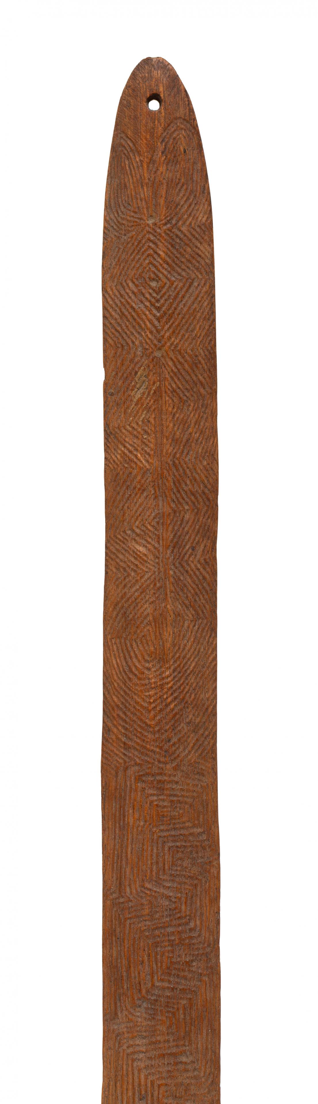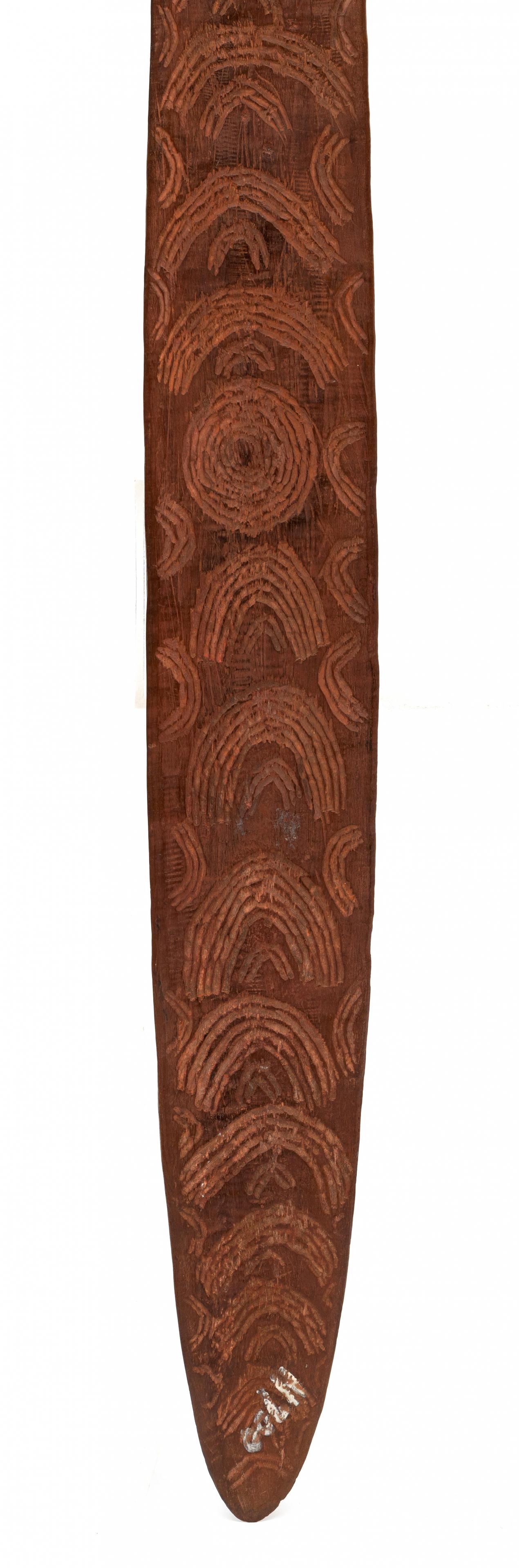 one with reddish patina showing notched design on both sides, the other with a plain reverse.