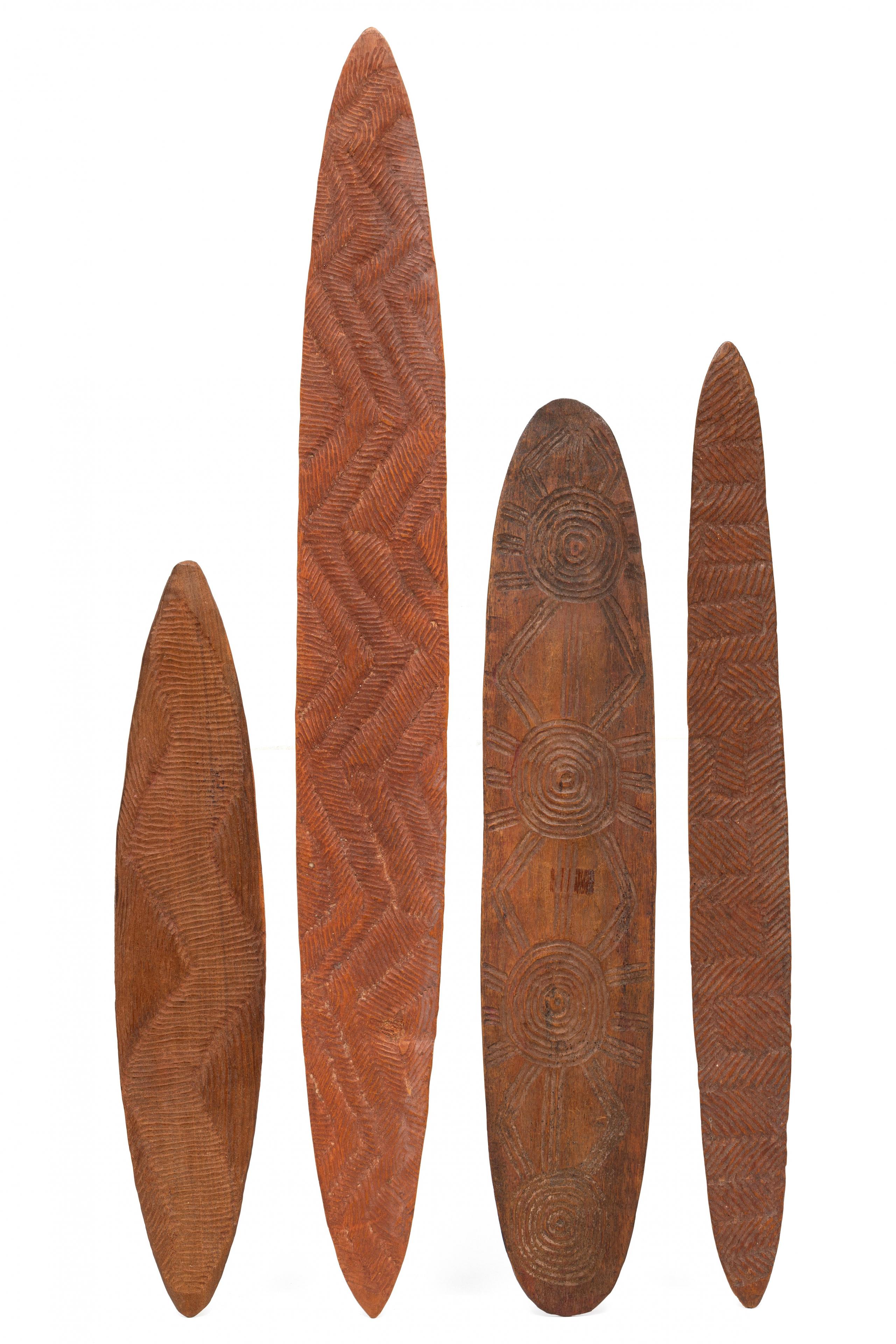 three showing a grooved pattern on one side, one with four concentric circles on both sides.