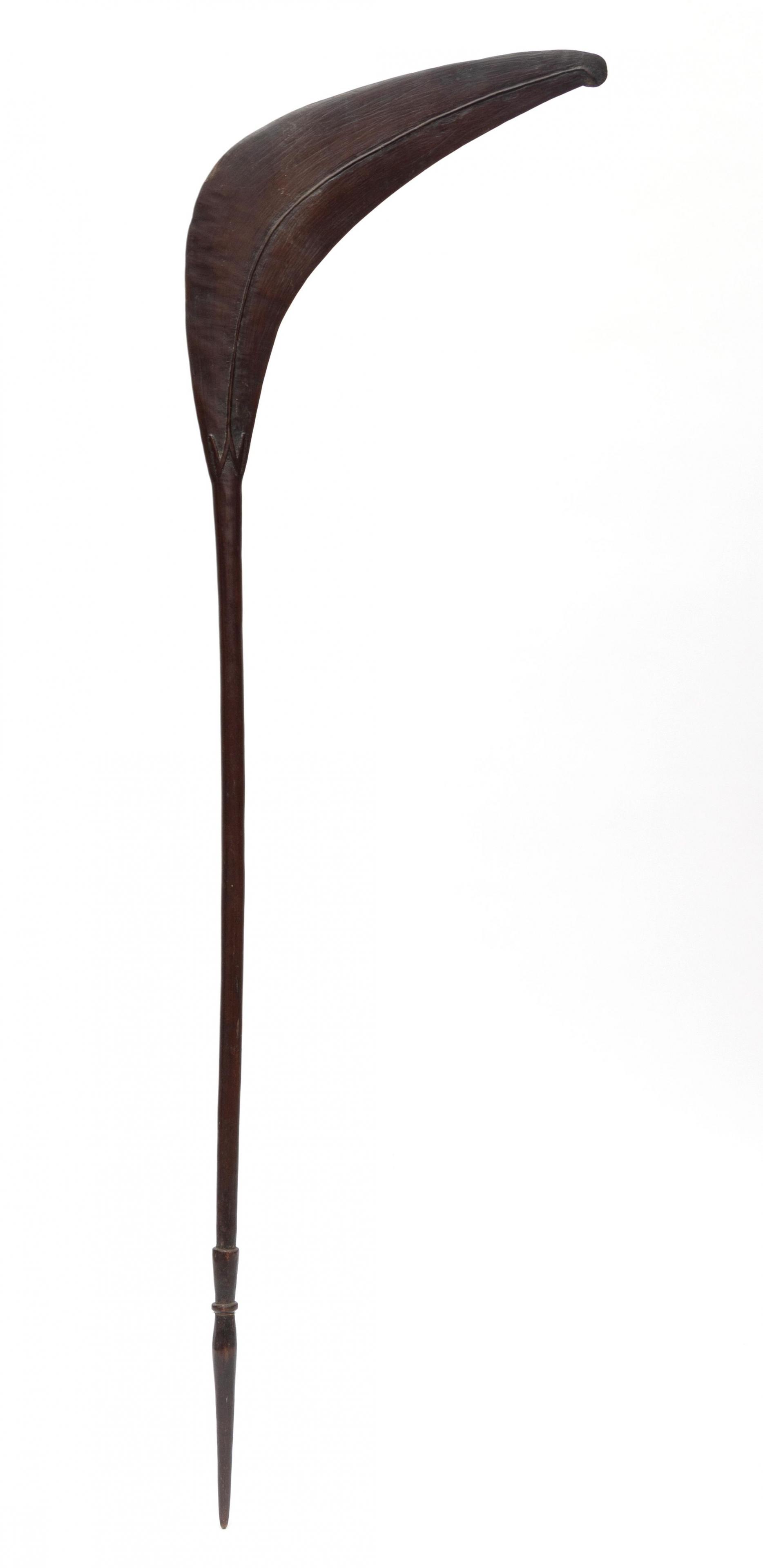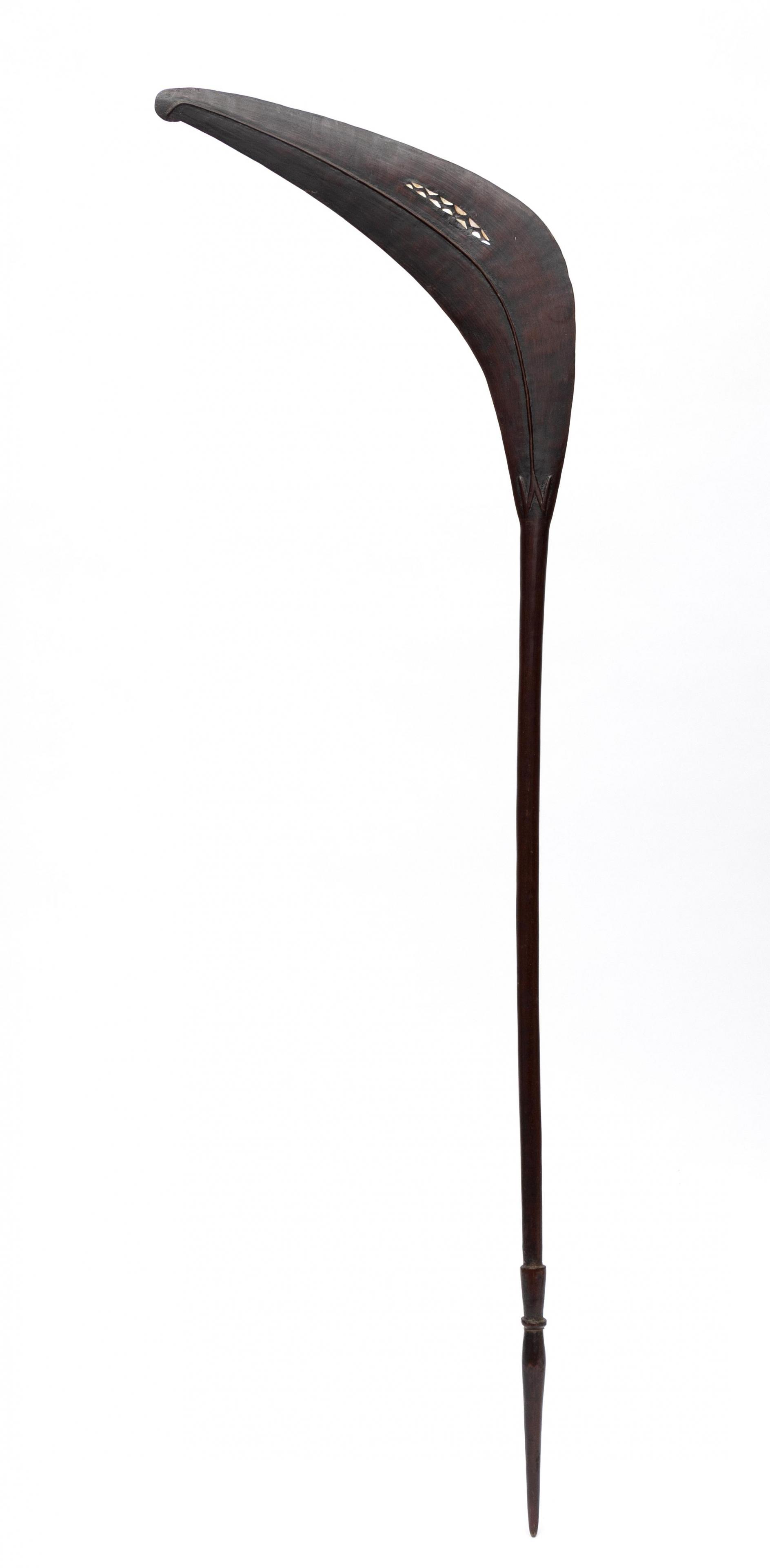 the blade to one side decorated with a small inlaid mother-of-pearl pattern.