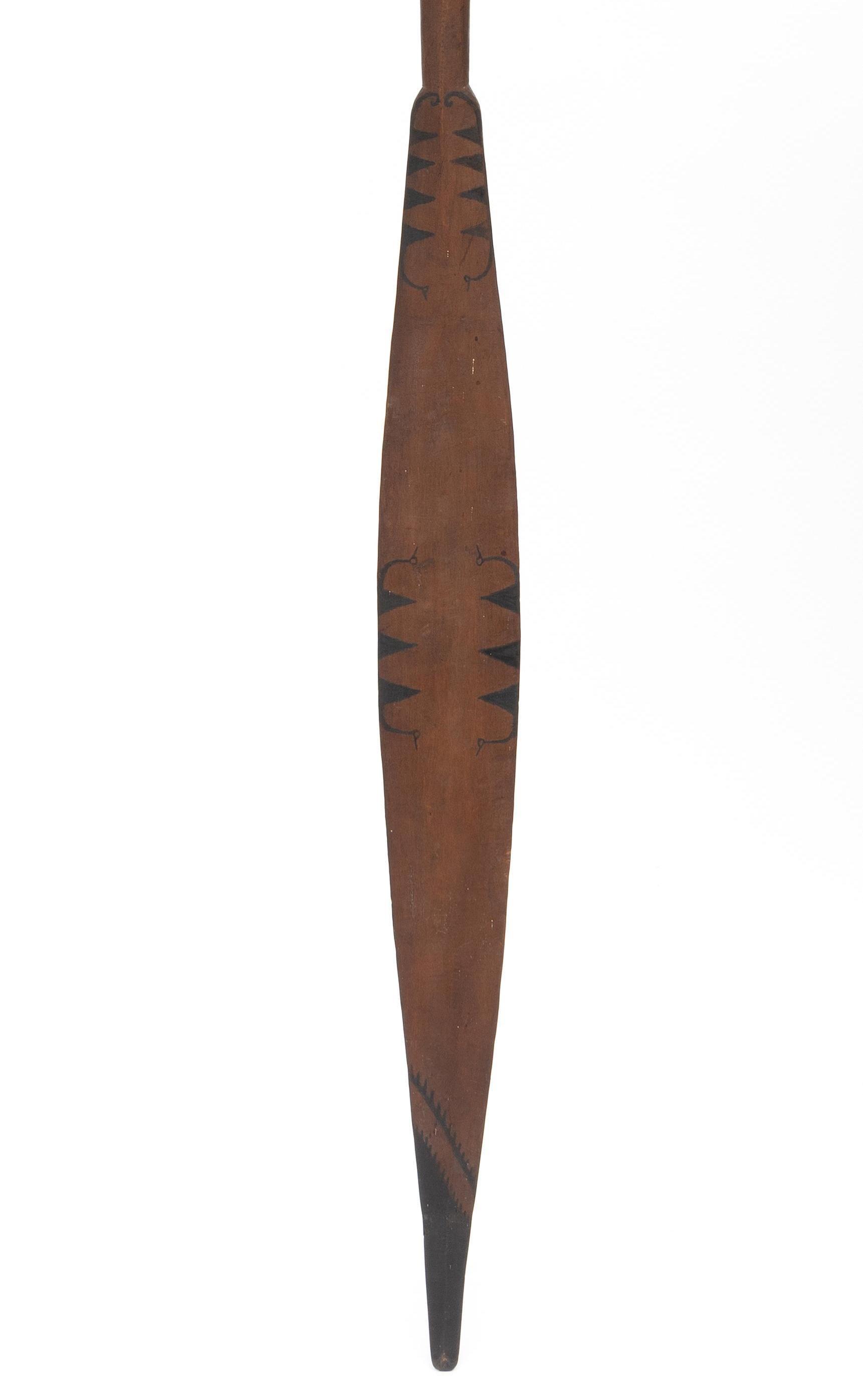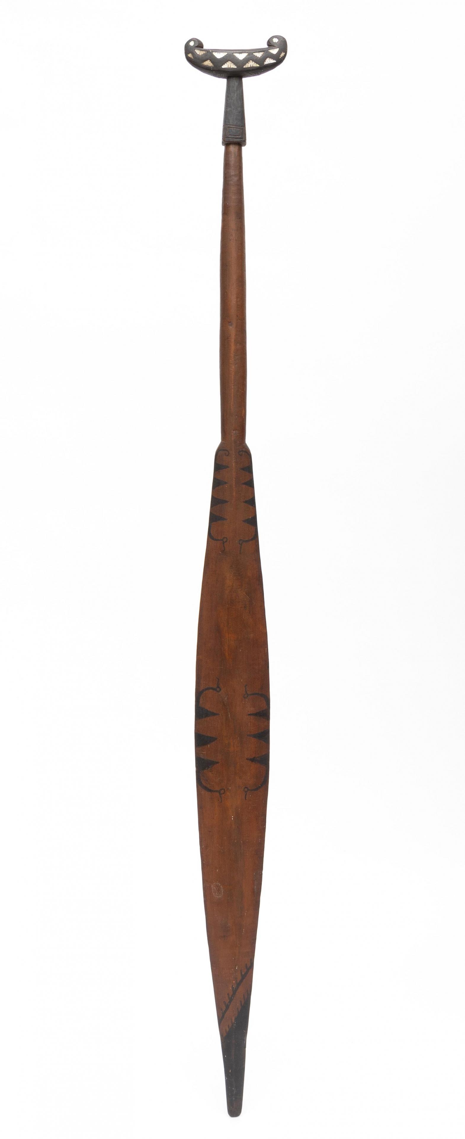 blade with black decoration, frigatebirds, handle with inlay mother of pearl