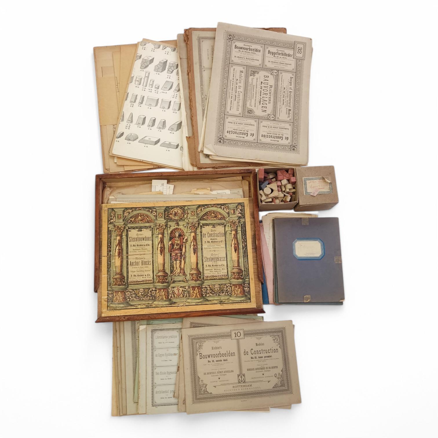 Anker, diverse bouwtekeningen, lege bouwdoos en toebehoren