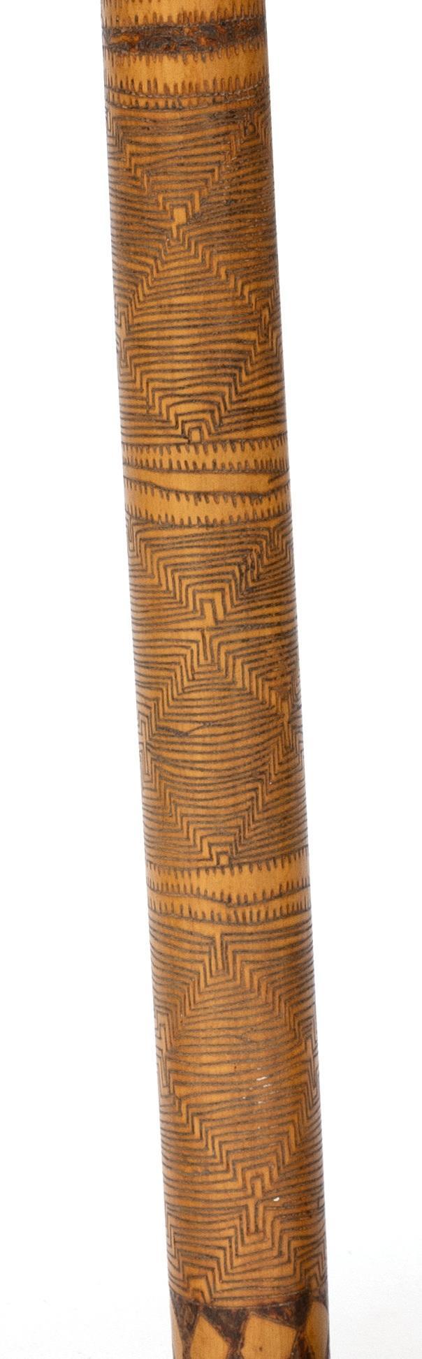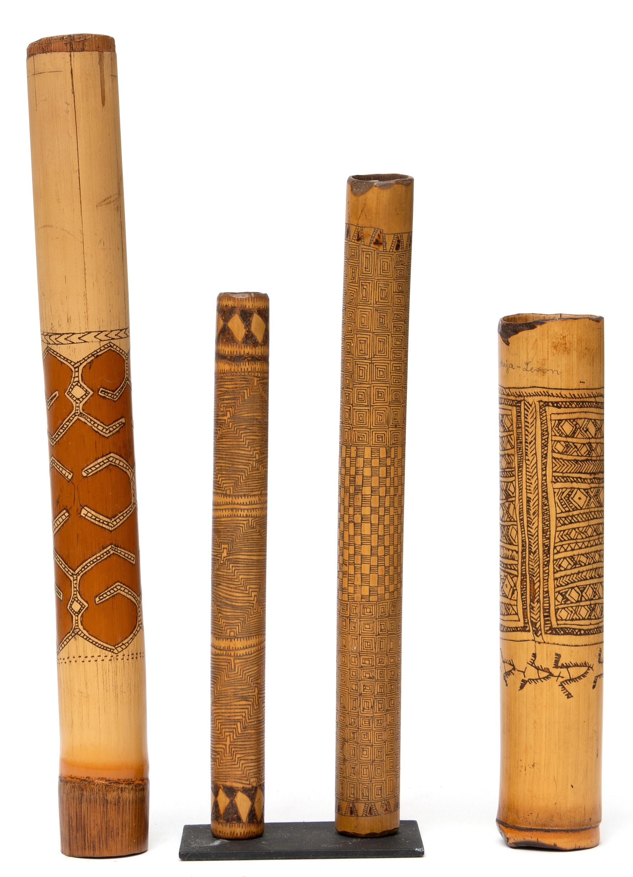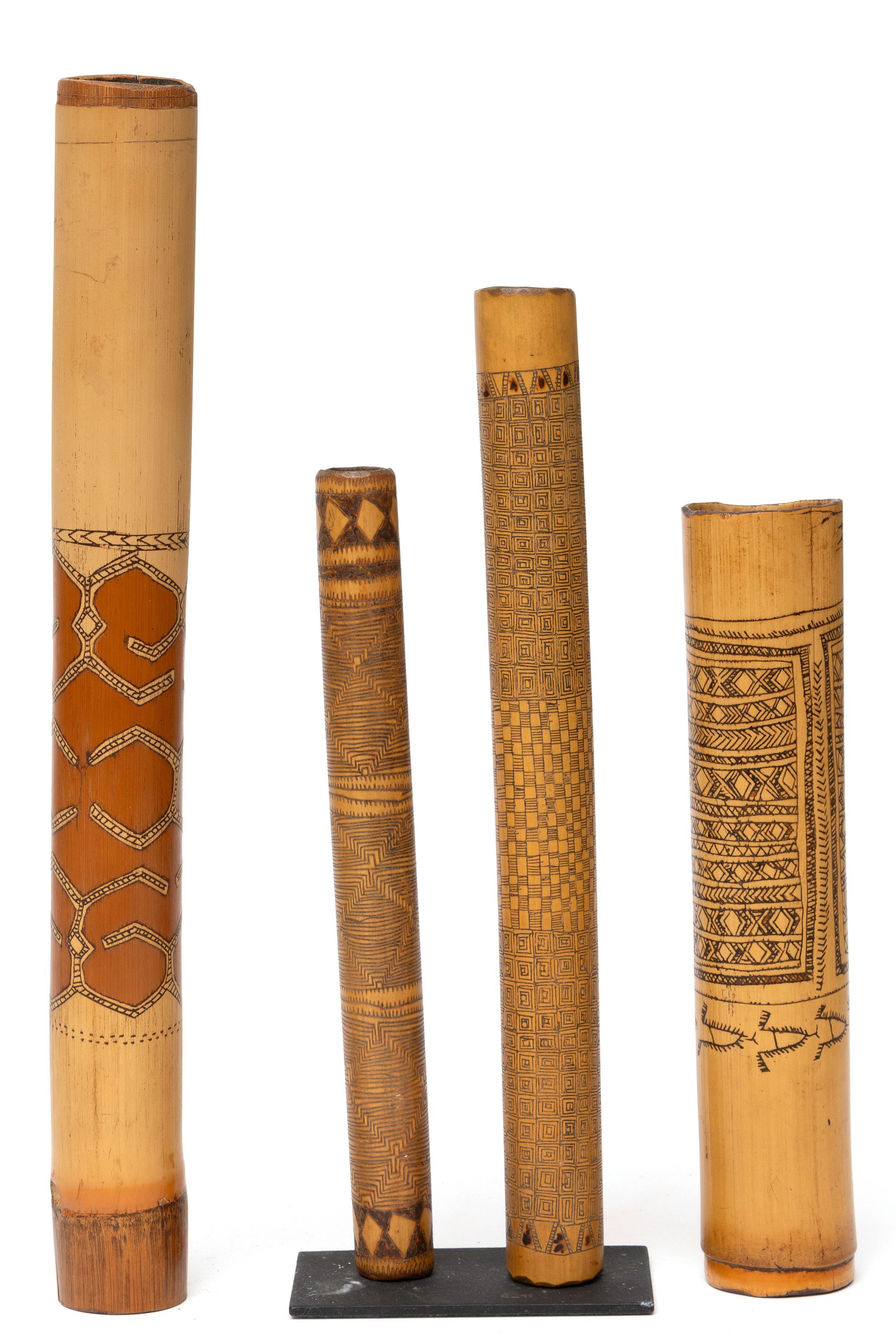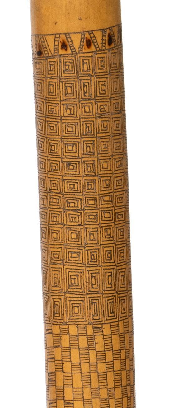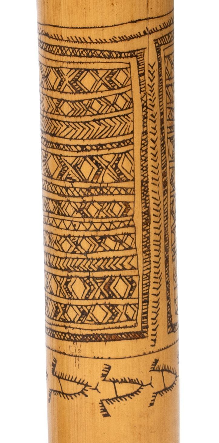 decorated with an incised pattern; herewith an Mappi area bamboo pipe the interior showing a museum inv. nr. E.T.62-17-91