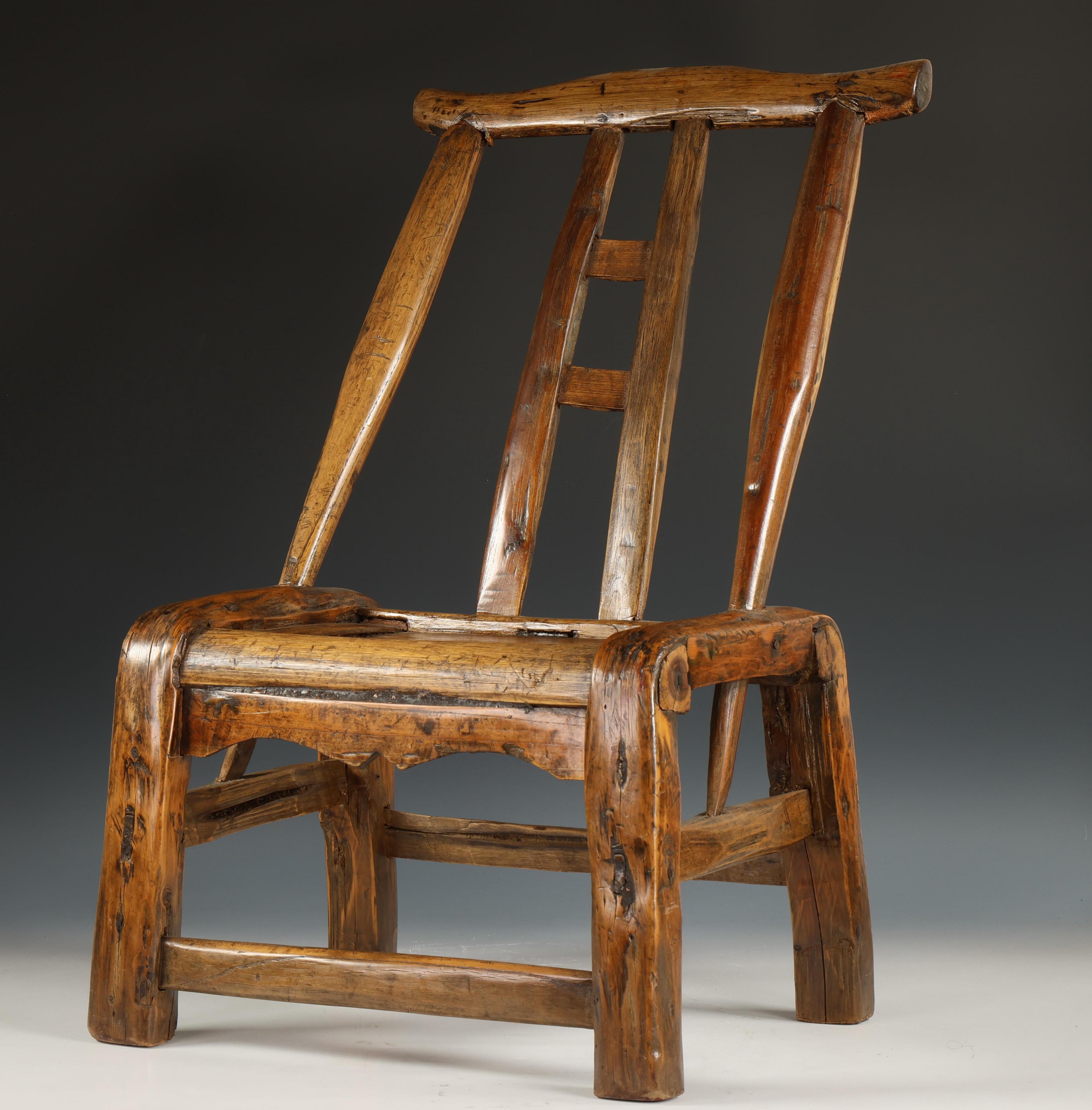China, red lacquered elmwood flower basket and elwood low chair, 20th century