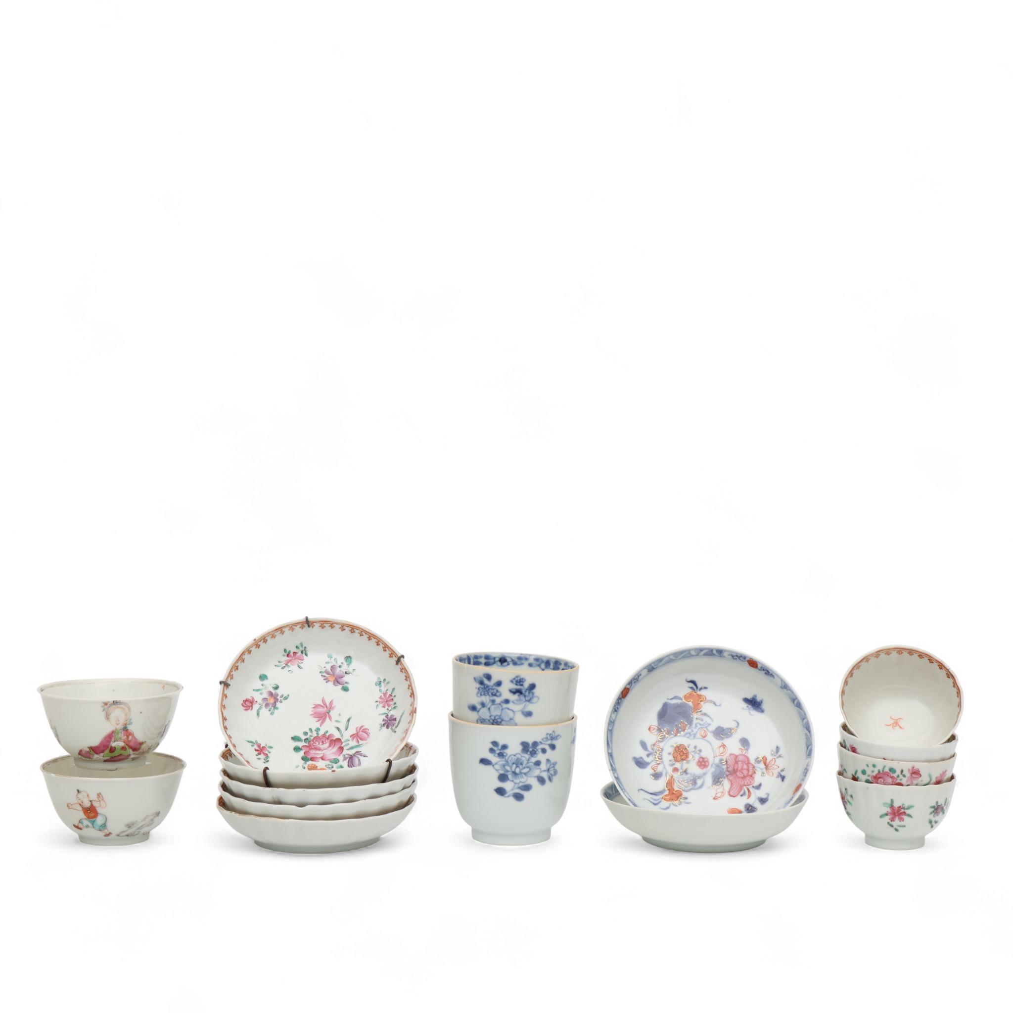 China, a collection of porcelain cups and saucers, 18th-19th century,
