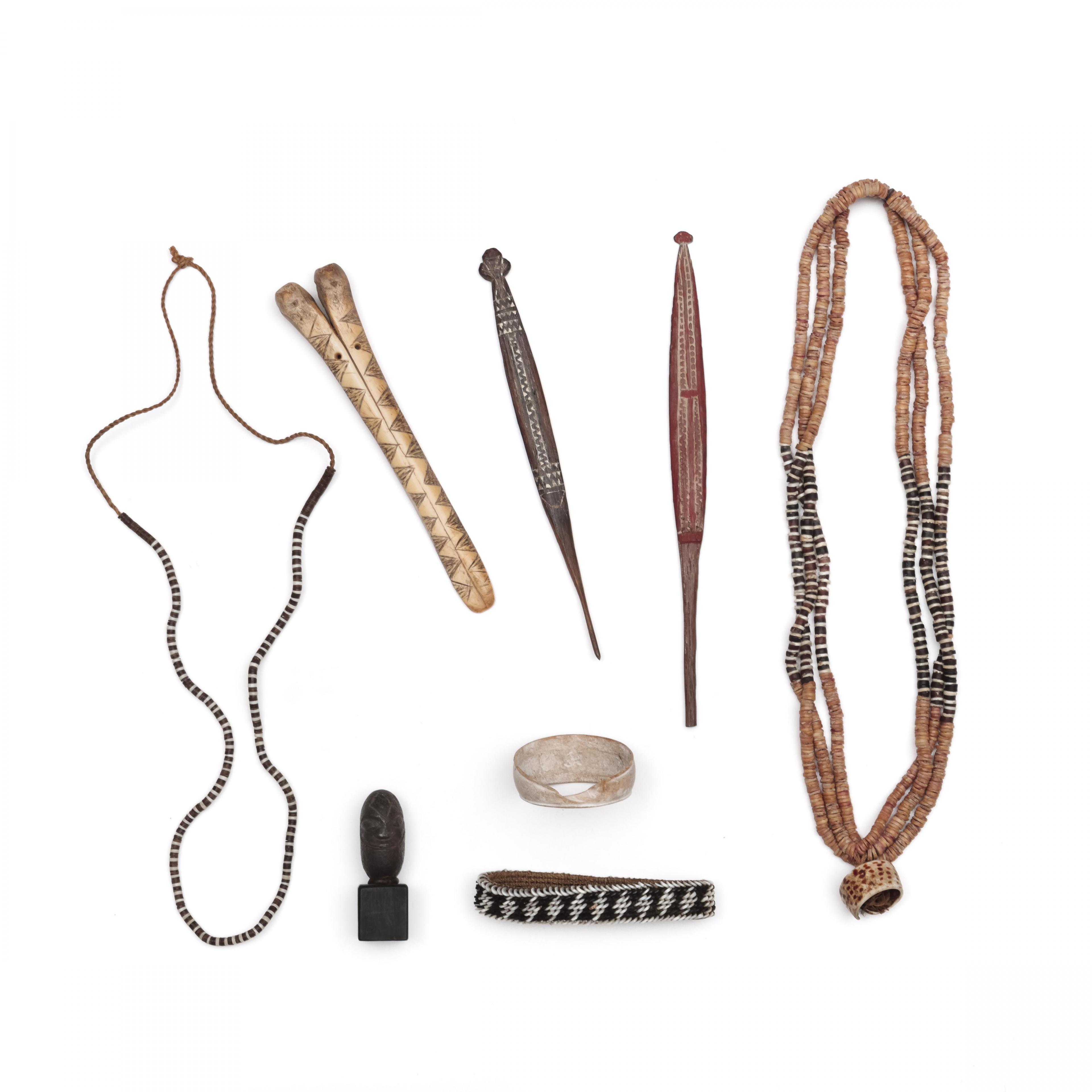 Melanesia, a collection of eight various ornaments;
