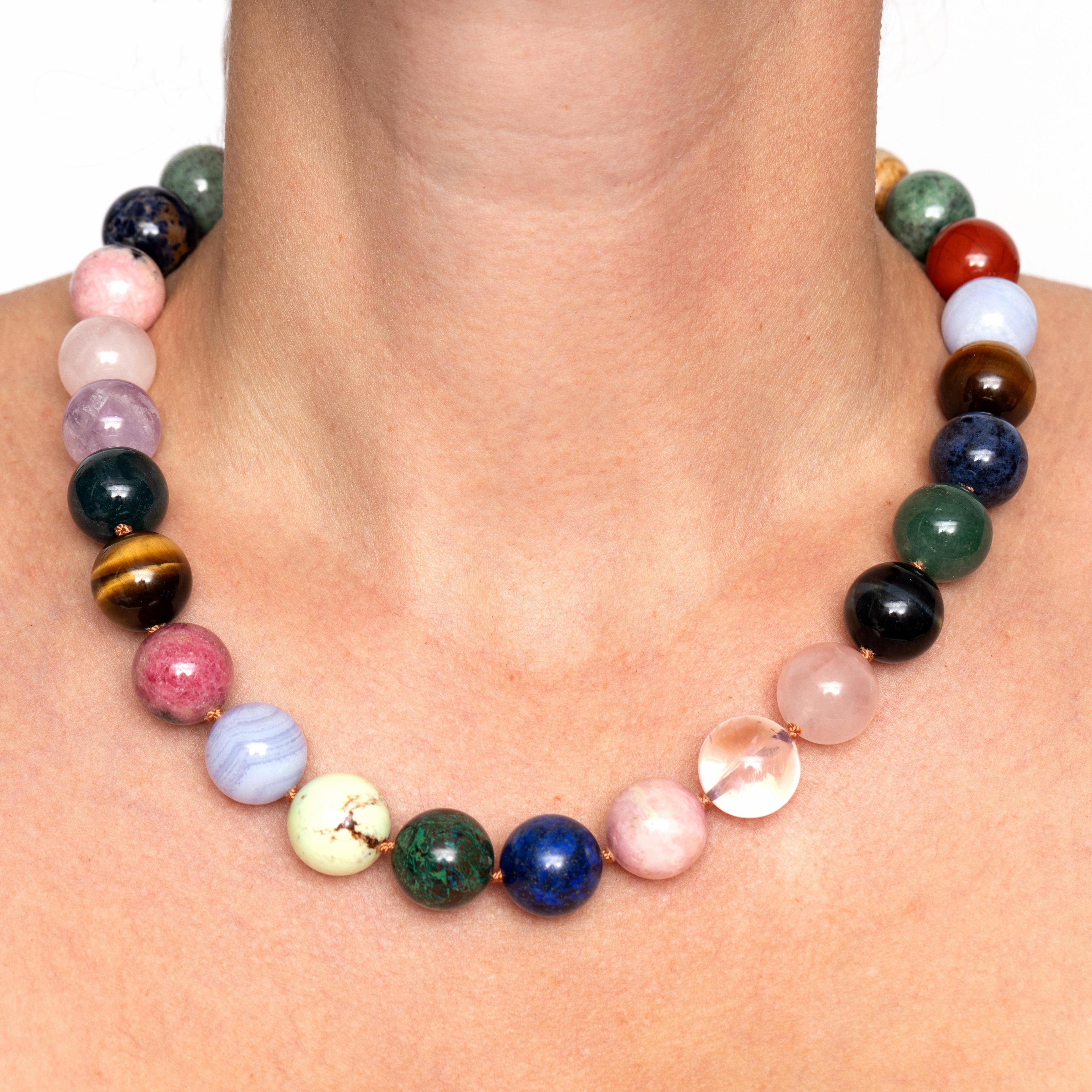 Paloma Picasso for Tiffany & Co, necklace and bracelet, made up of round beads (diam. approx. 15 mm) including tiger eye, chalcedony, jasper and rhodonite, on a silver clasp. In box with etui.