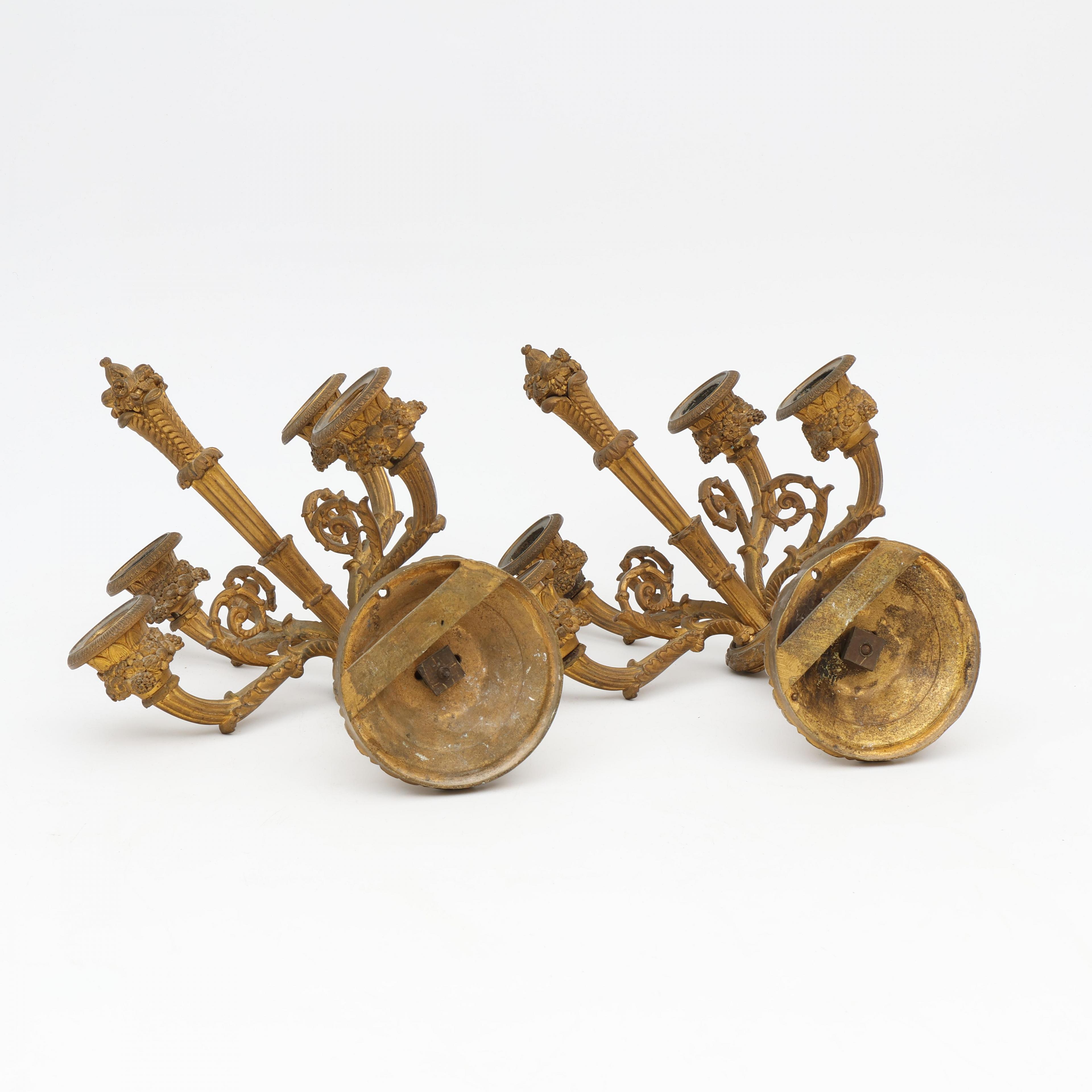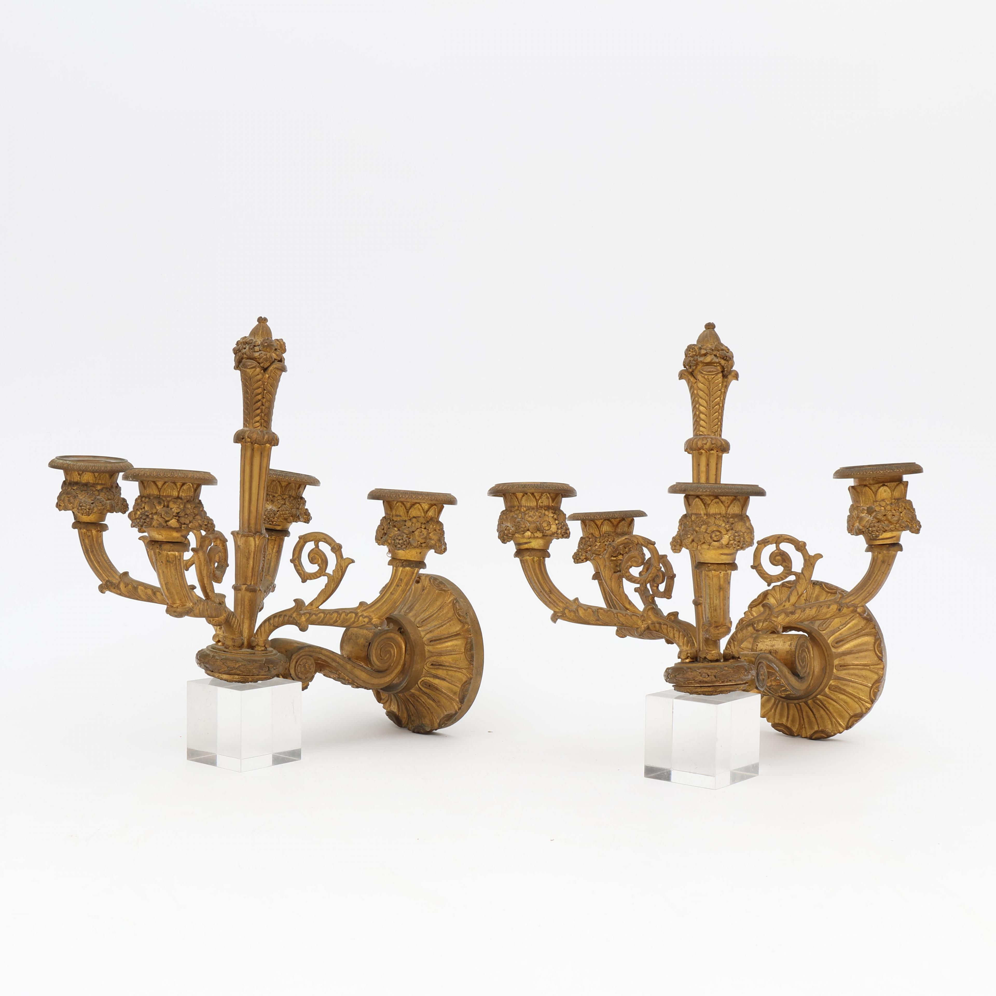 Frankrijk, paar vuurvergulde bronzen vierlichts kaarsen wandappliques, Empire, 19e eeuw;