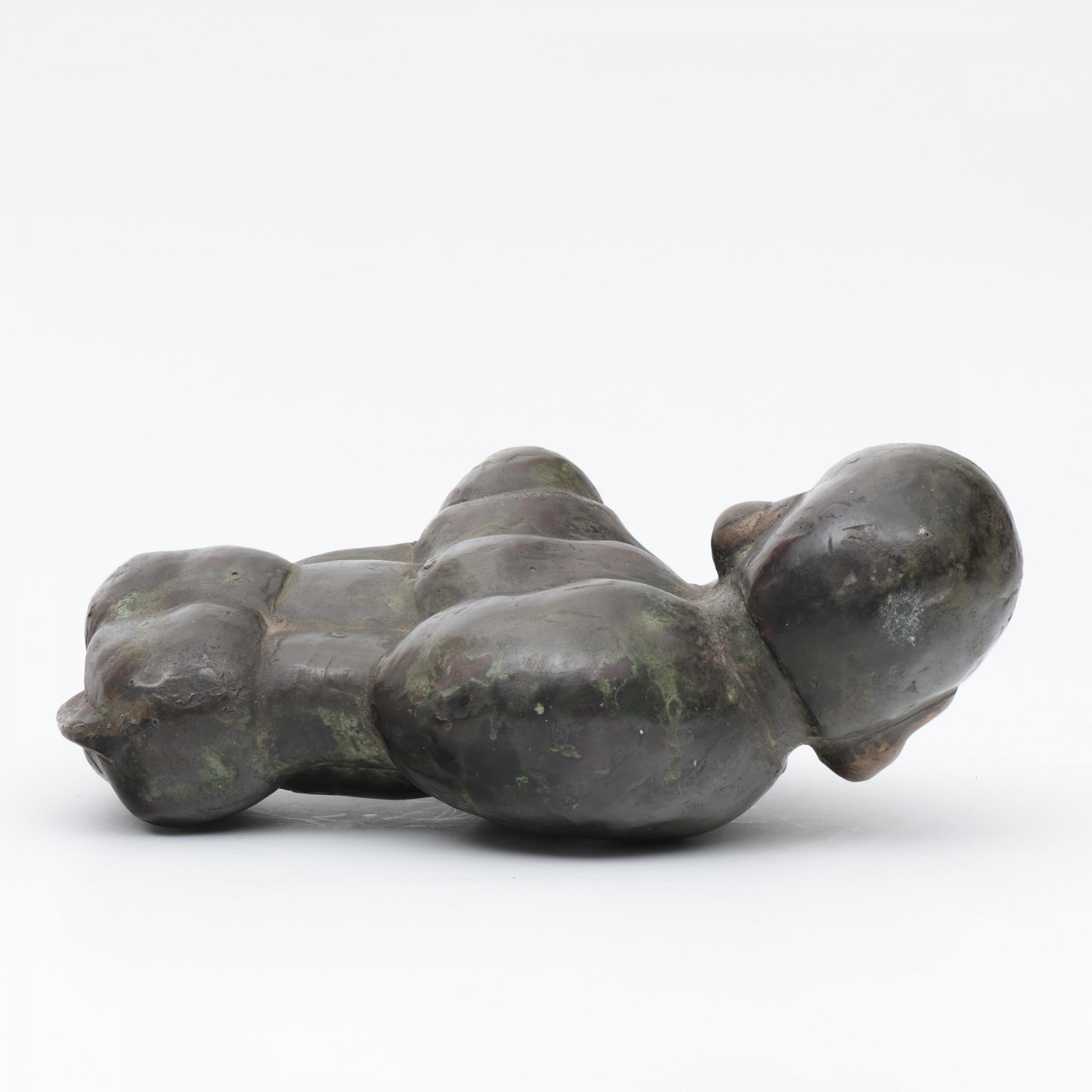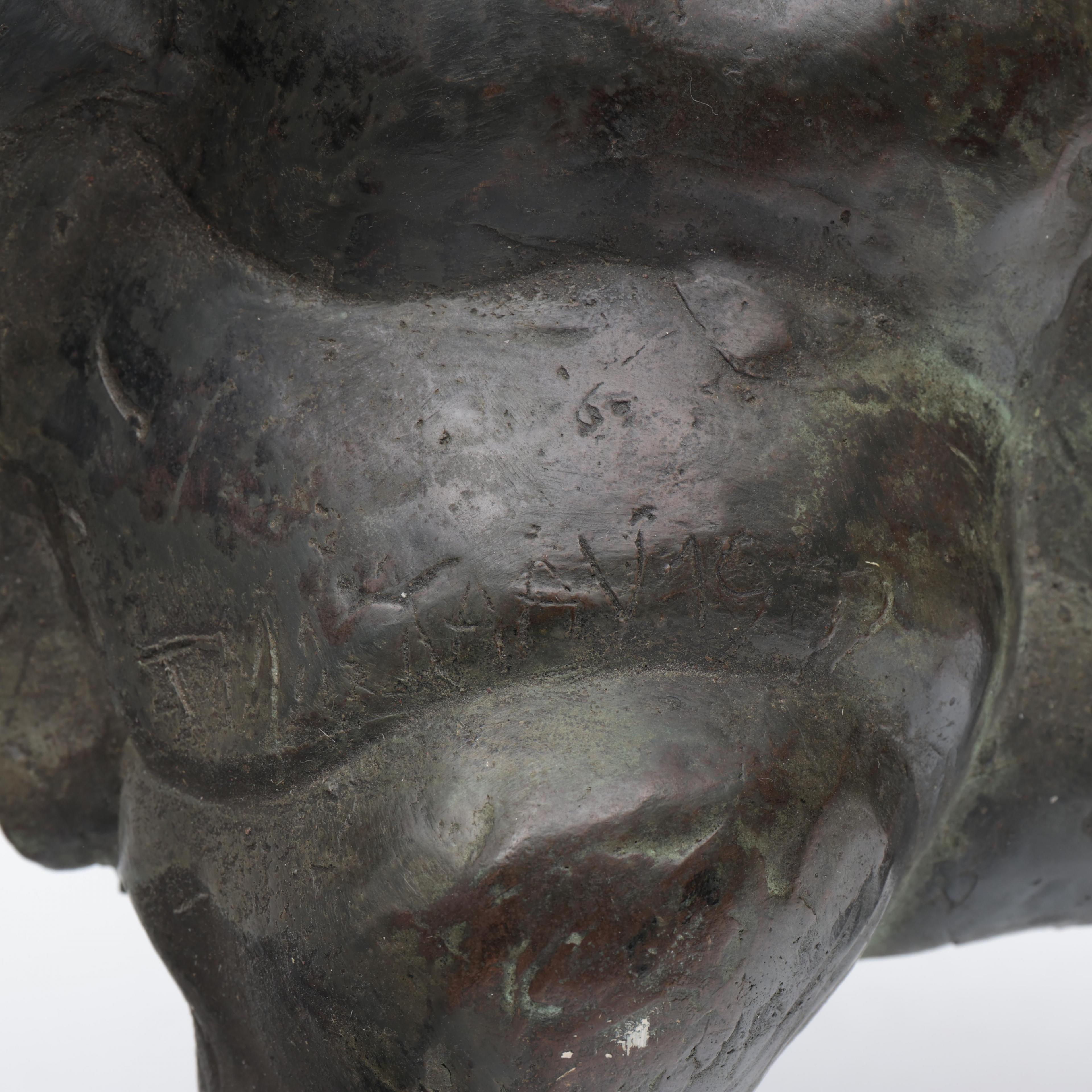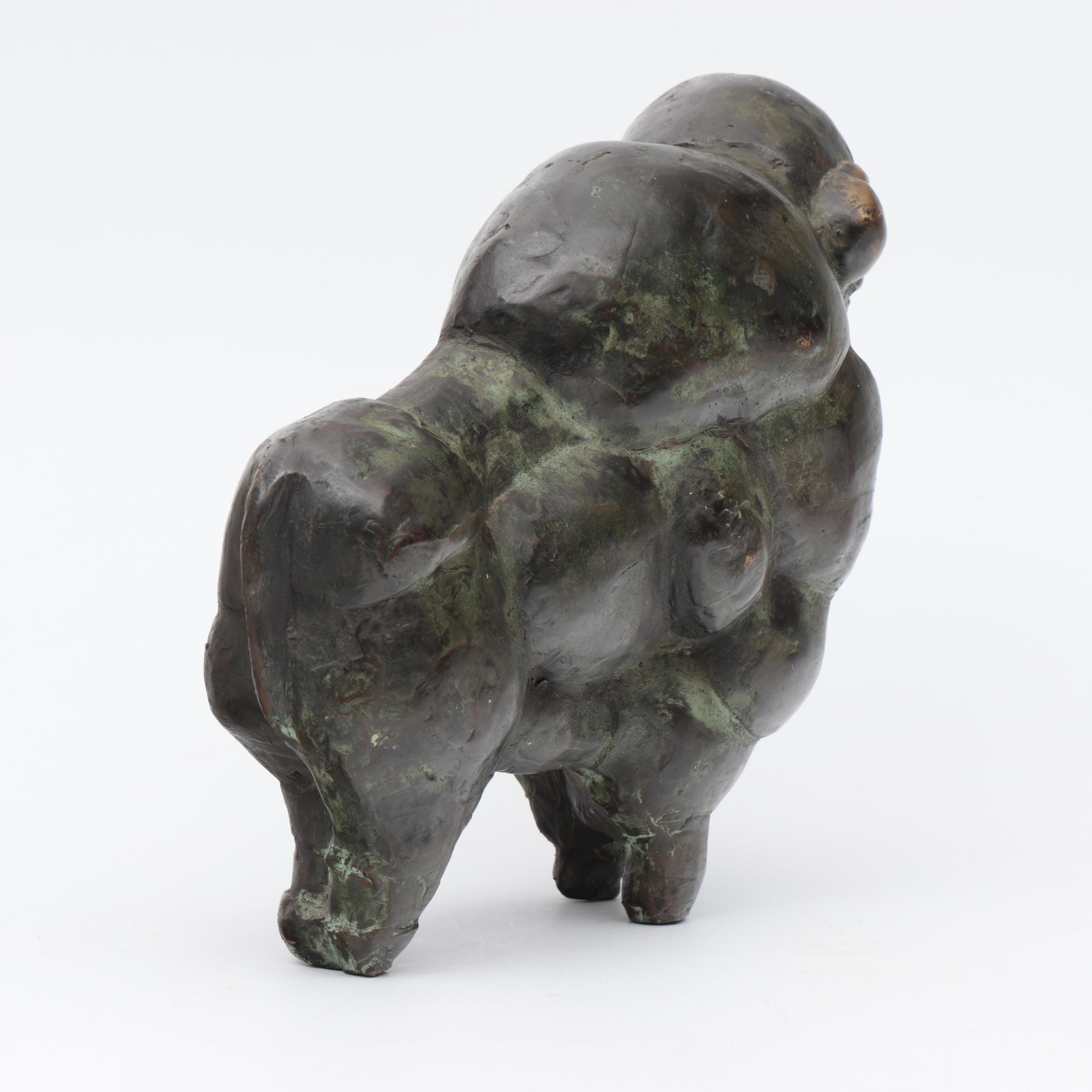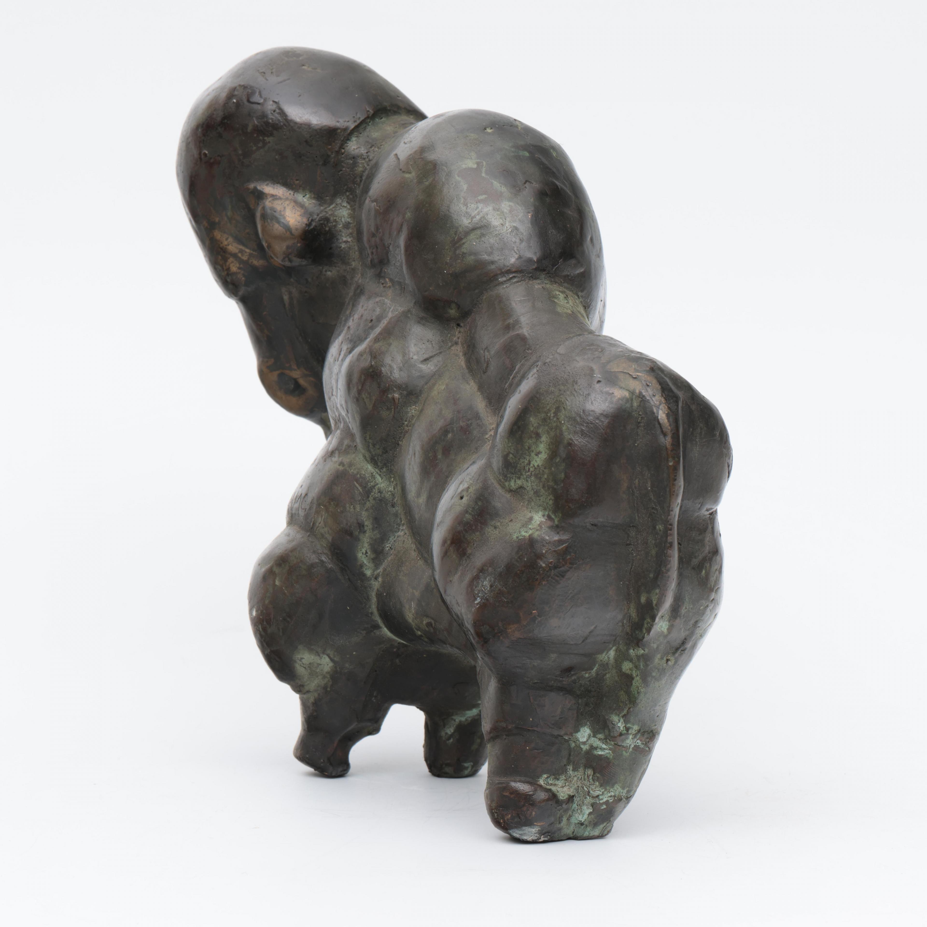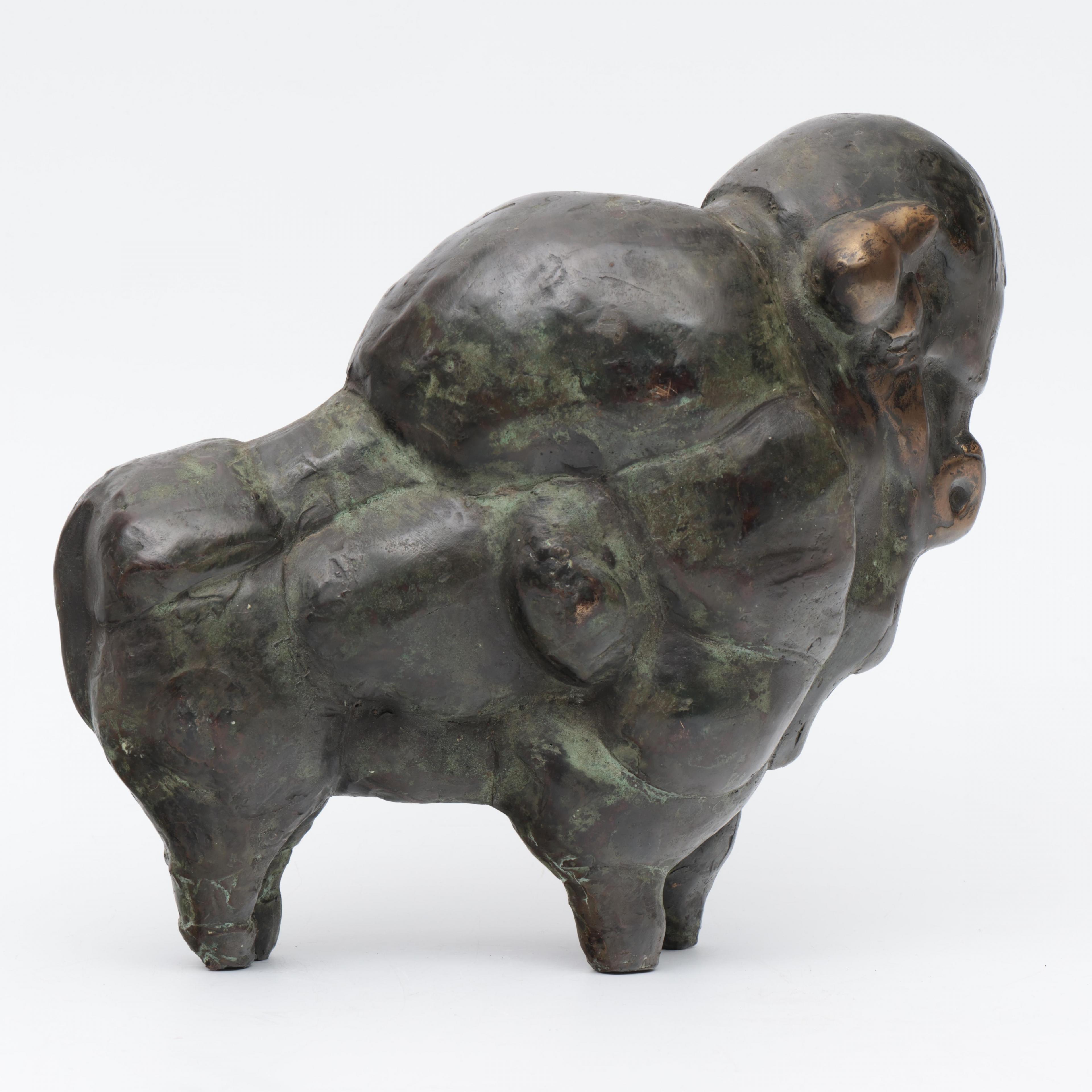 Theo Mackaay (geb.1950), groen gepatineerd bronzen sculptuur 'Bizon', 1977;