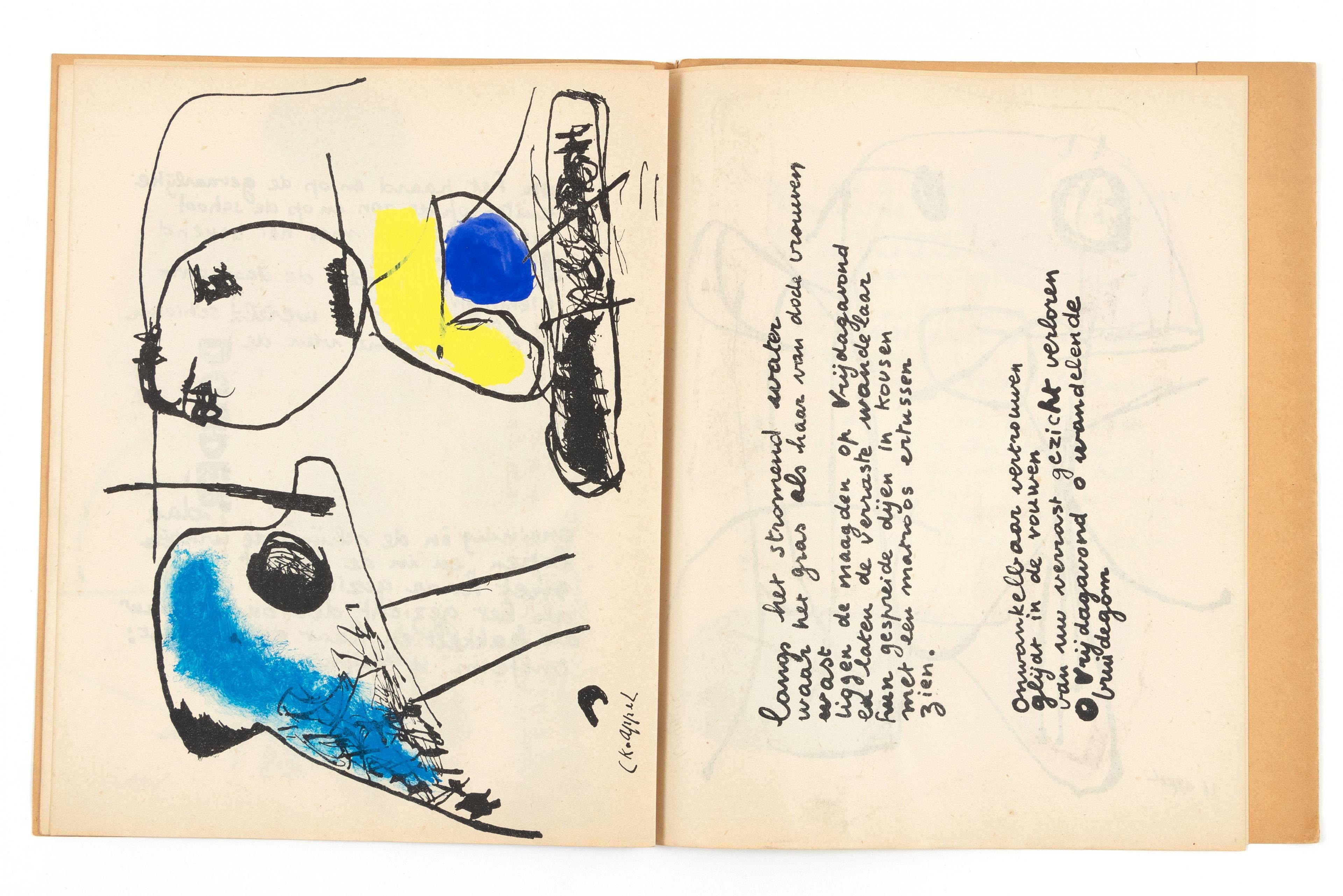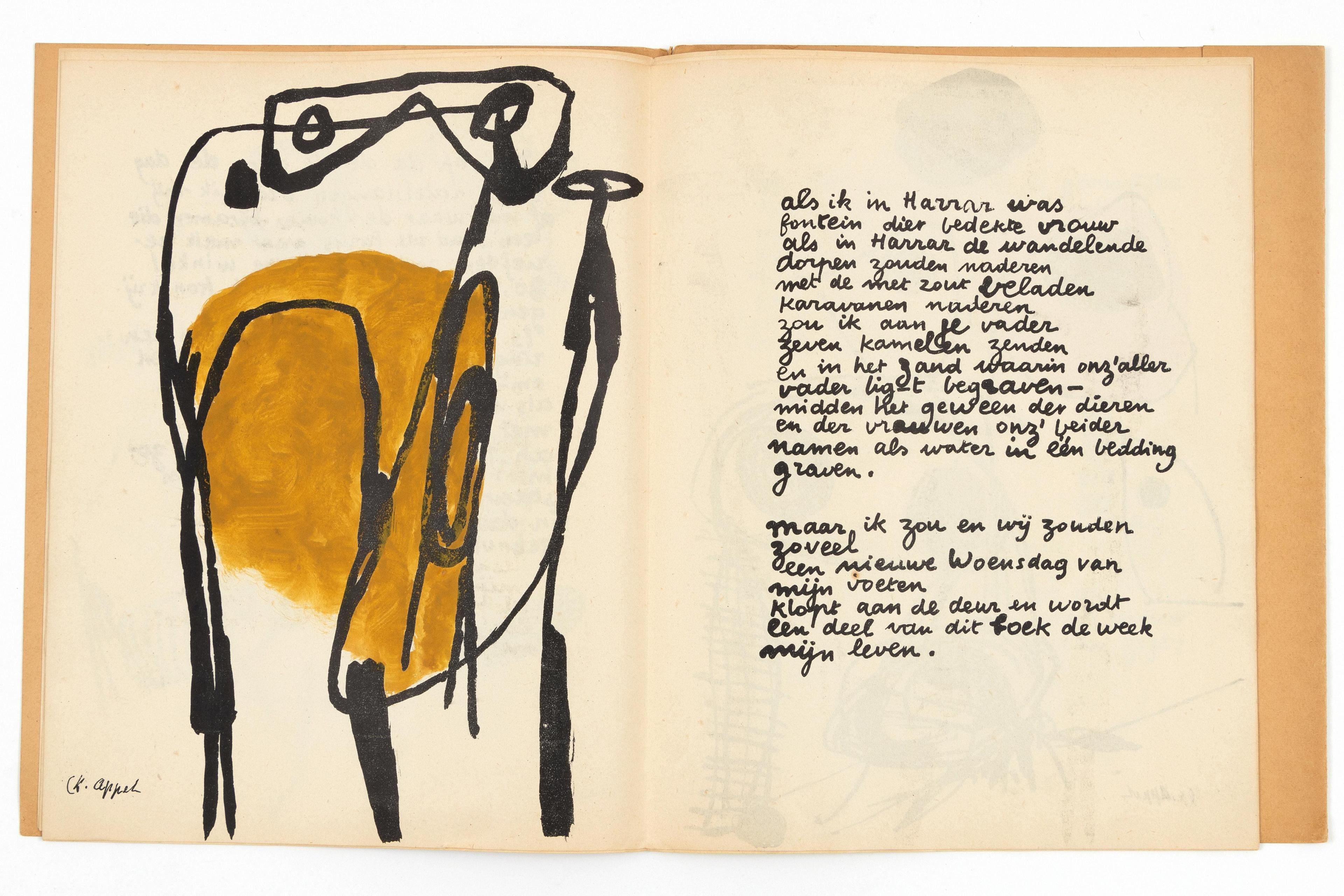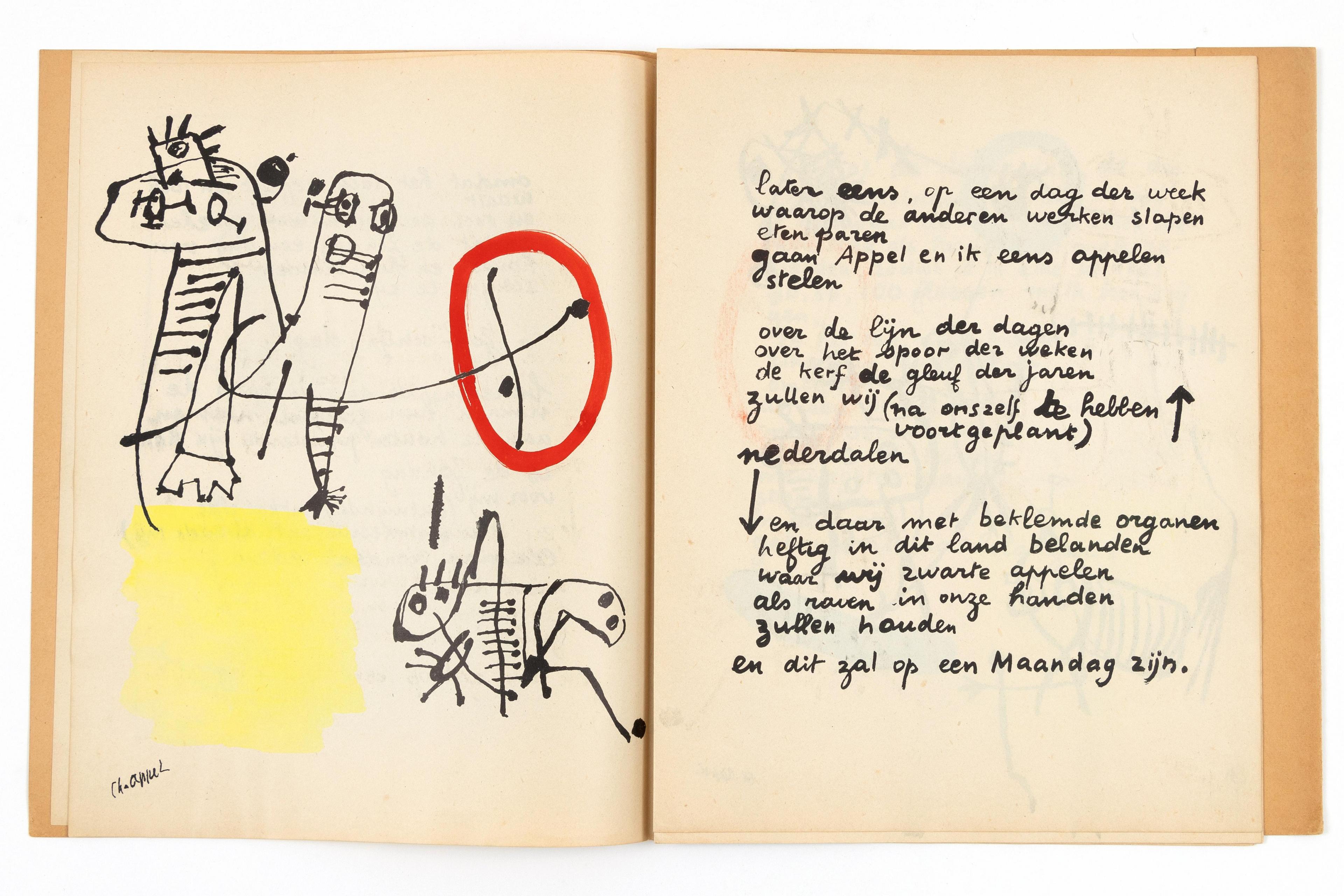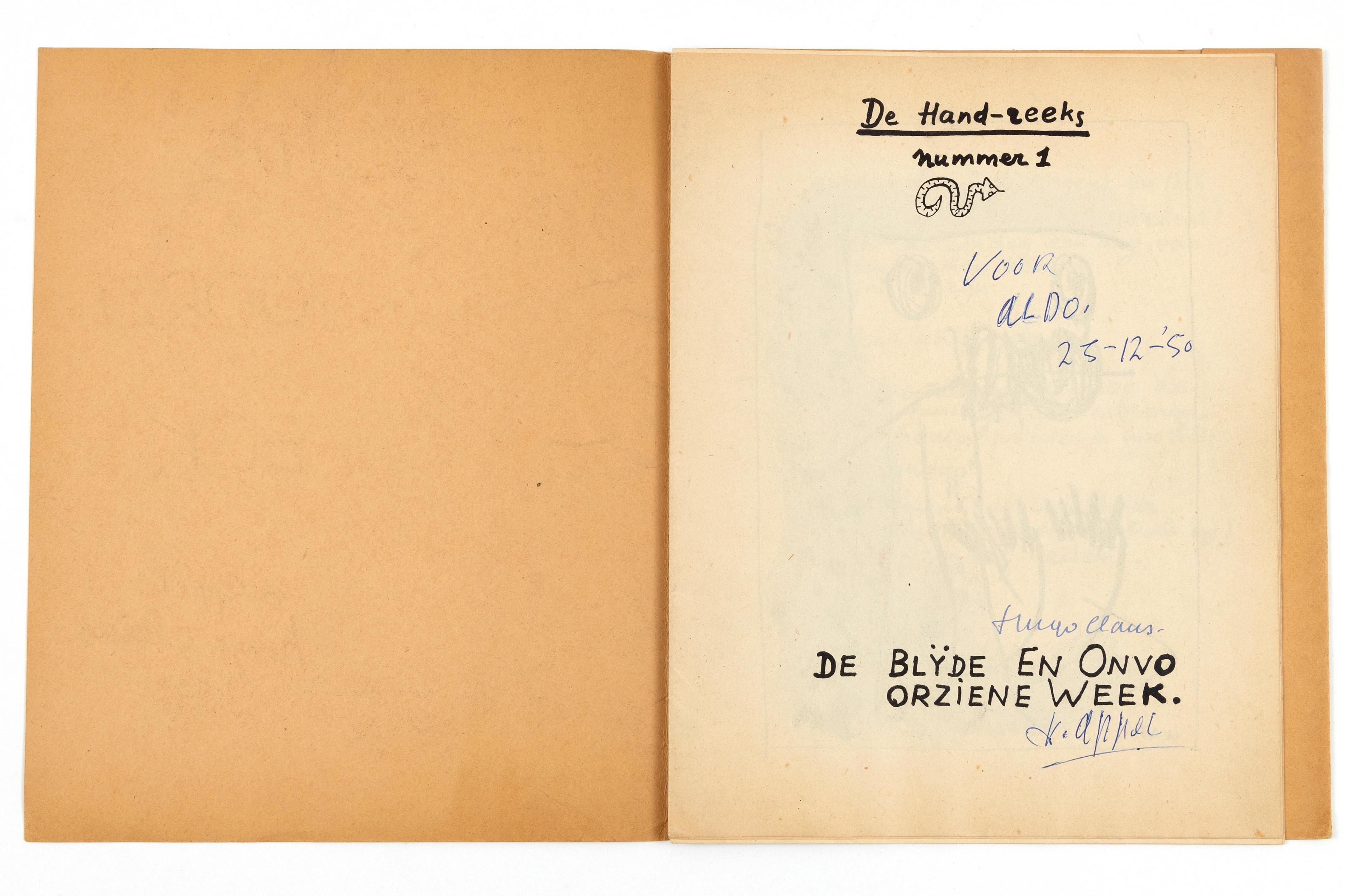 folio with photocopy and handcolouring in gouache, signed by artist and author, dedicated by the artist 'voor Aldo 25-12-1950' on the title page, numbered '3' on the justification page, 27,5 x 22,7 cm.