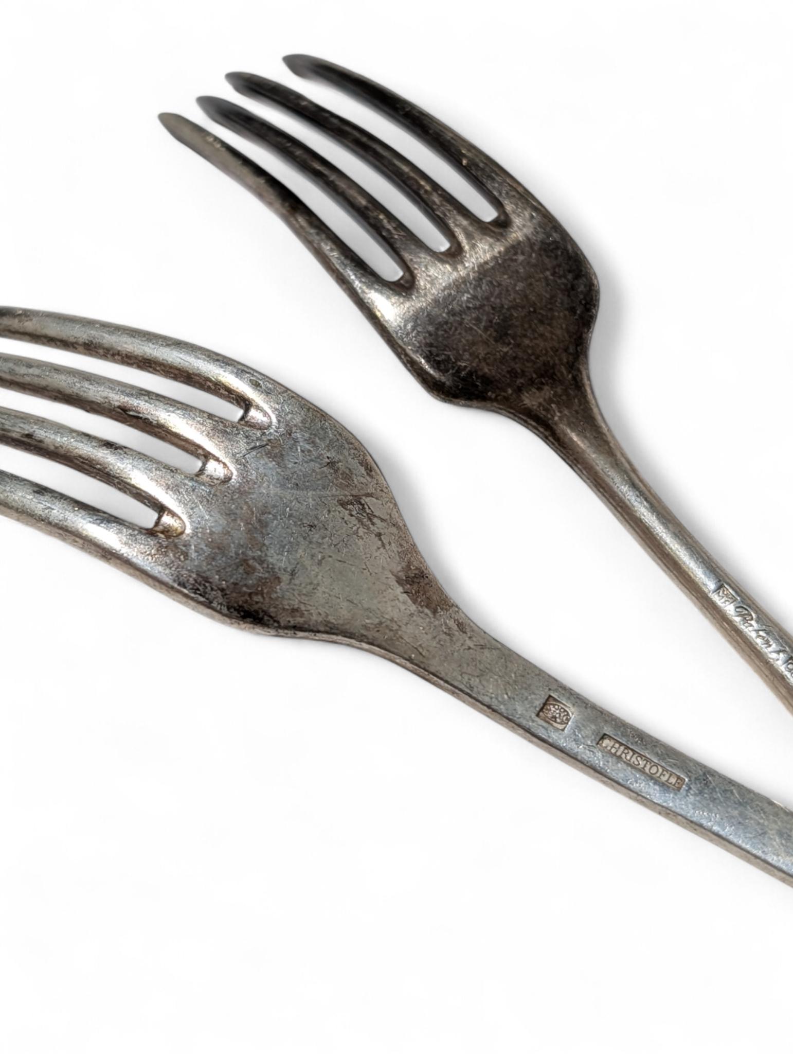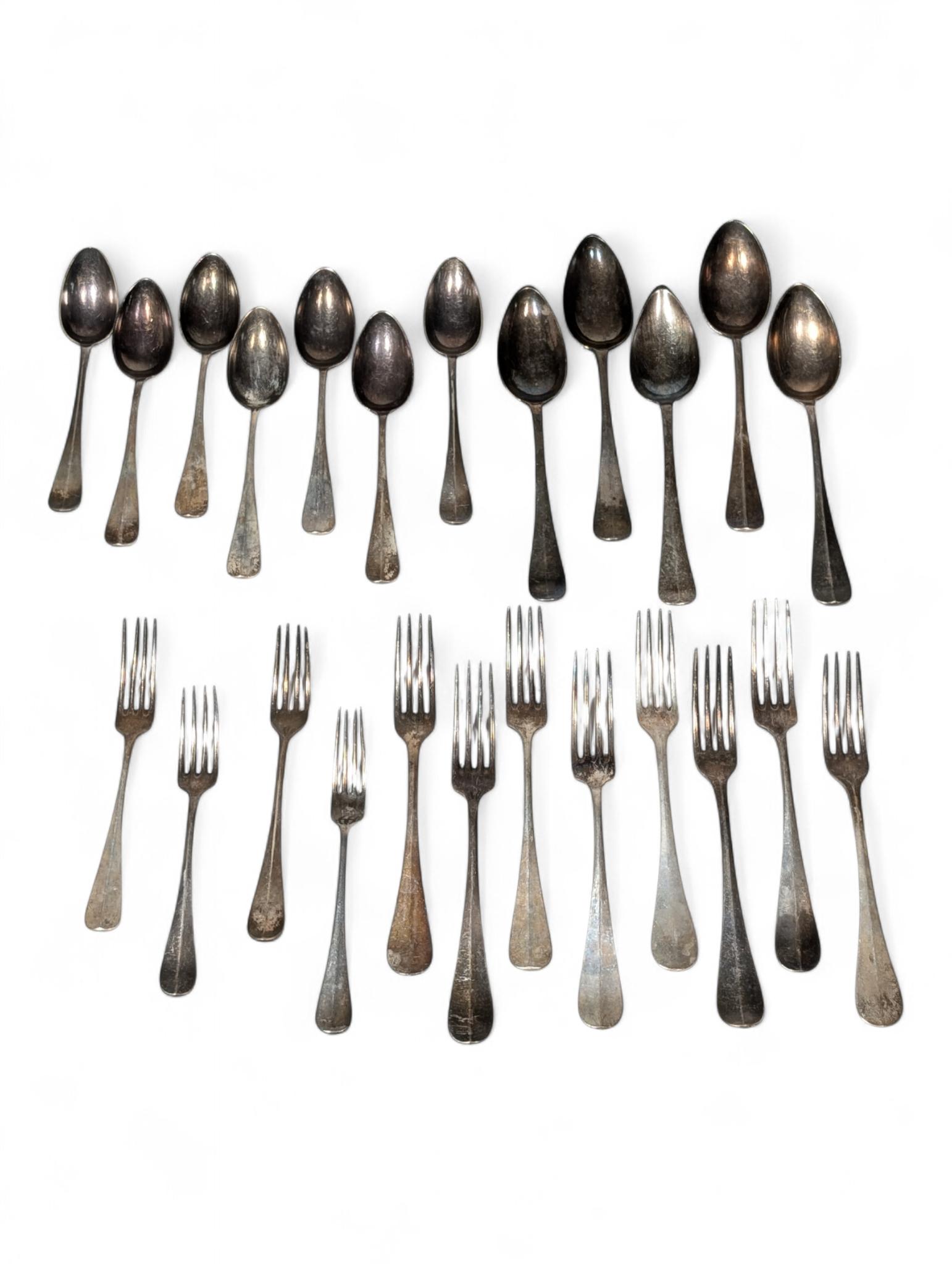 Divers verzilverd bestek en drie zilveren lepels, Hollands glad;
