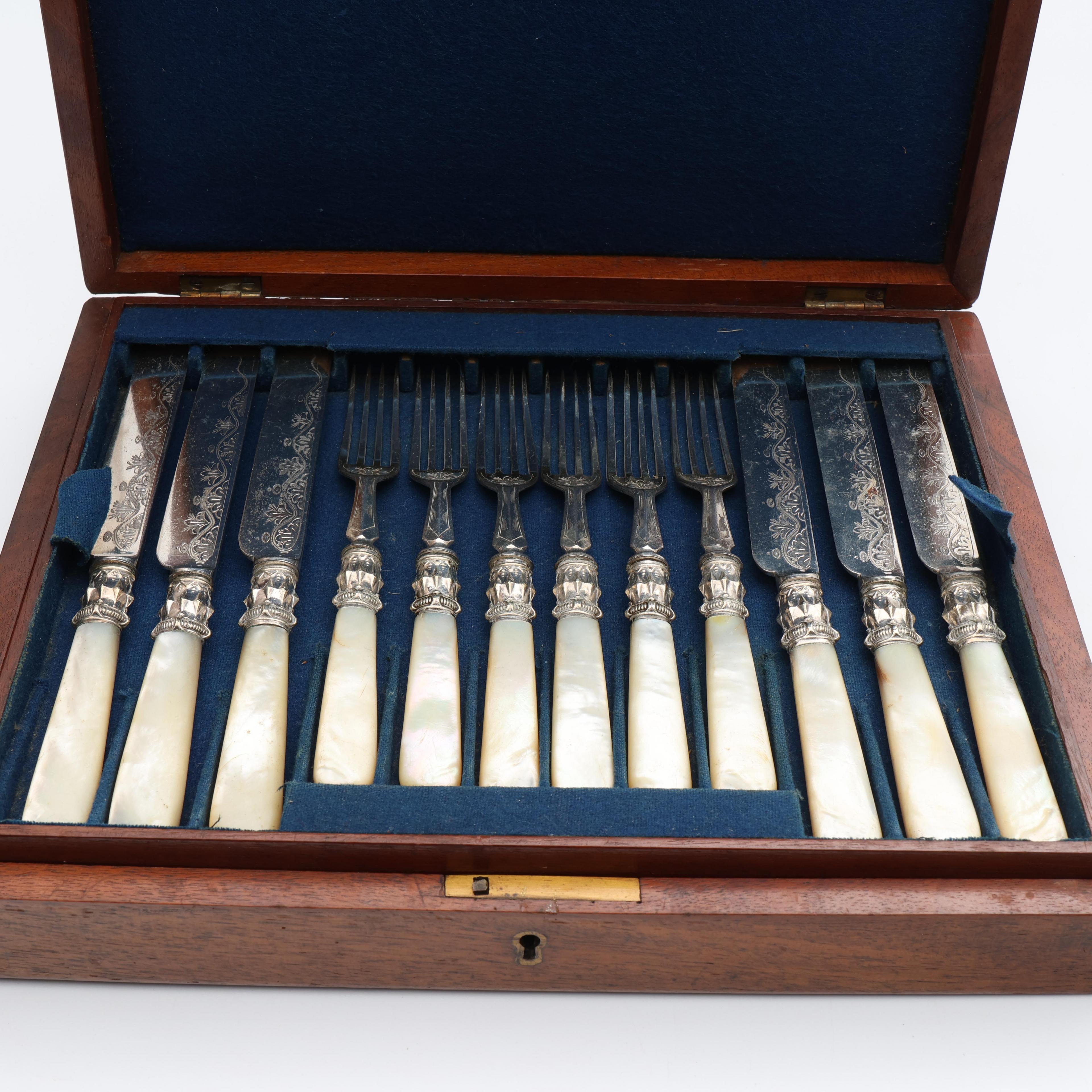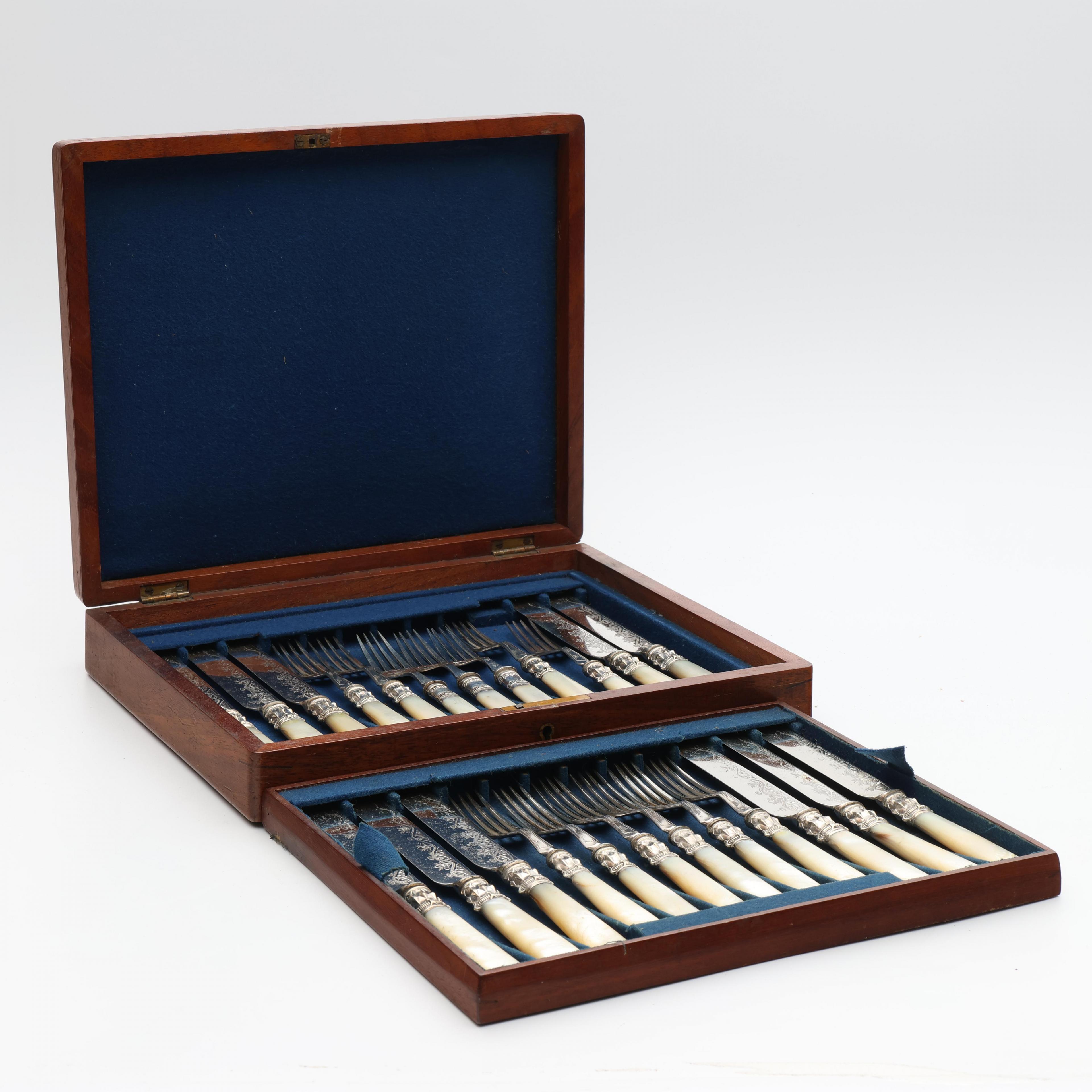 Engeland, twaalf pleet fruitcouverts met parelmoer heften, circa 1900;