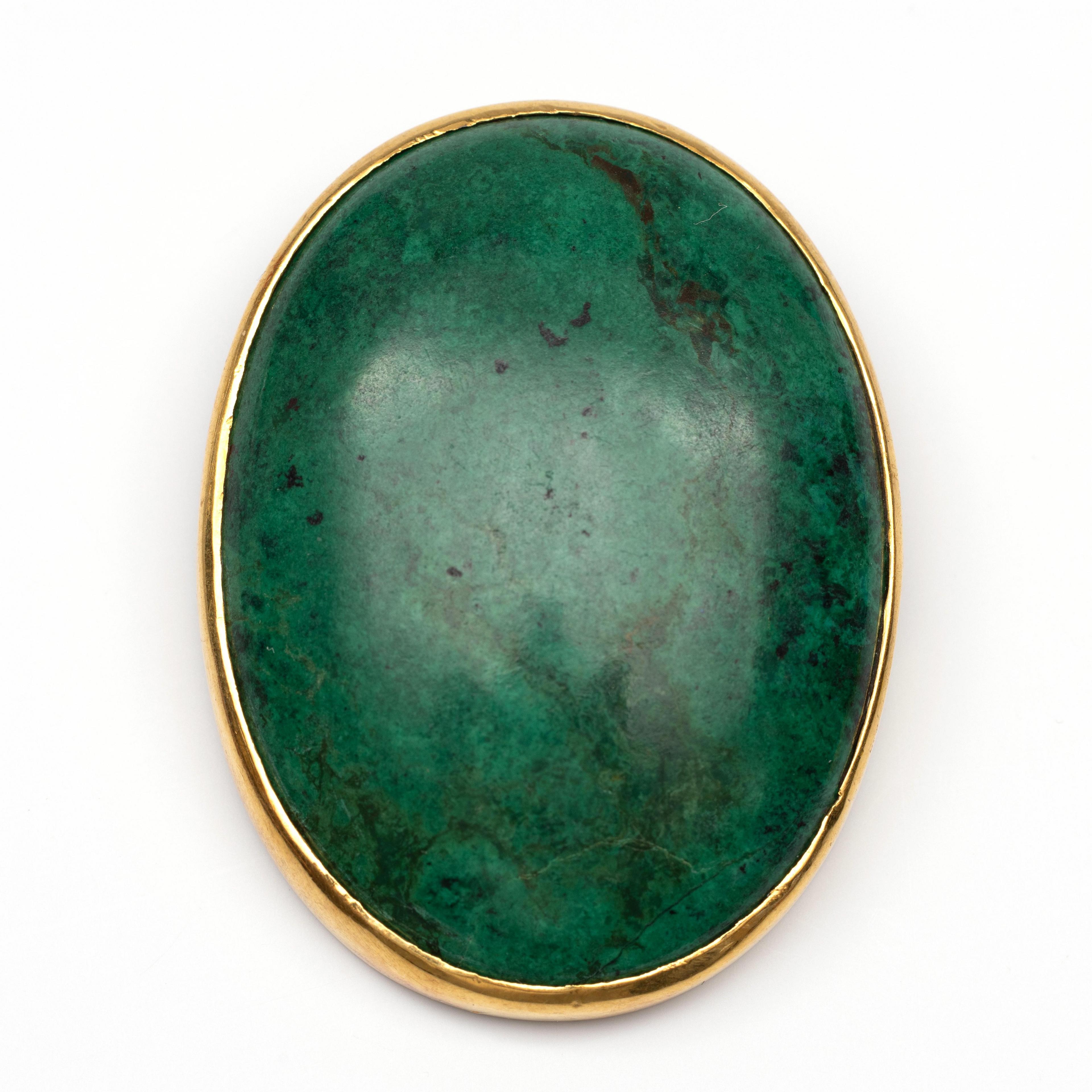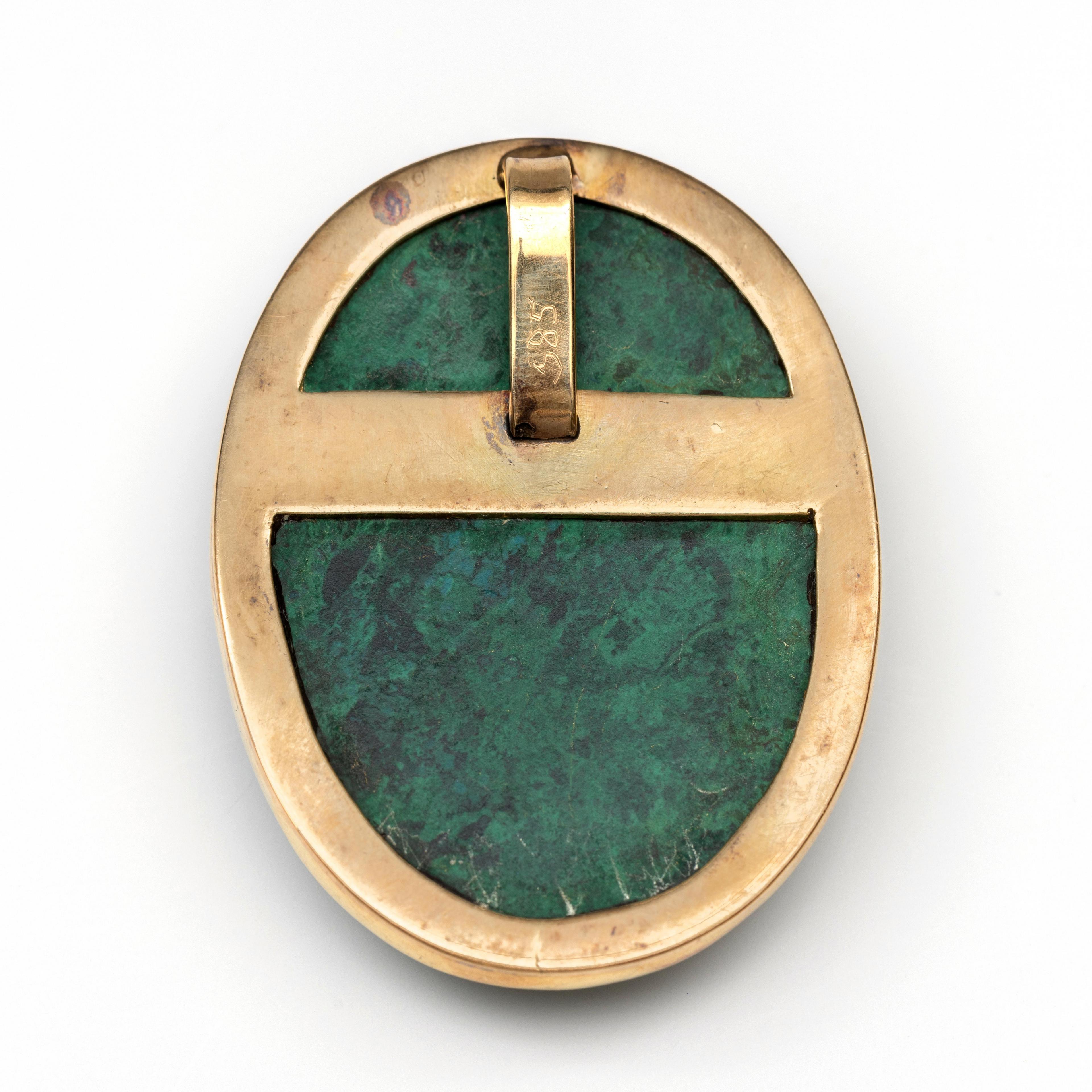 Gold pendant, set with an oval chrysocolla (39 x 29 mm)