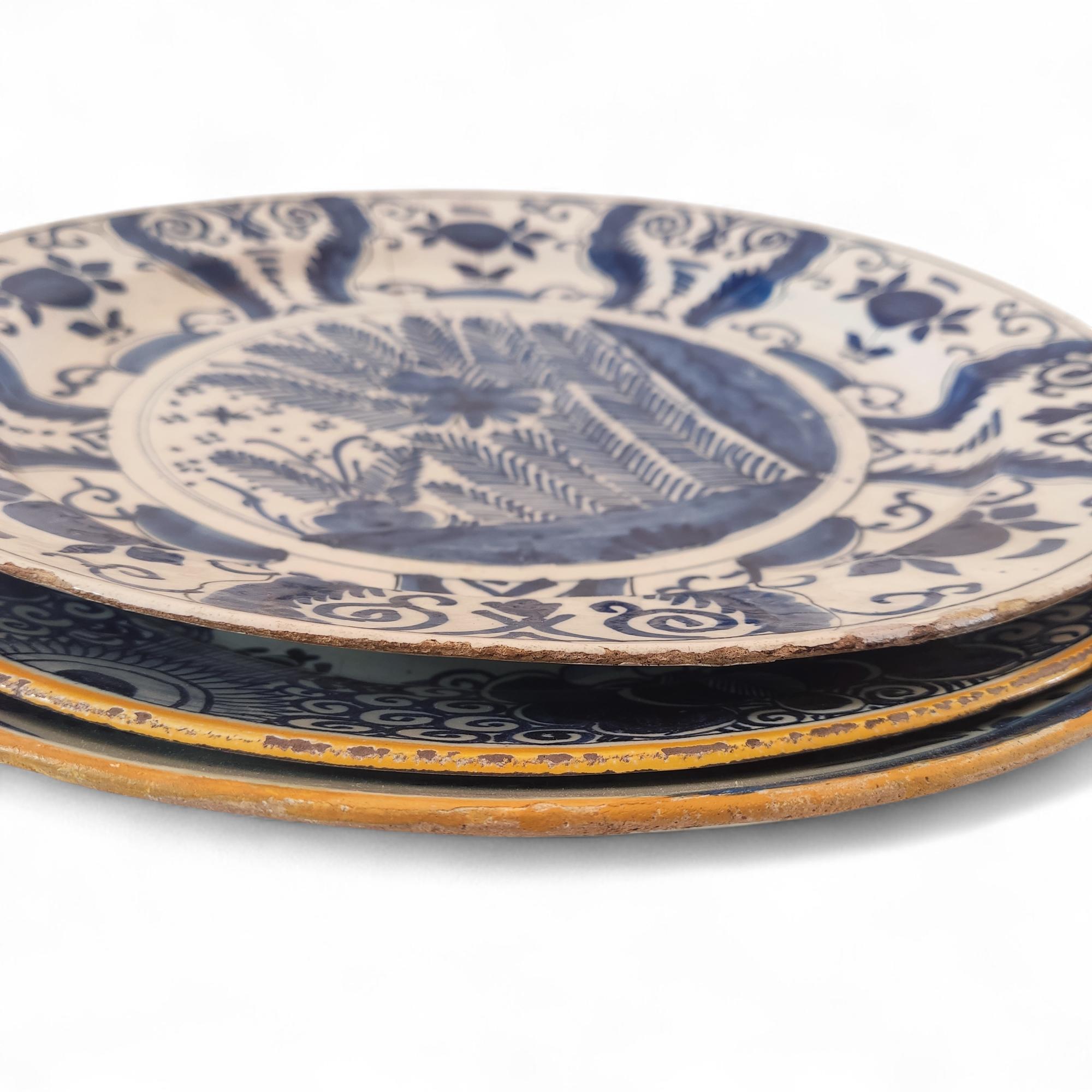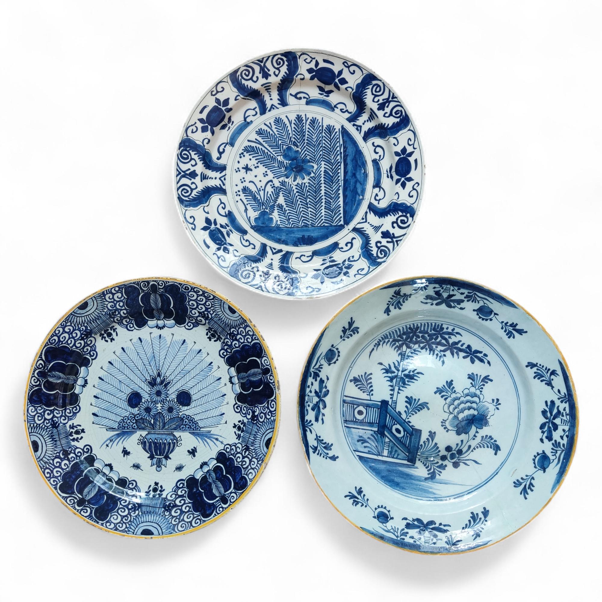 Delft, drie blauwwit aardewerken schotels, 18e eeuw,