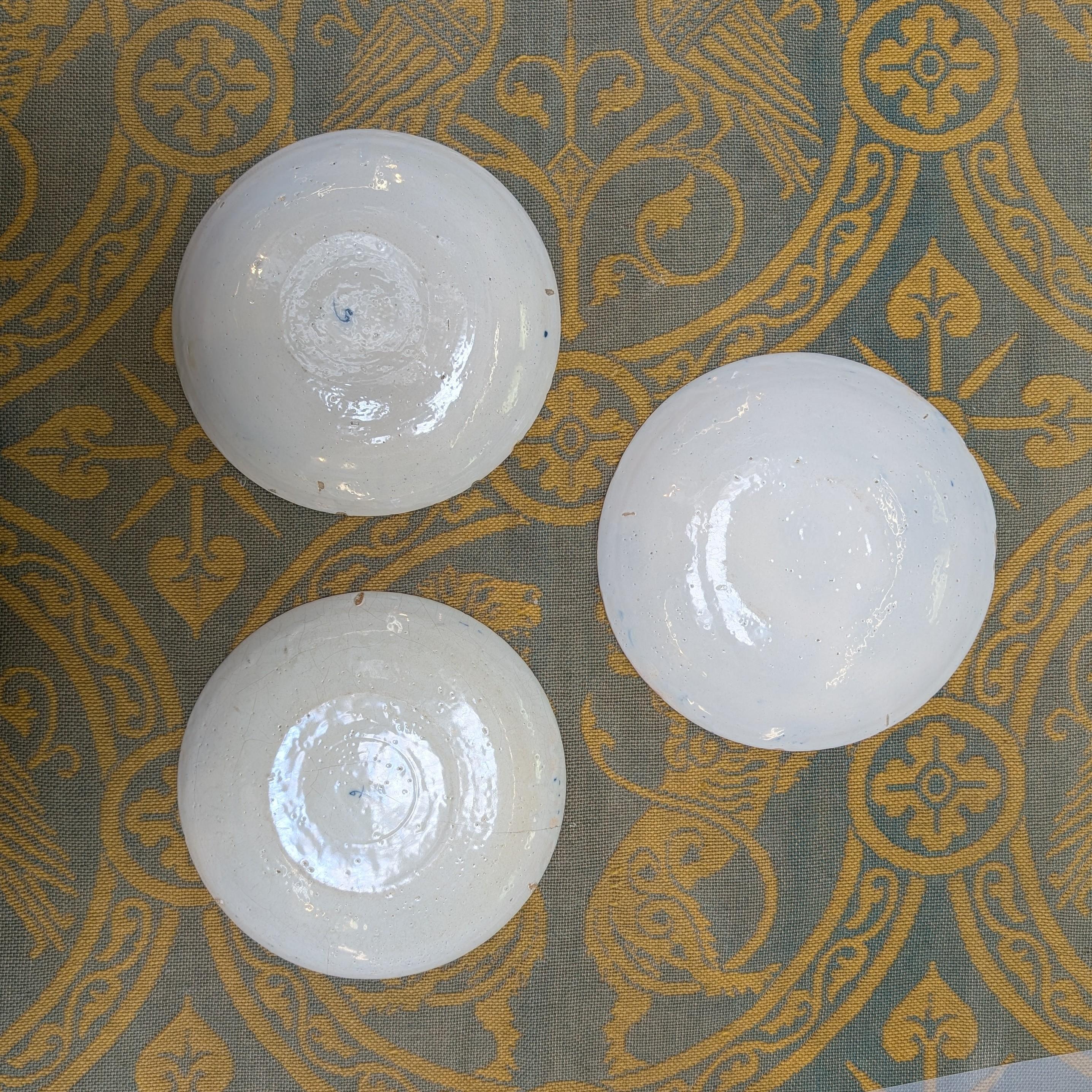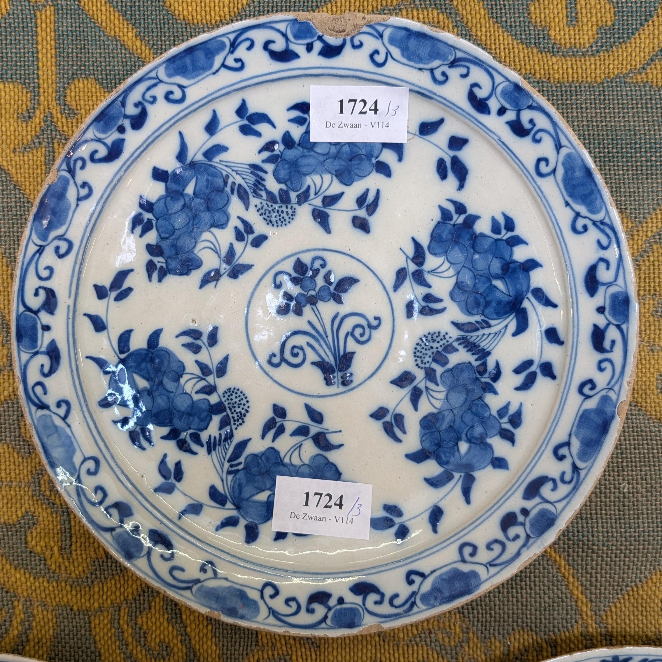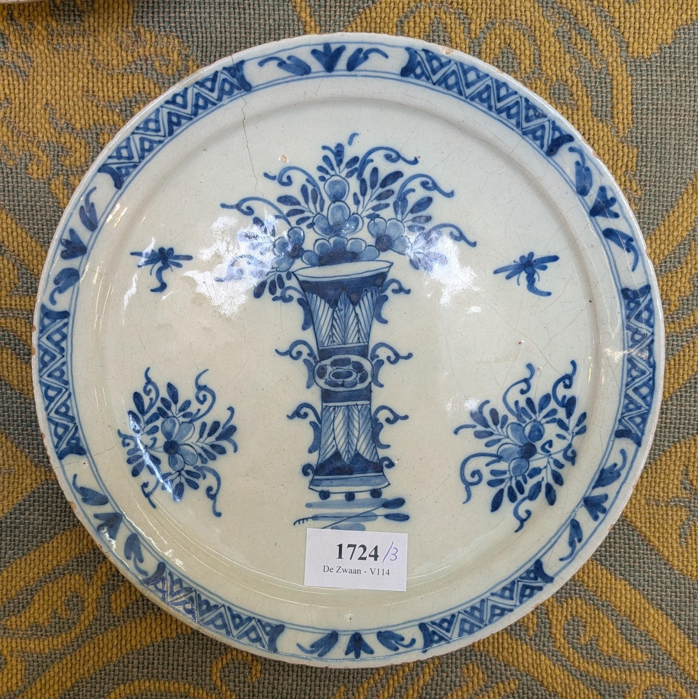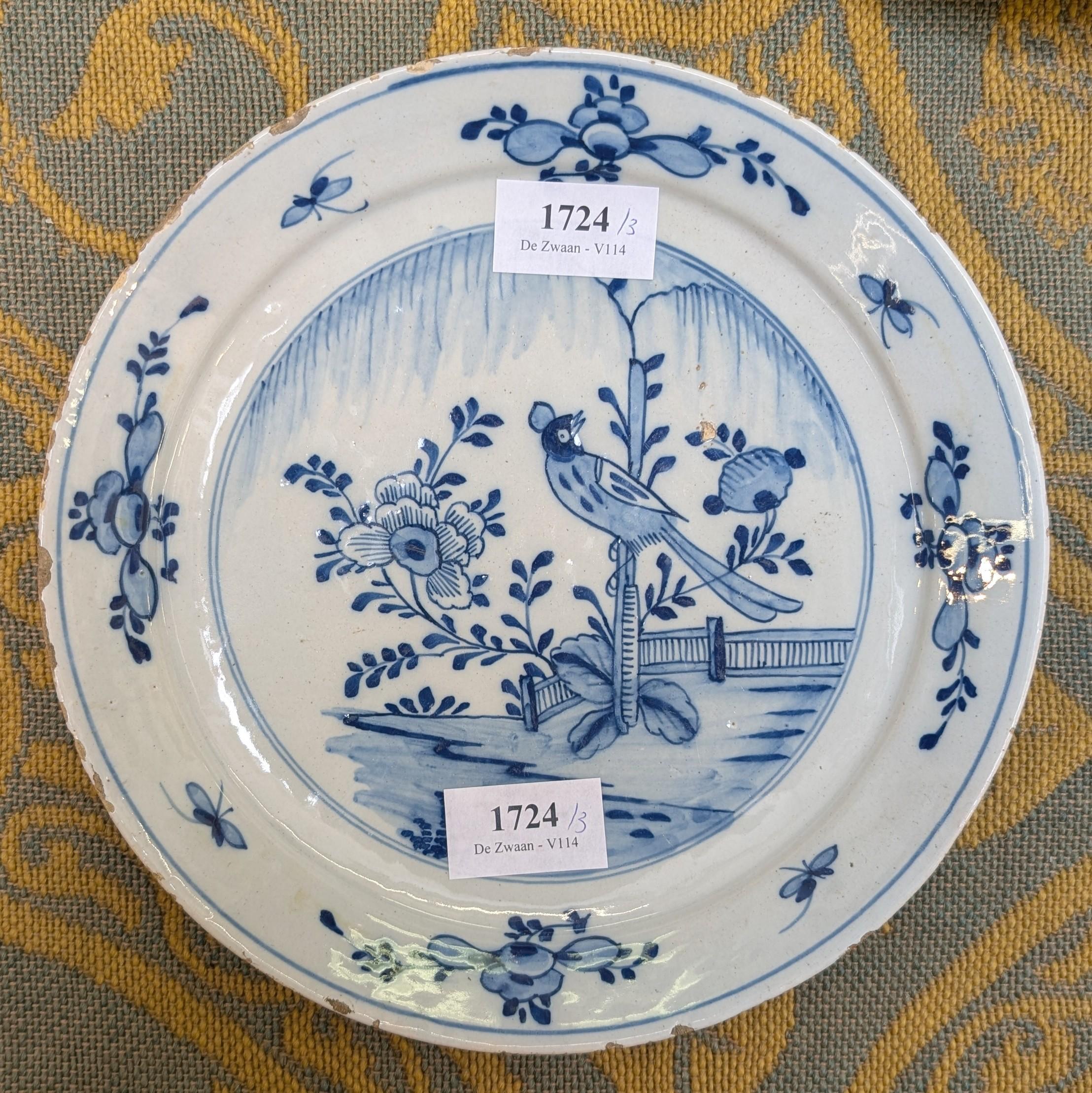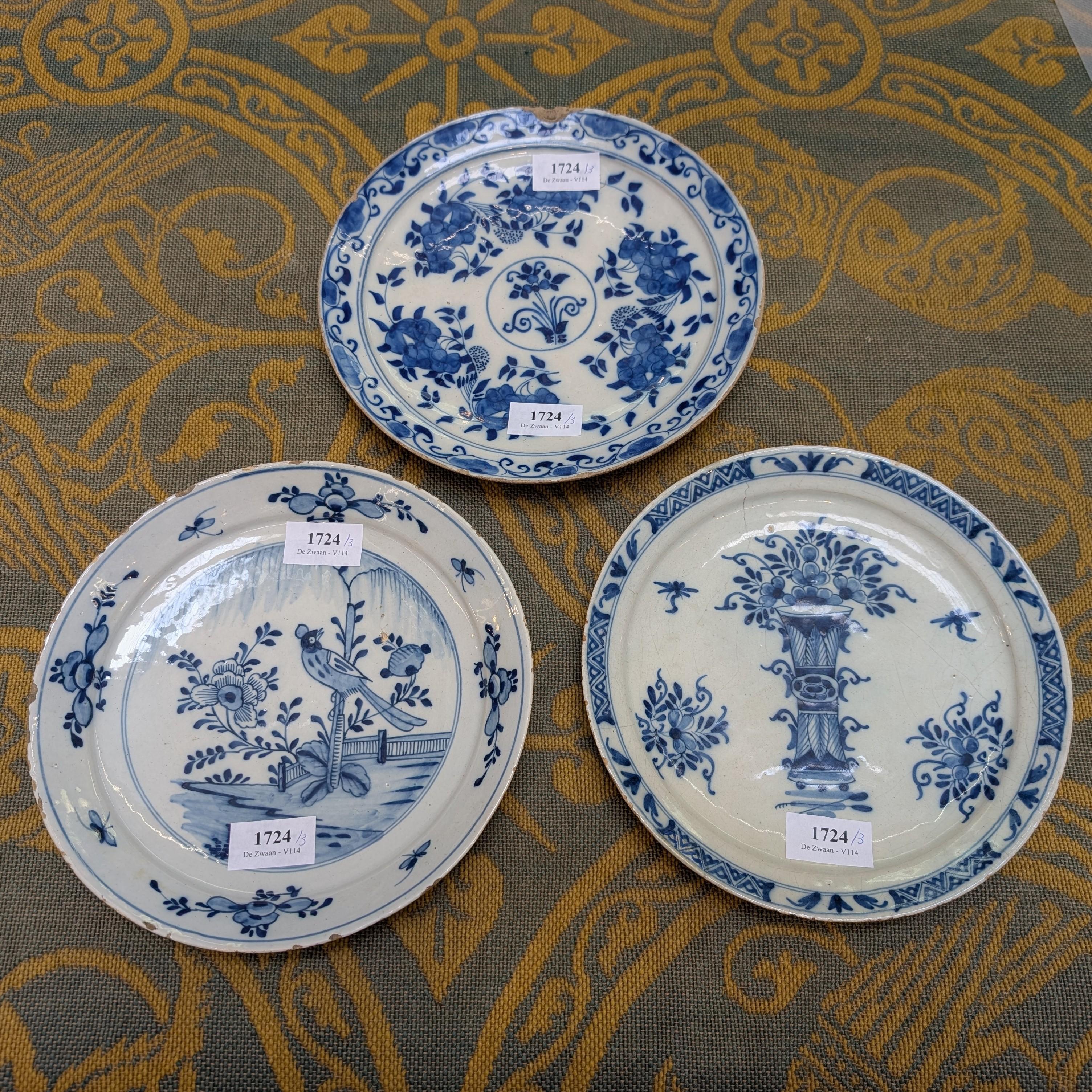 Delft, drie blauwwit aardewerken pannekoek bordjes, 18e eeuw,