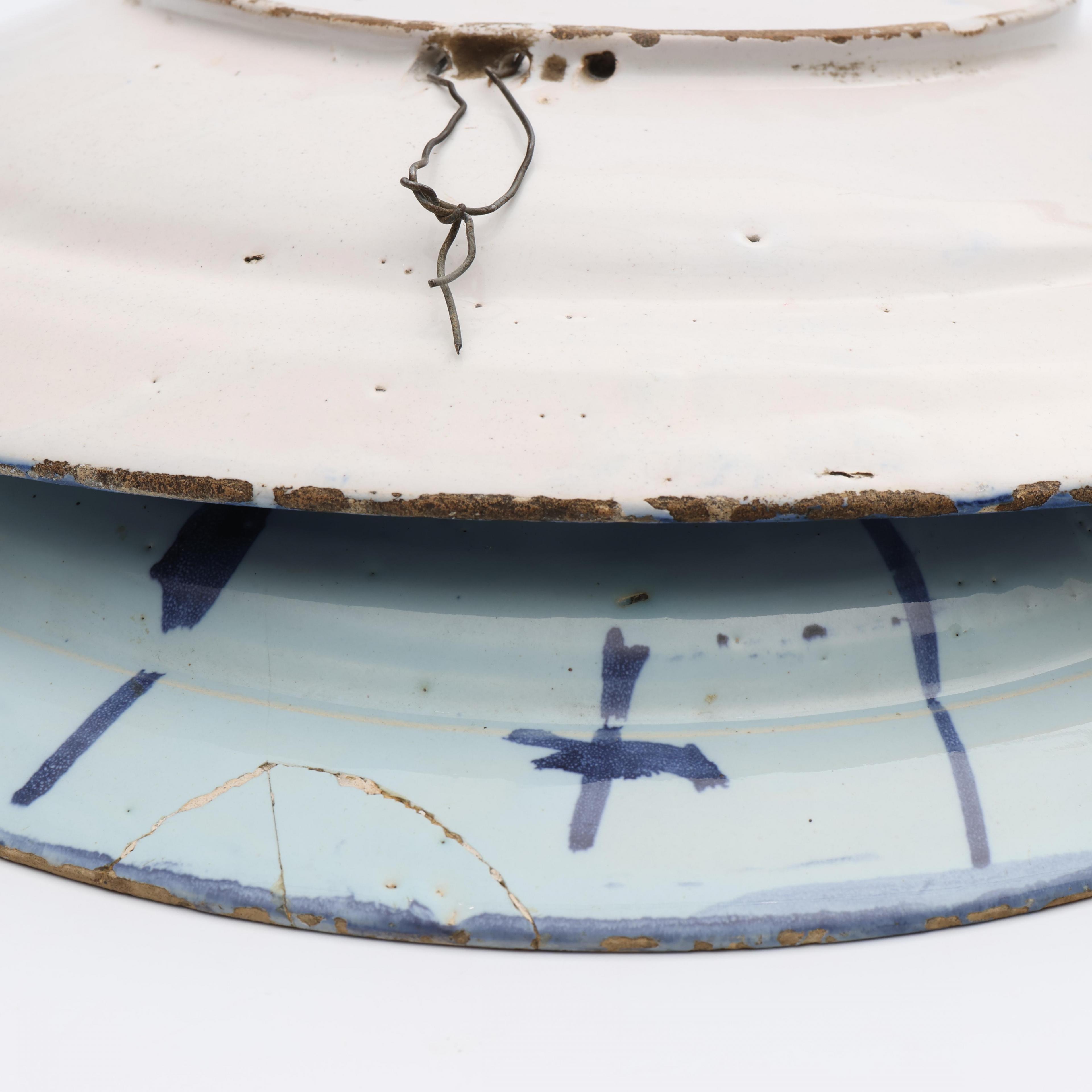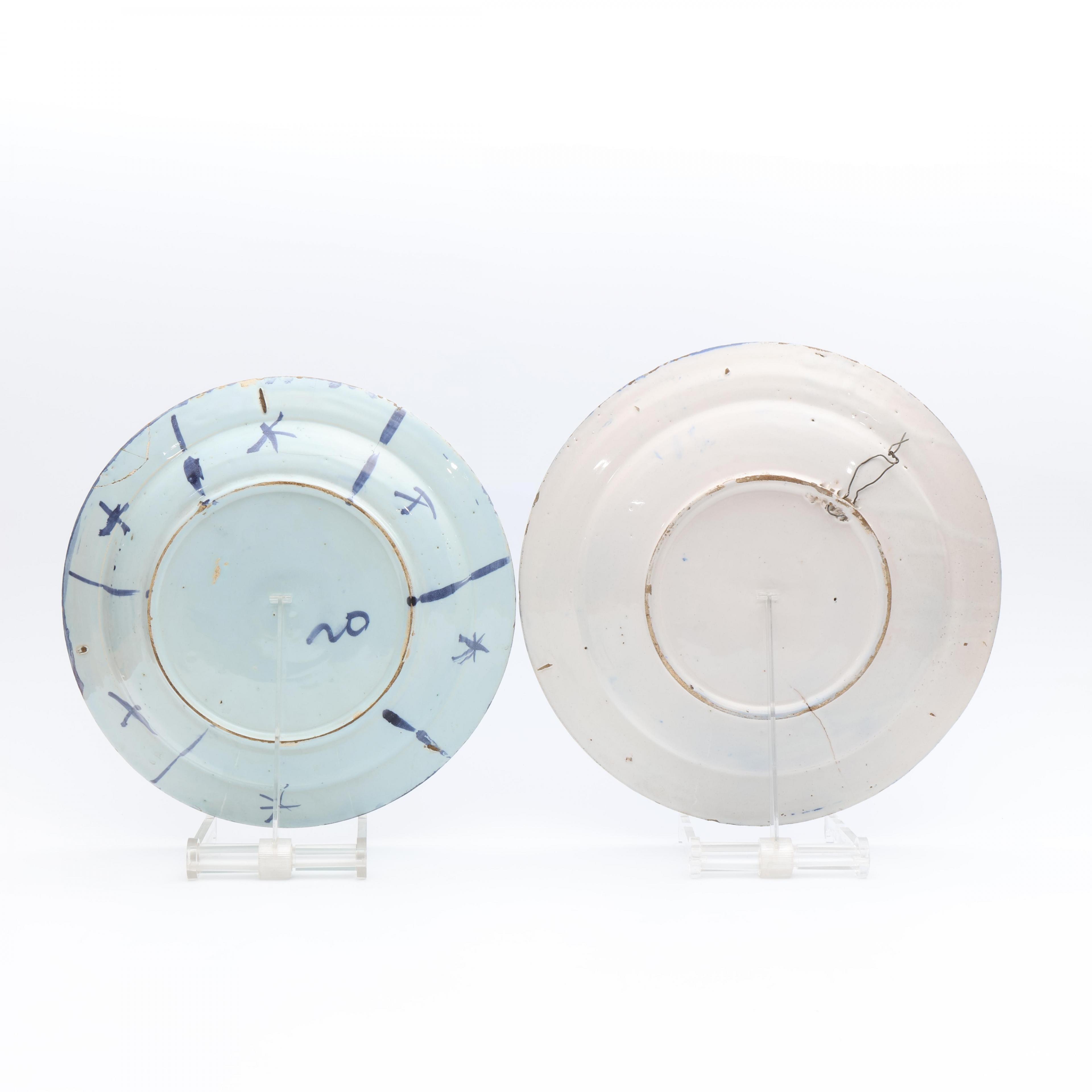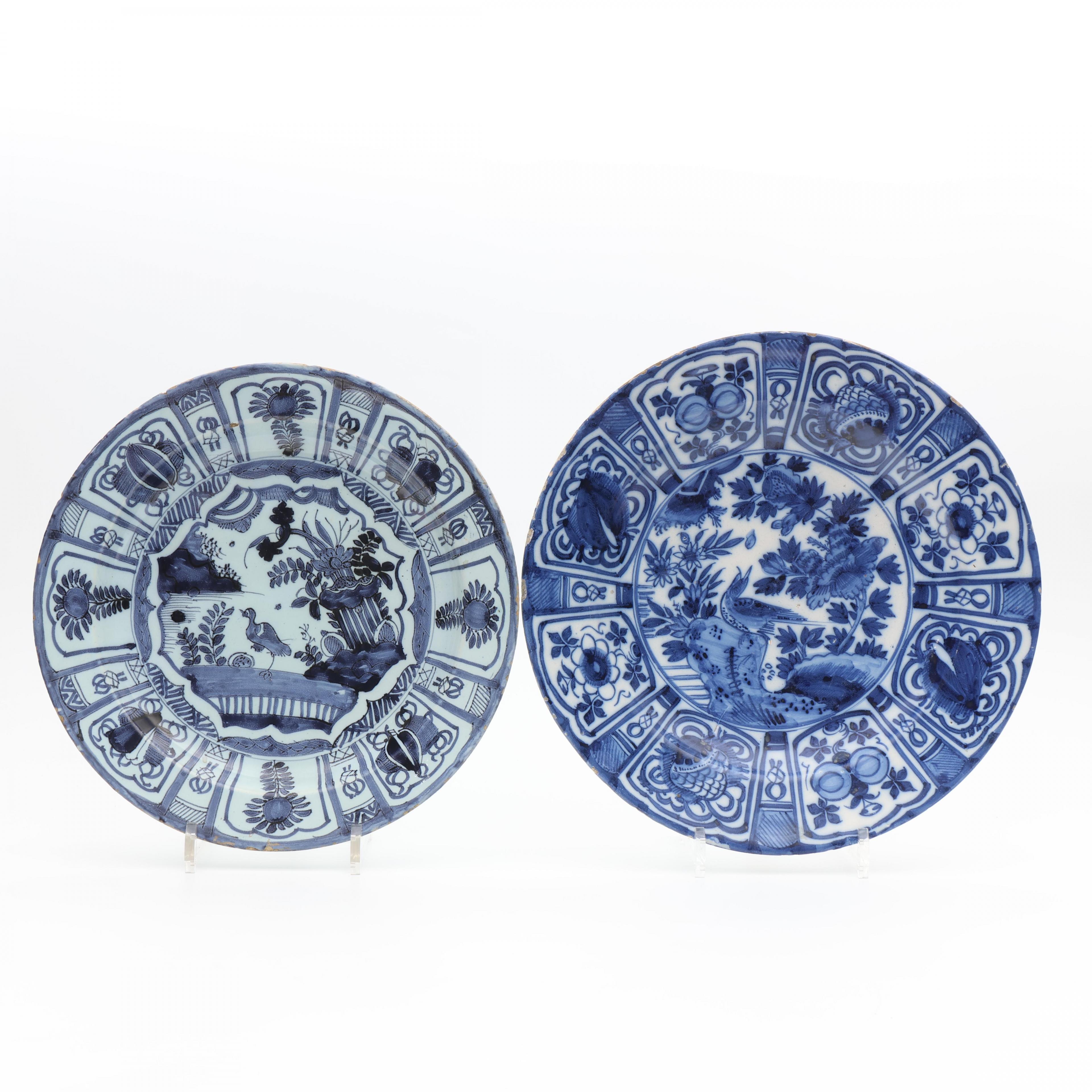Delft, twee blauwwit aardewerken kraakporselein-stijl schotels, ca. 1700,