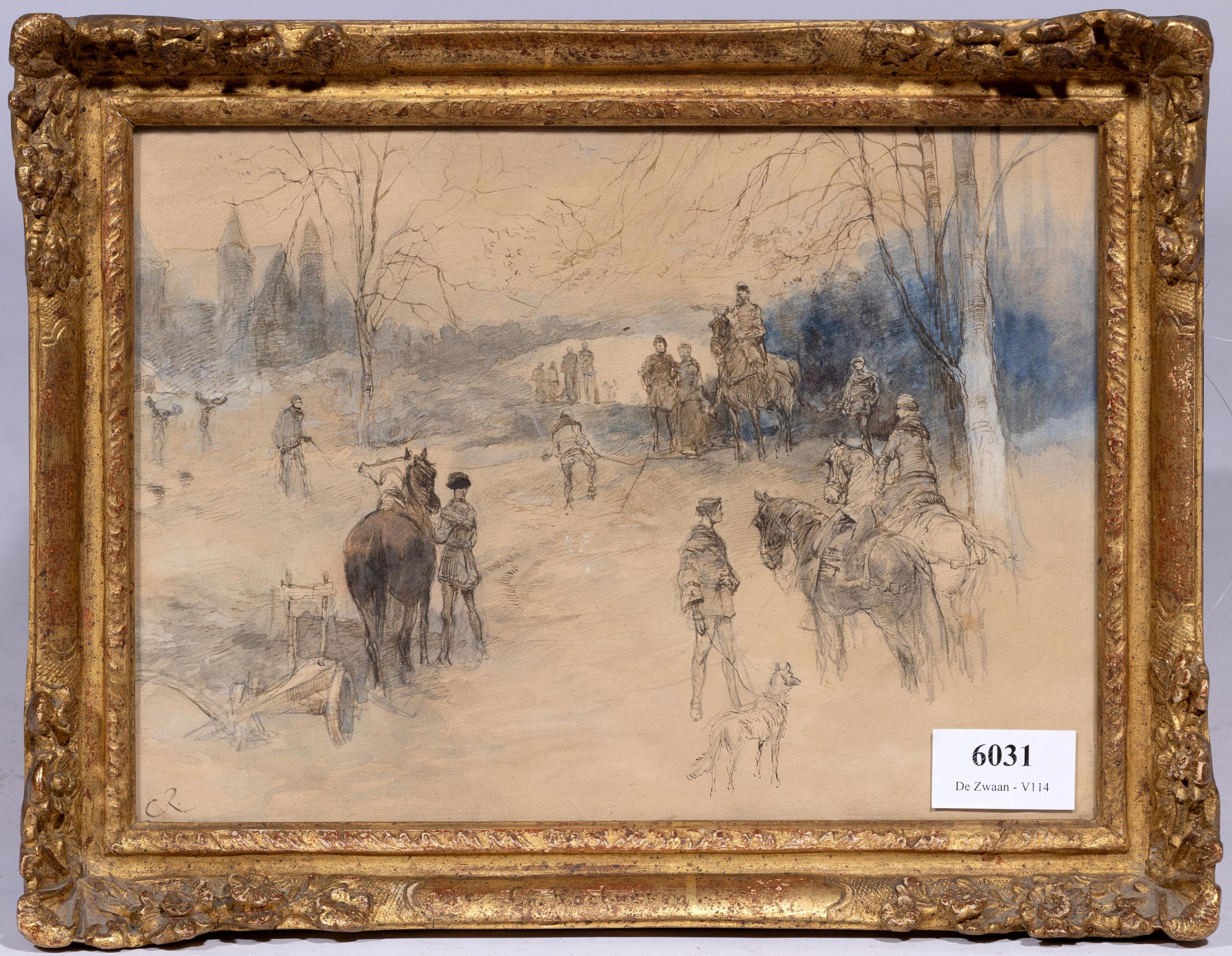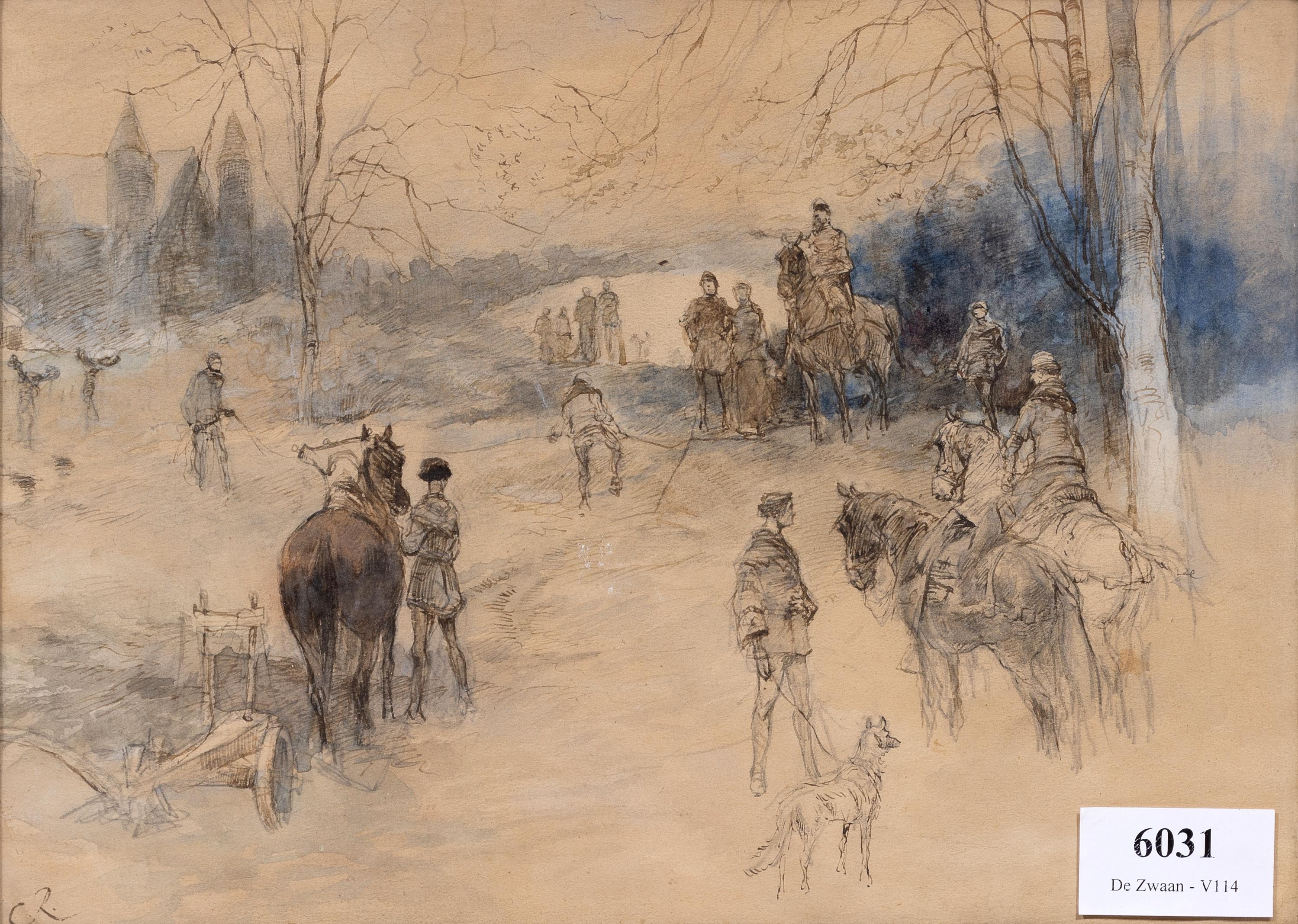 inkt en aquarel, gesign. l.o., 19 x 26 cm.