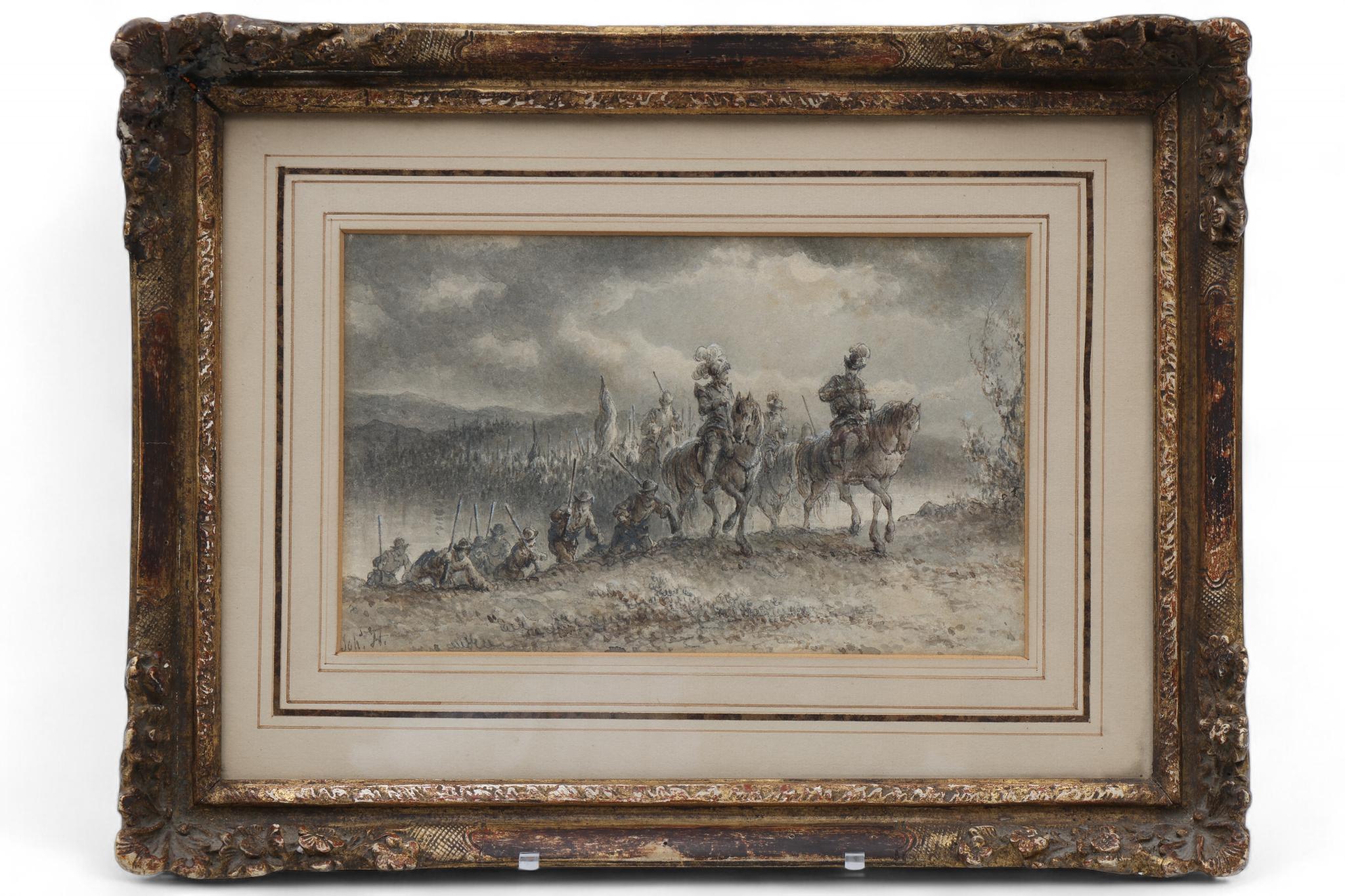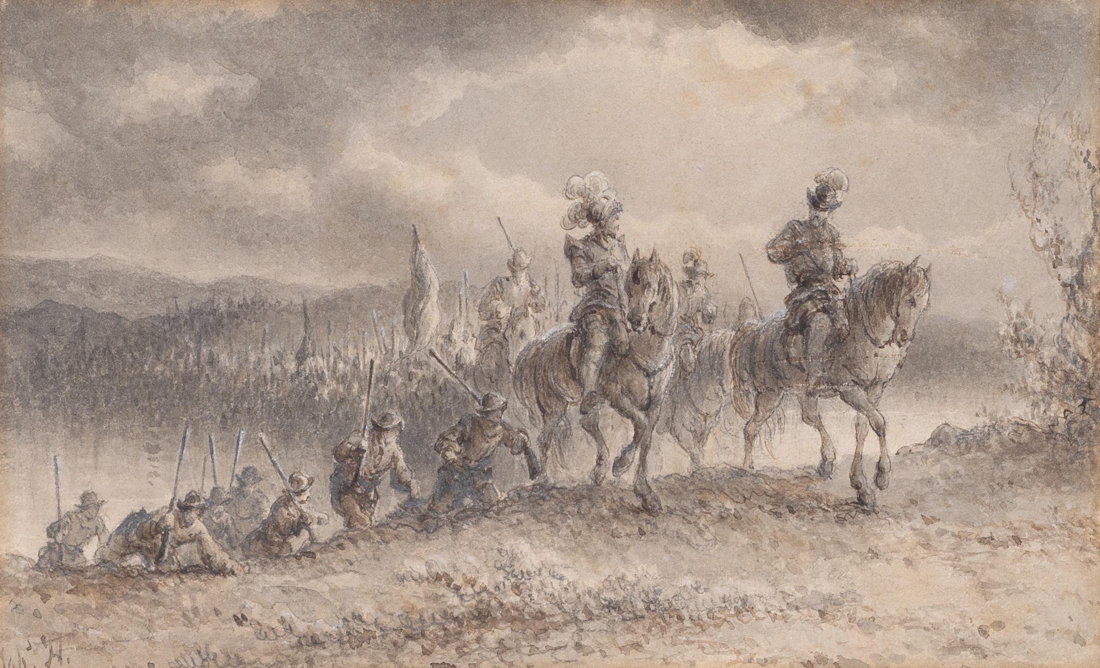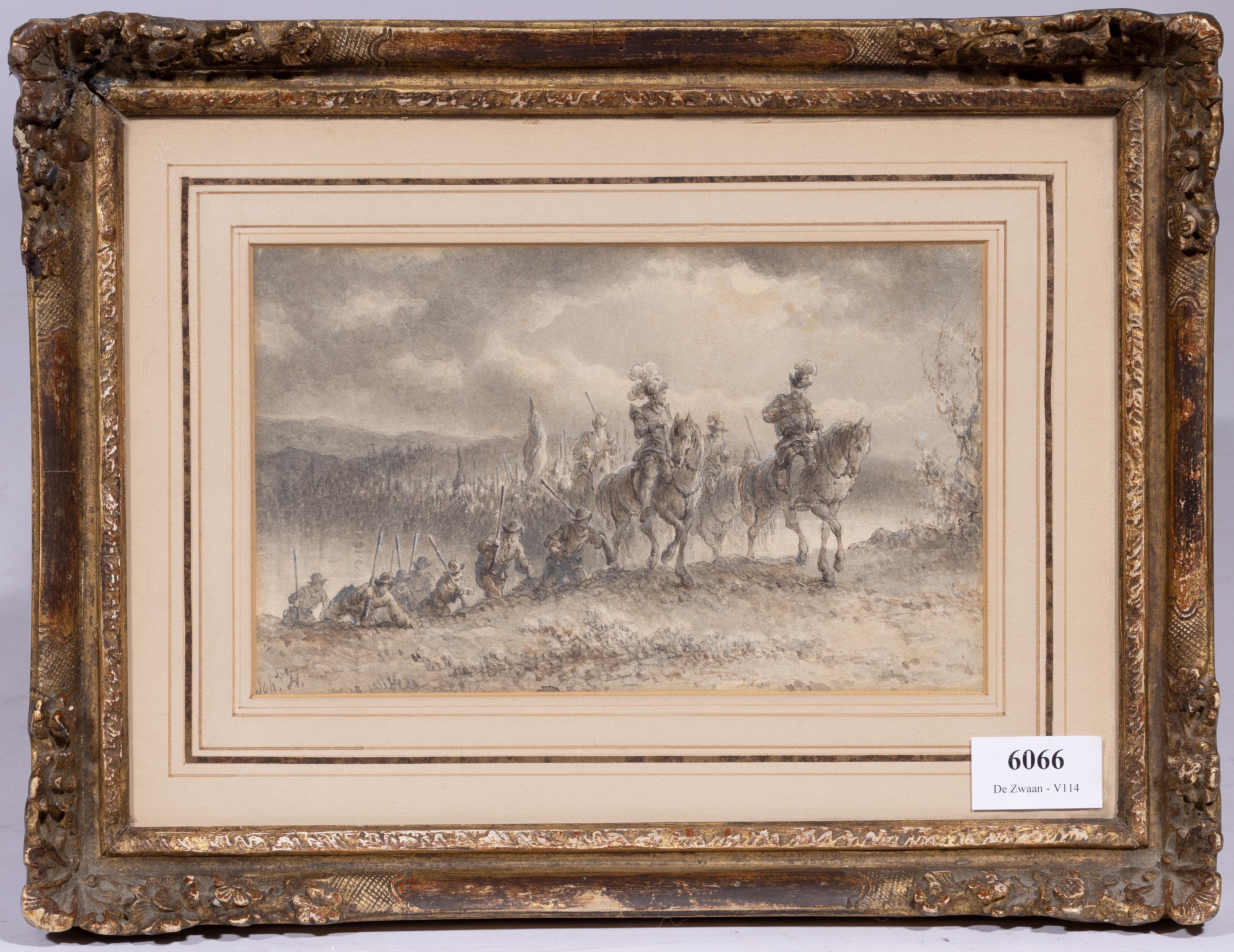 inkt en aquarel, gesign. l.o., 13 x 21 cm.