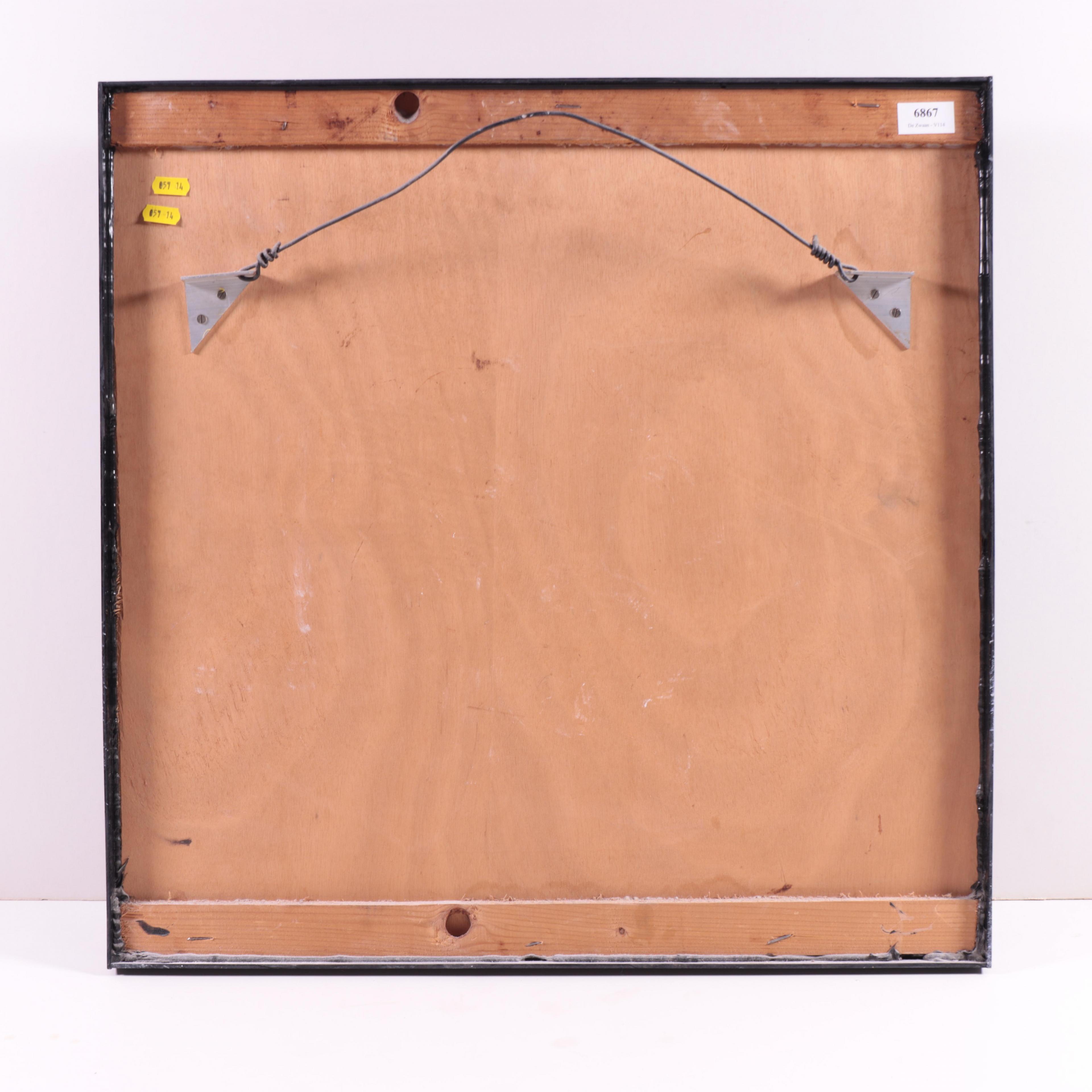 gemengde techniek op paneel, formaat incl. lijst 60 x 60 cm.