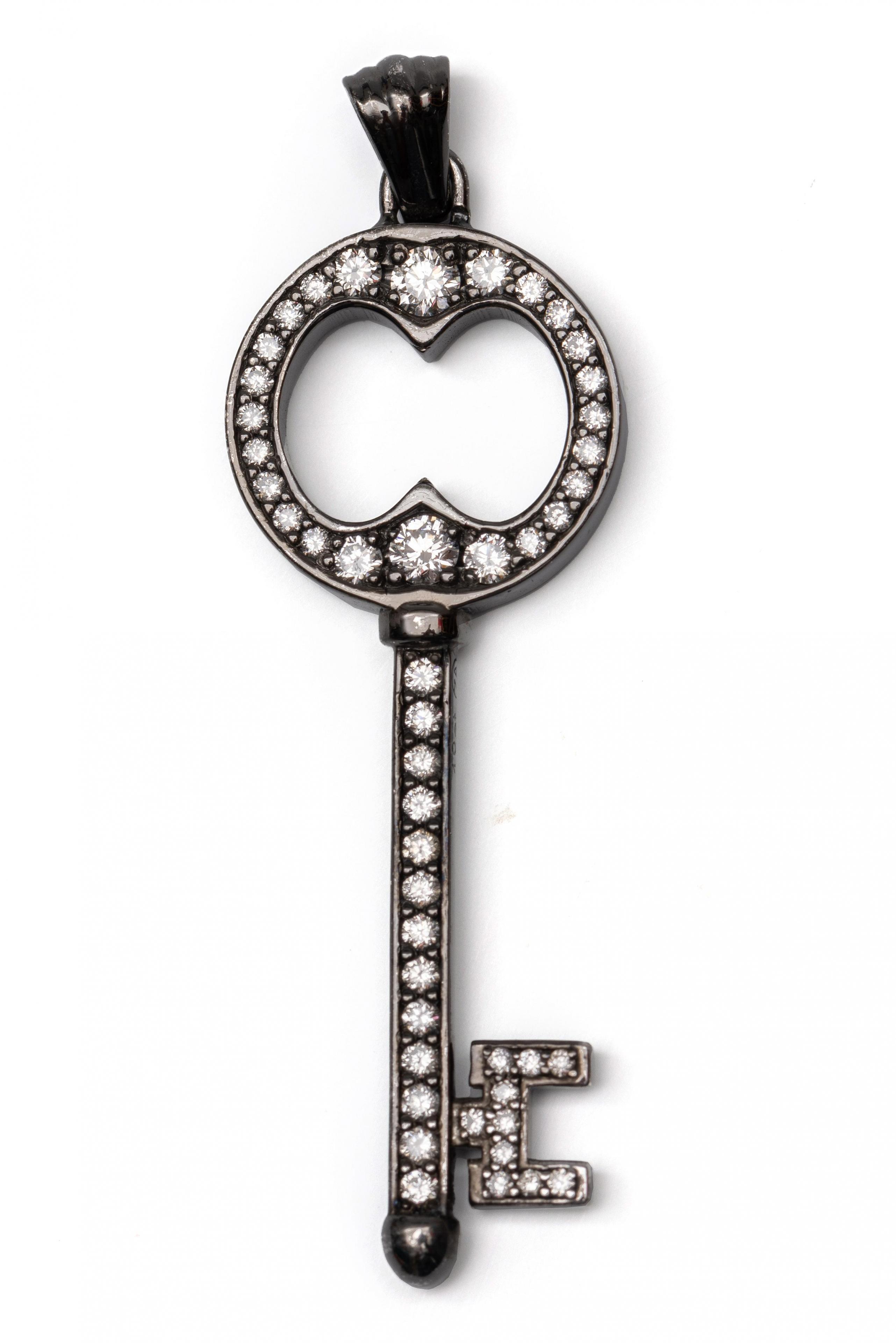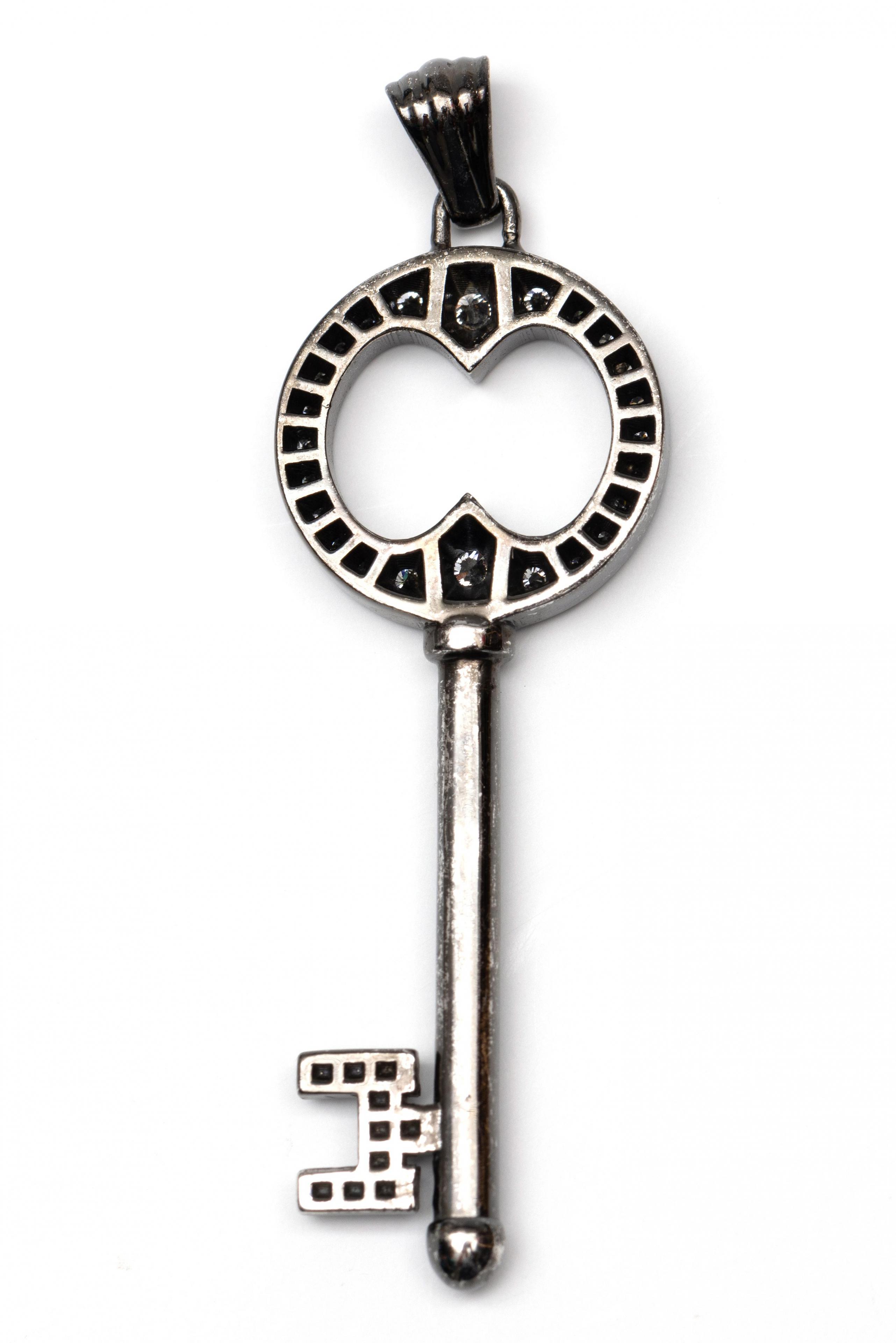 In de vorm van een sleutel, bezet met briljant geslepen diamant met een totaalgewicht van ca. 0.30 ct. Vermoedelijk Charles Greig, niet gesigneerd