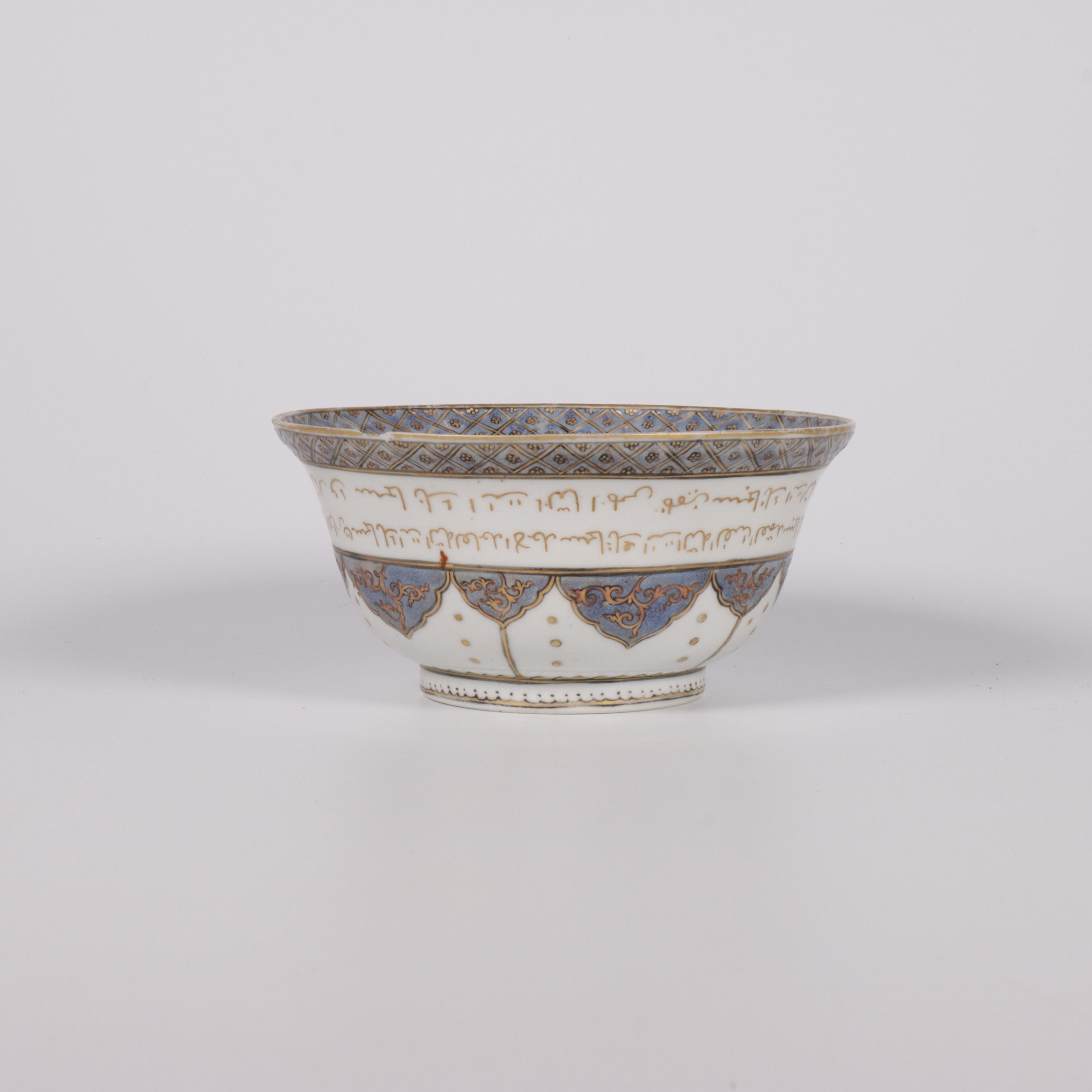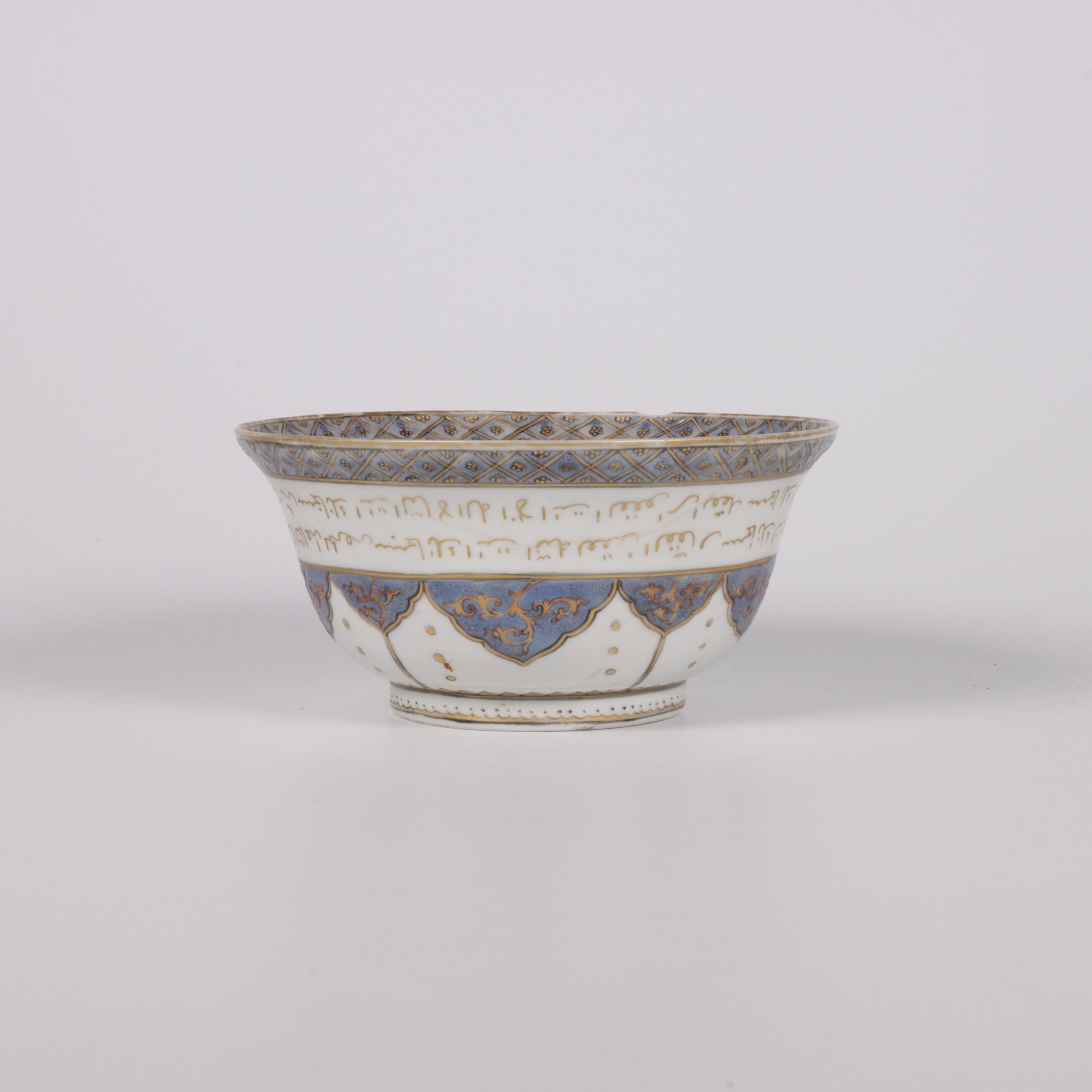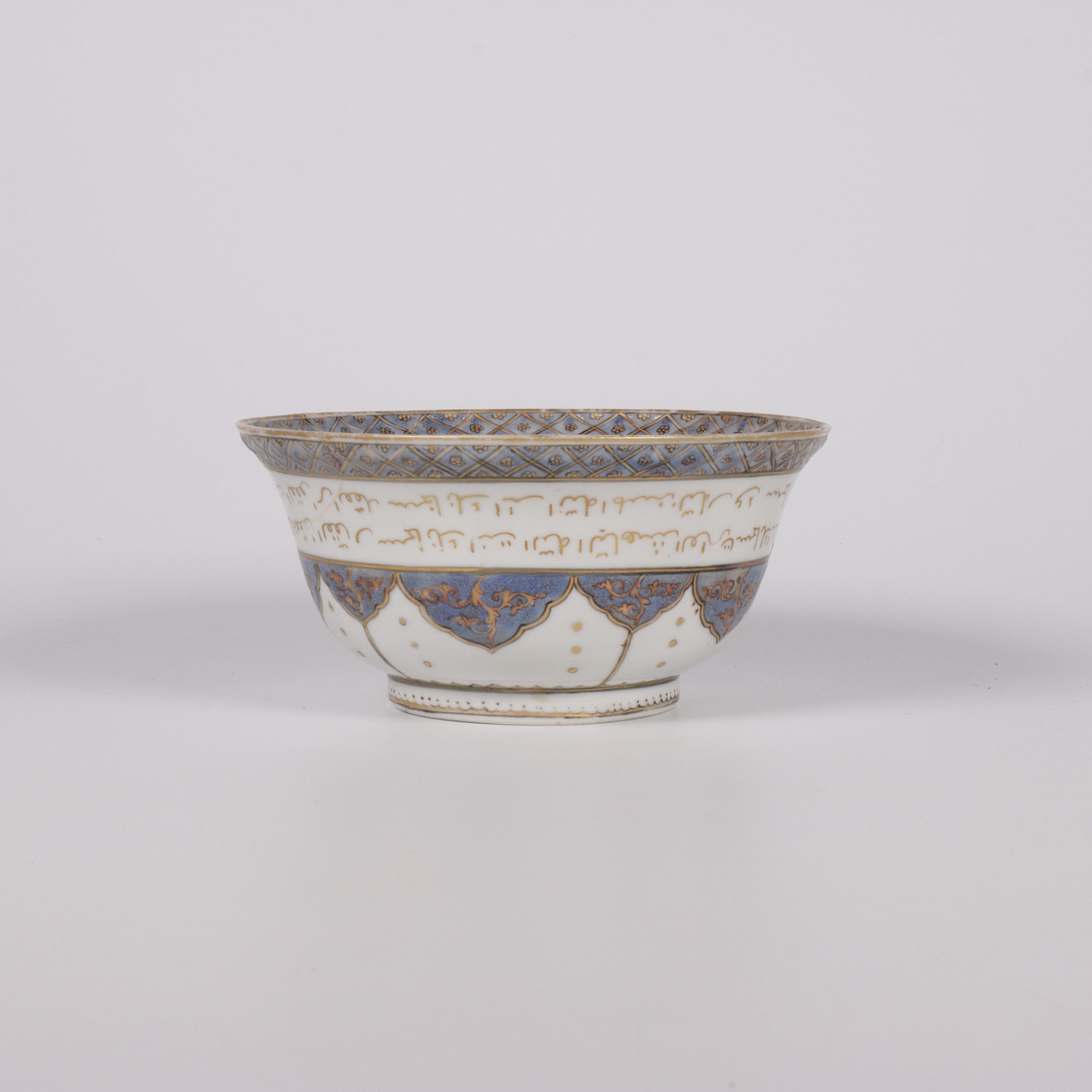 China, a blue-enamelled and gilt inscribed porcelain bowl for the Islamic market, 18th century,