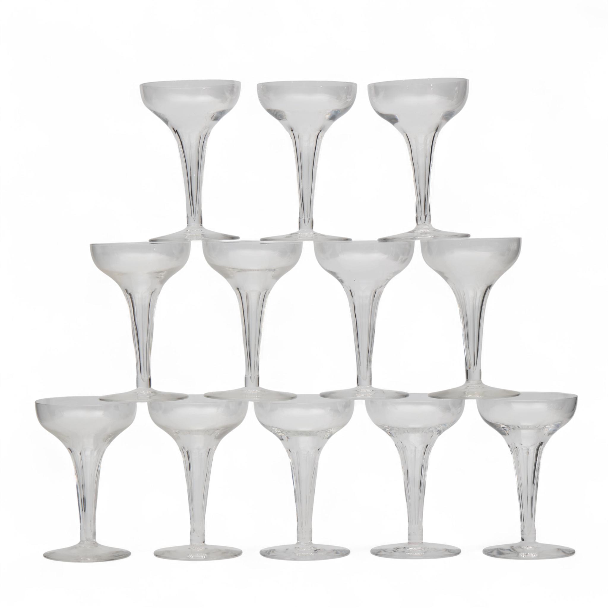 Twaalf glazen champagnecoupes, 20e eeuw,