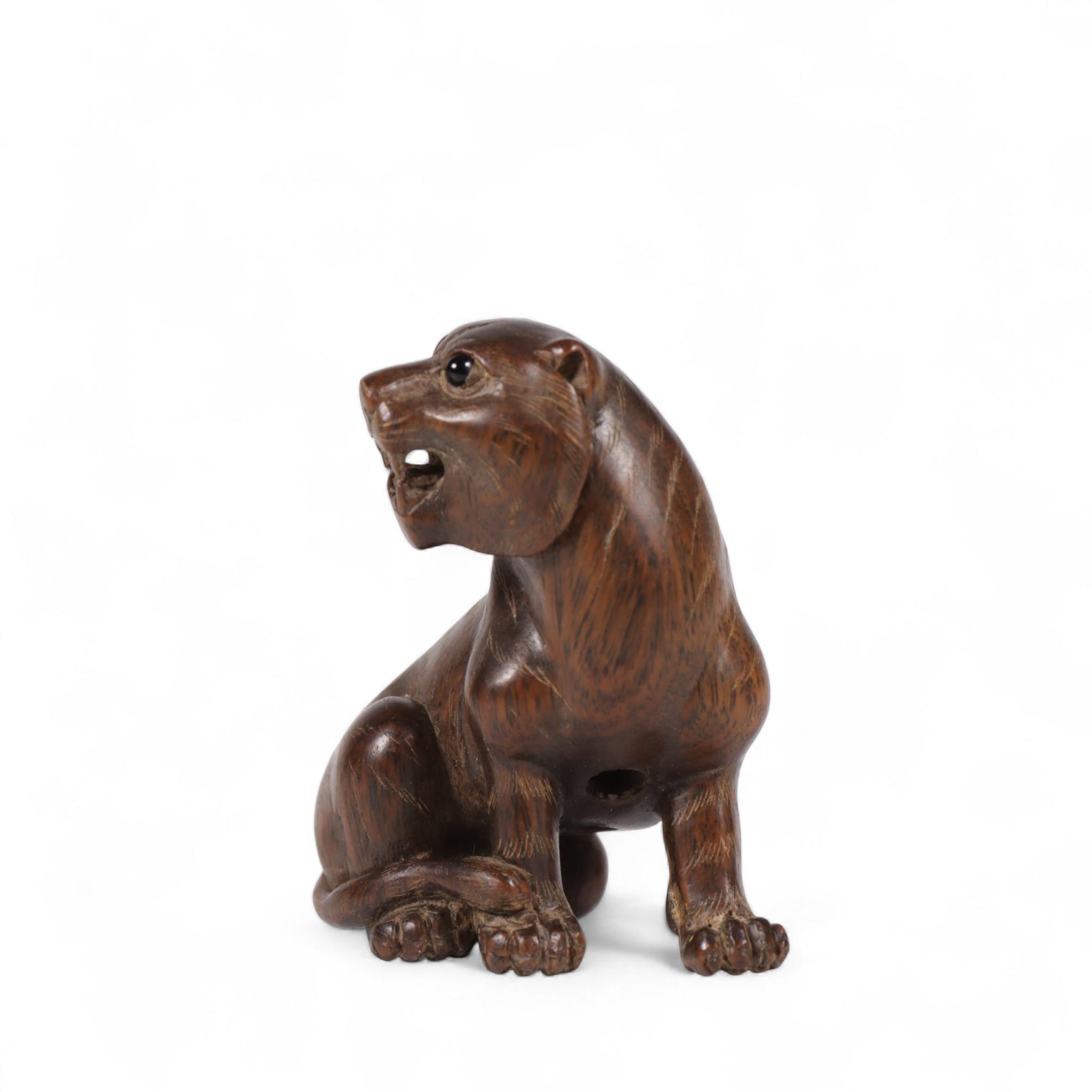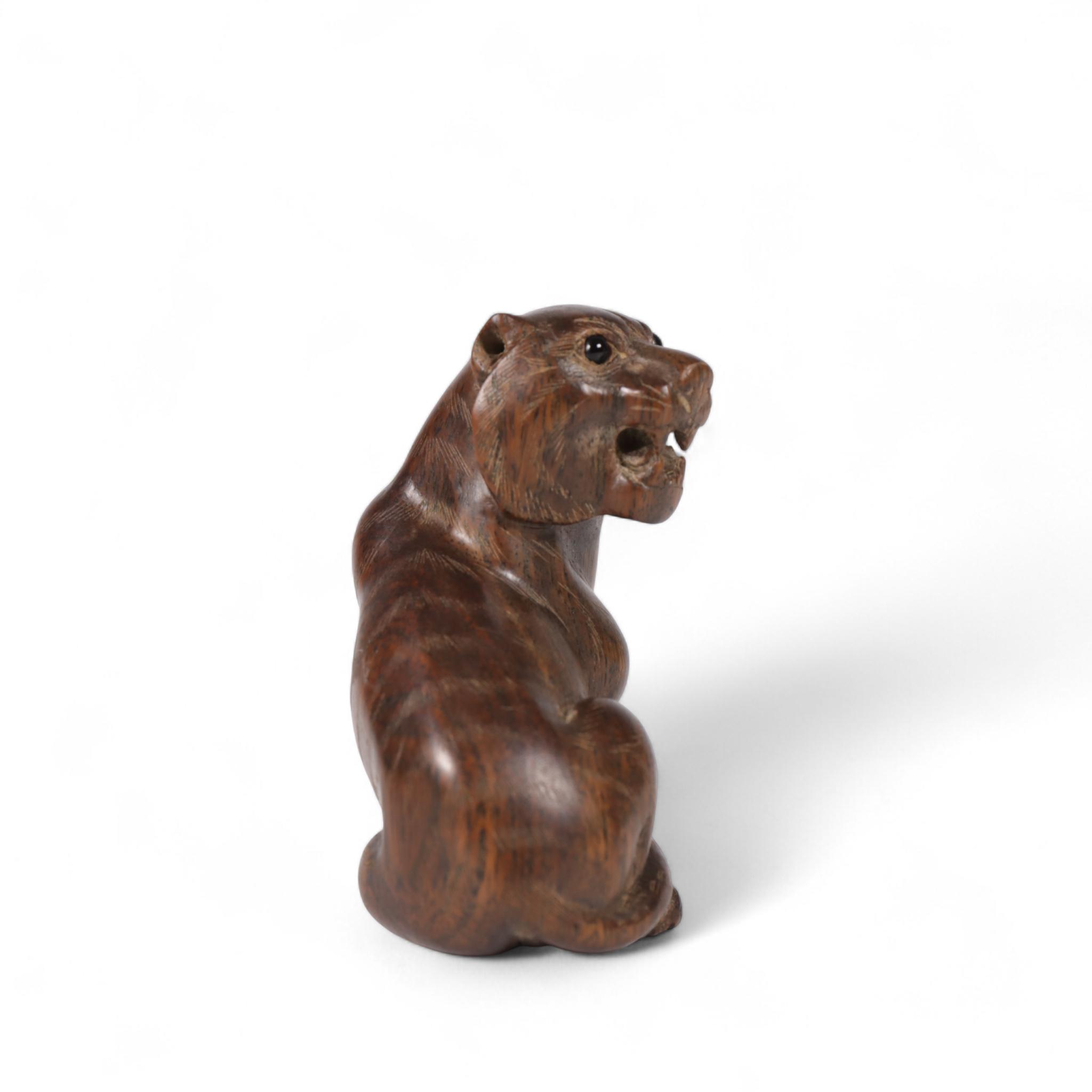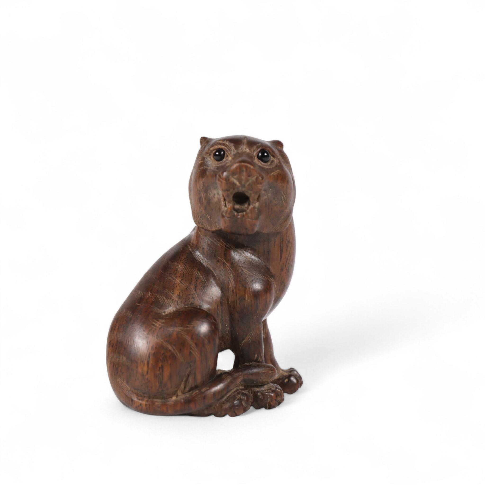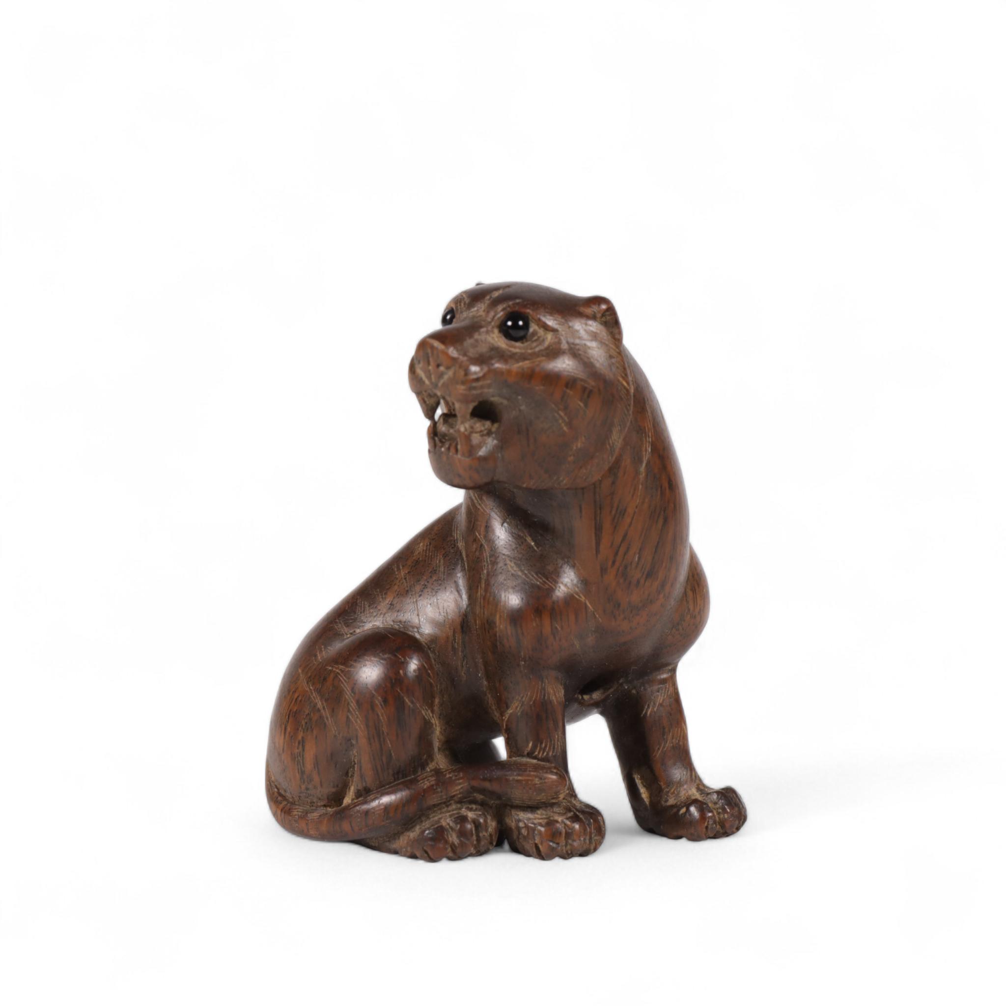 Japan, a wood netsuke of a seated tiger, 19th/ 20th century,