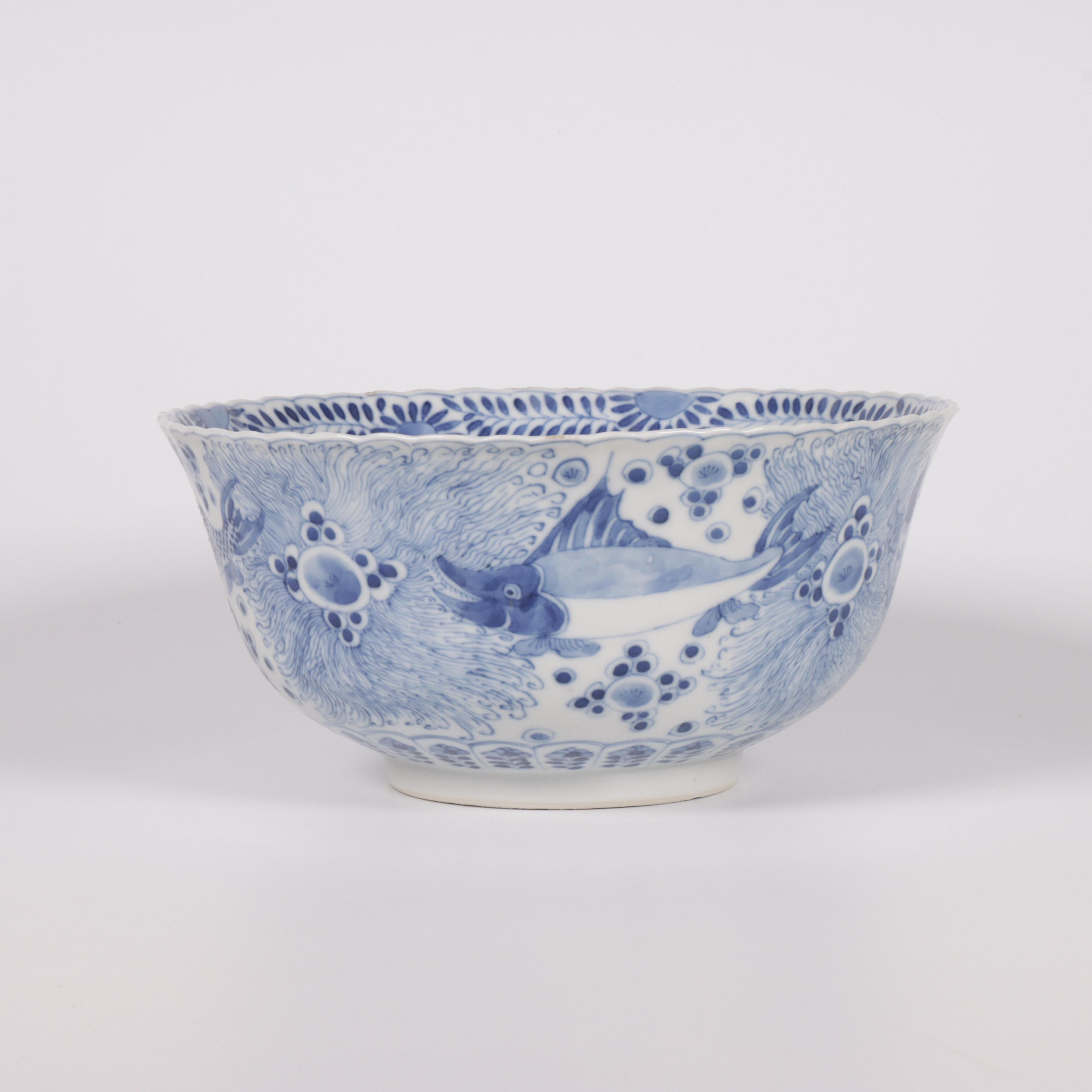 China, a blue and white porcelain 'fish and crab' bowl, 19th century,