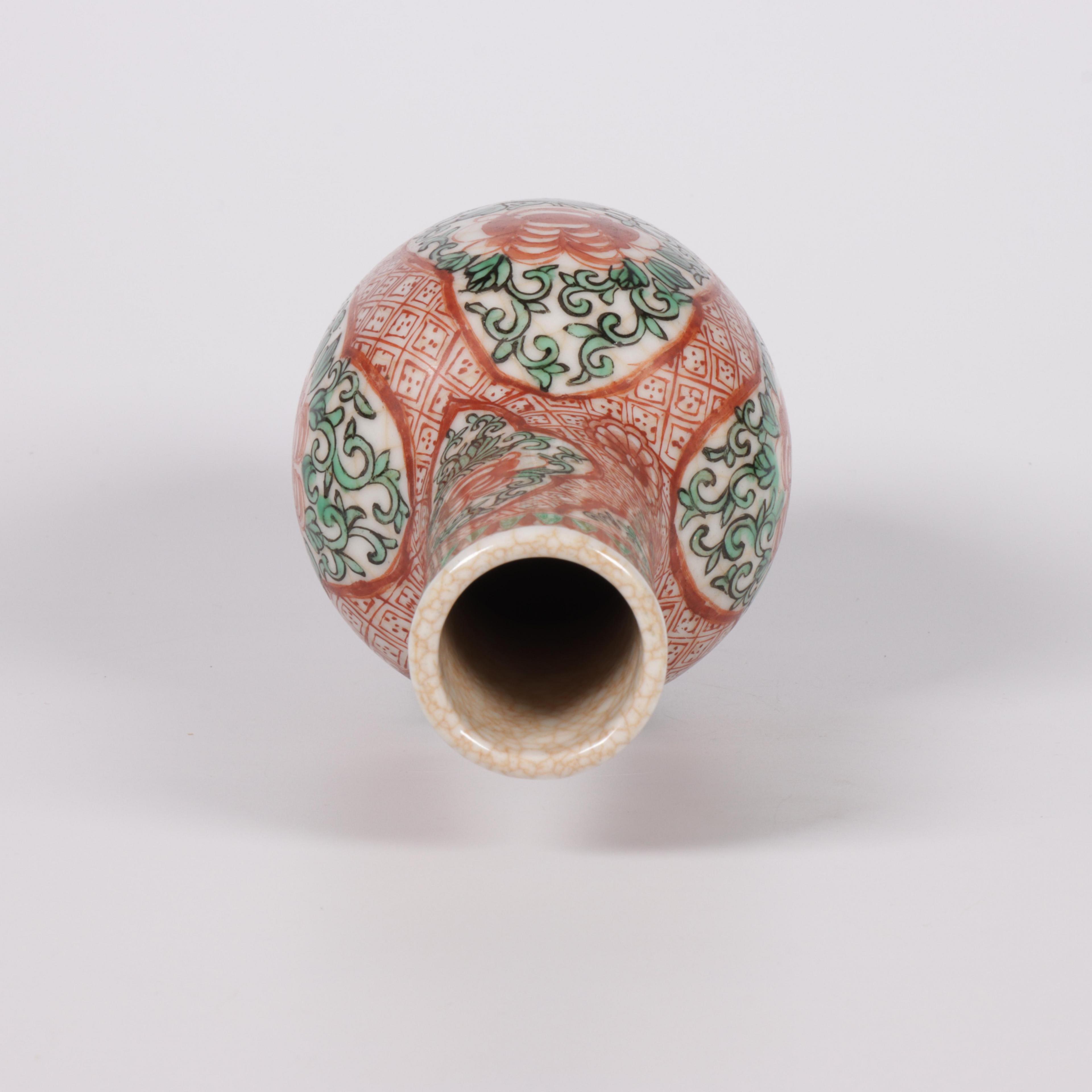 decorated with panels of peony reserved on a lappet ground on a crackled cream base
