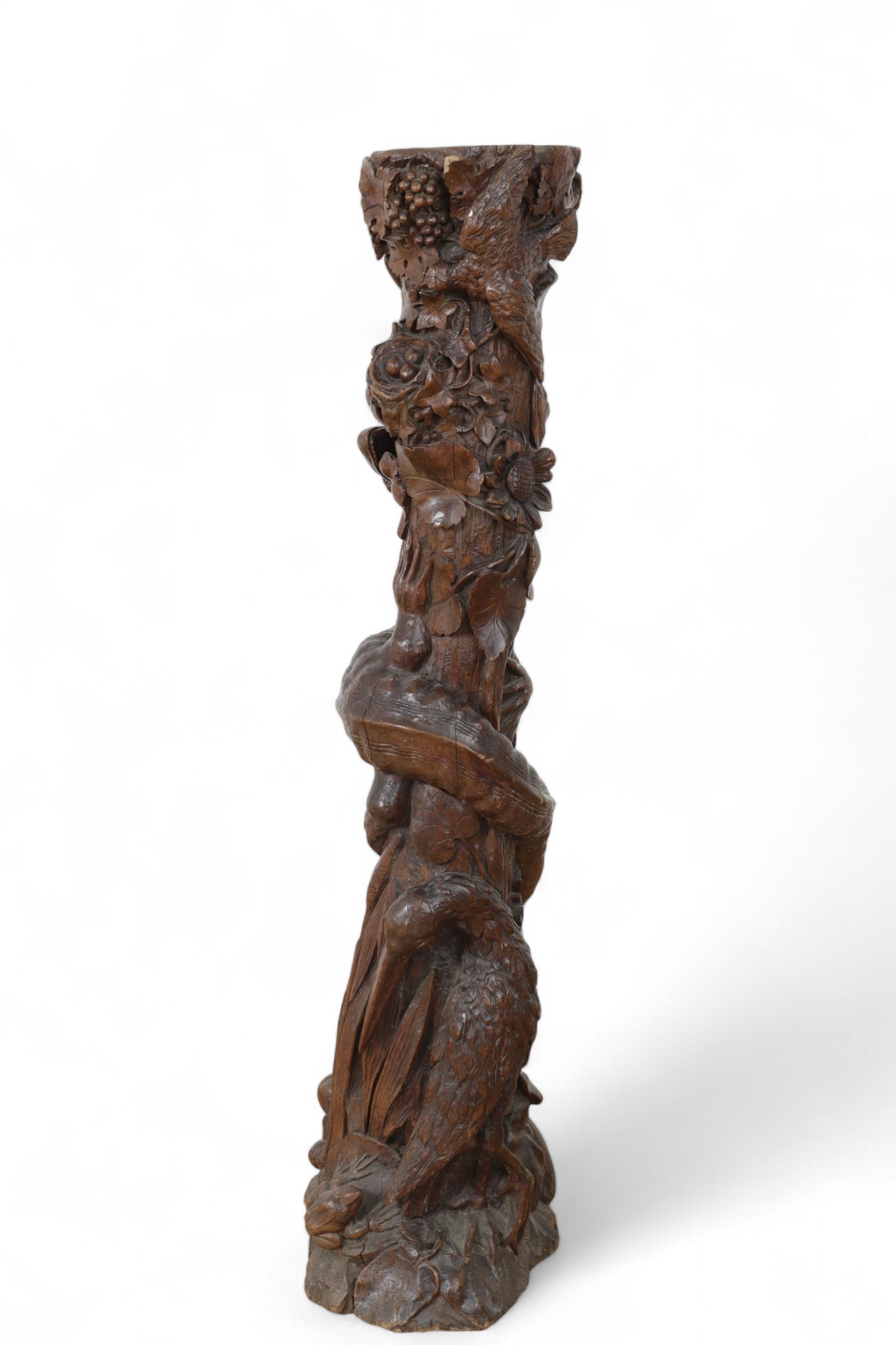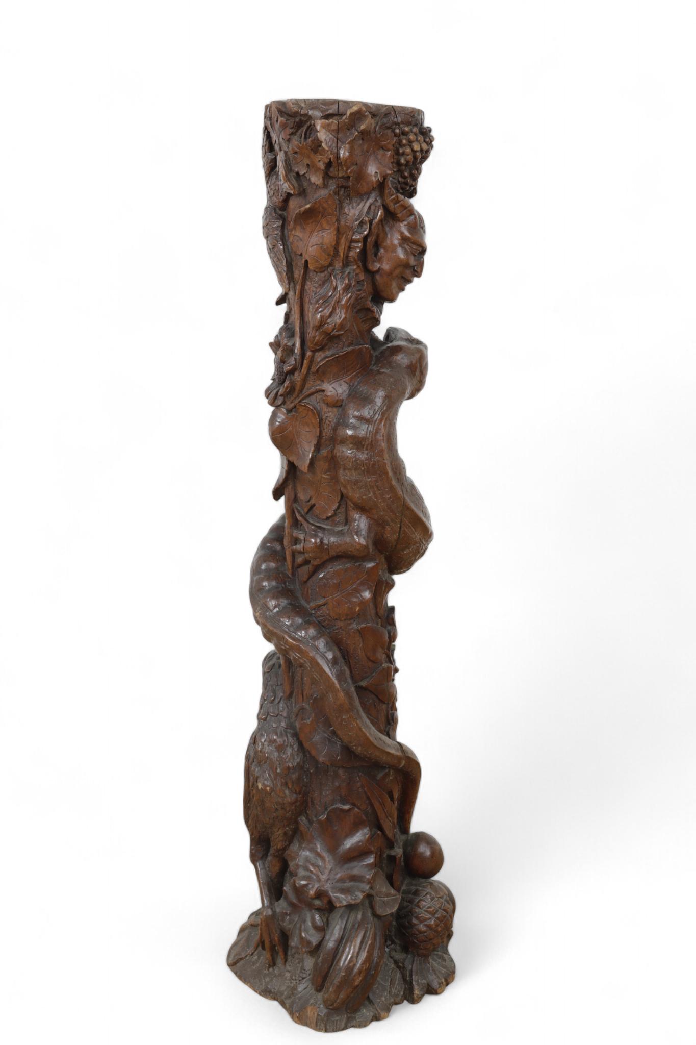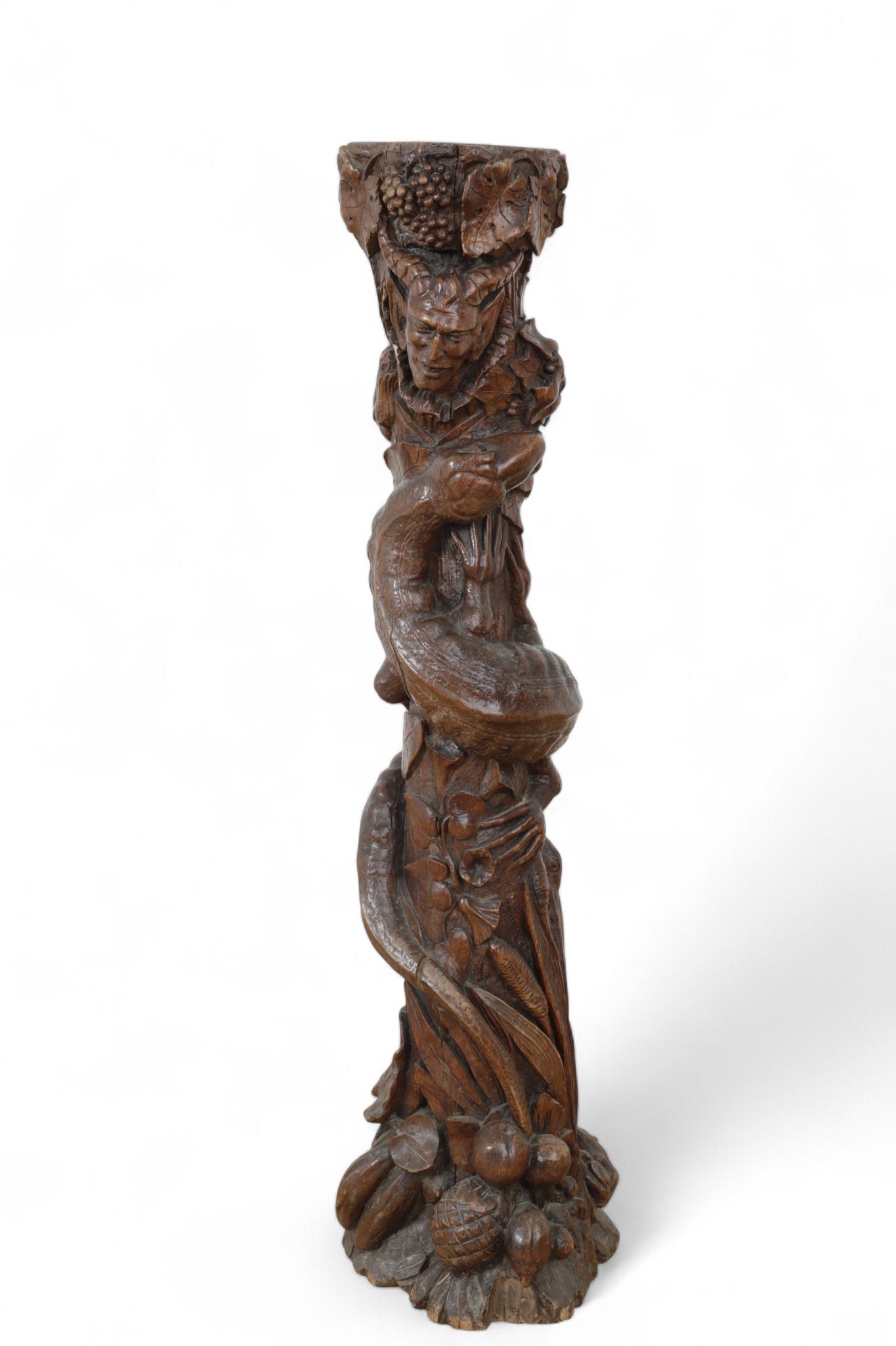 Italië, rijk gestoken walnoten zuil, 'Allegorie op het leven', vroeg 19e eeuw;