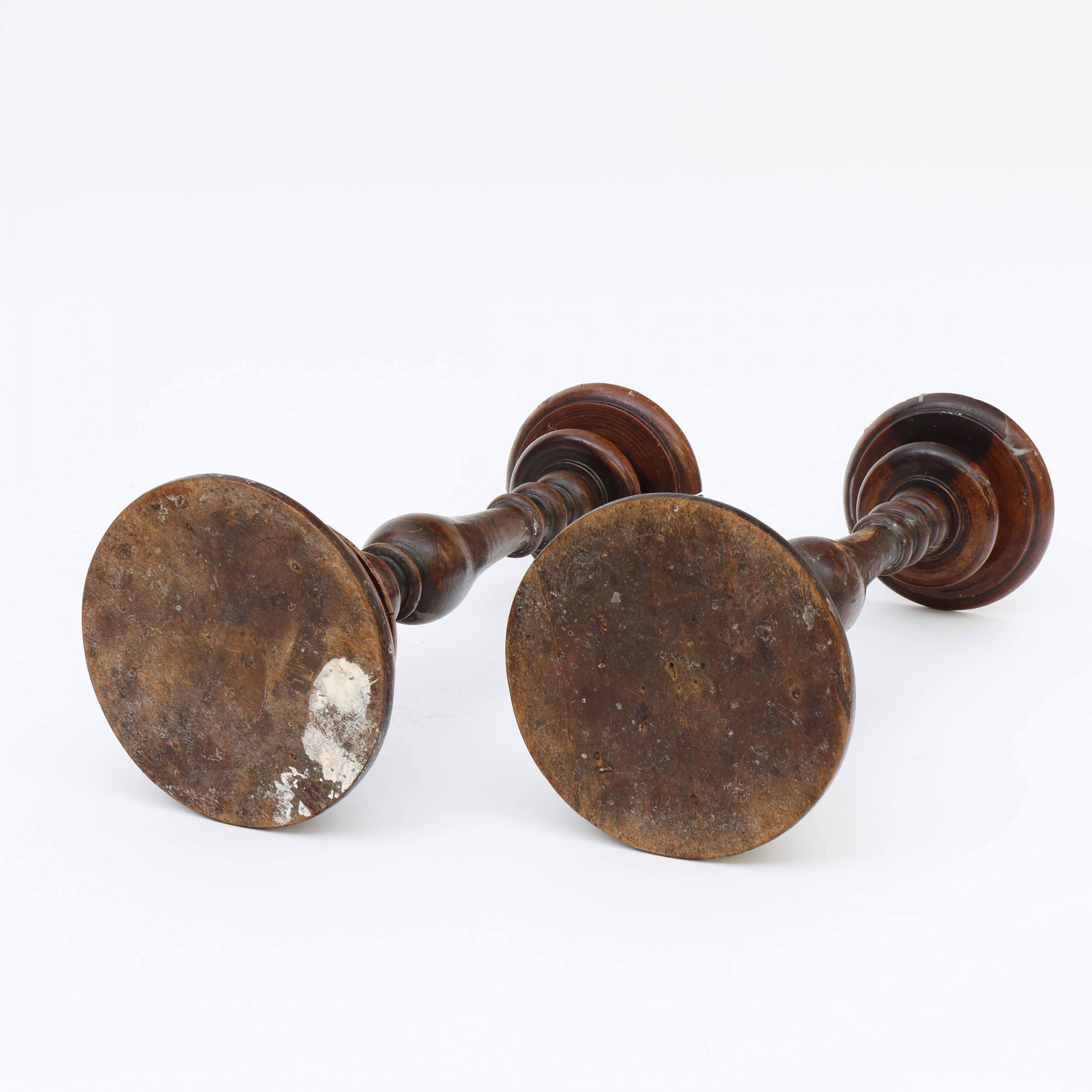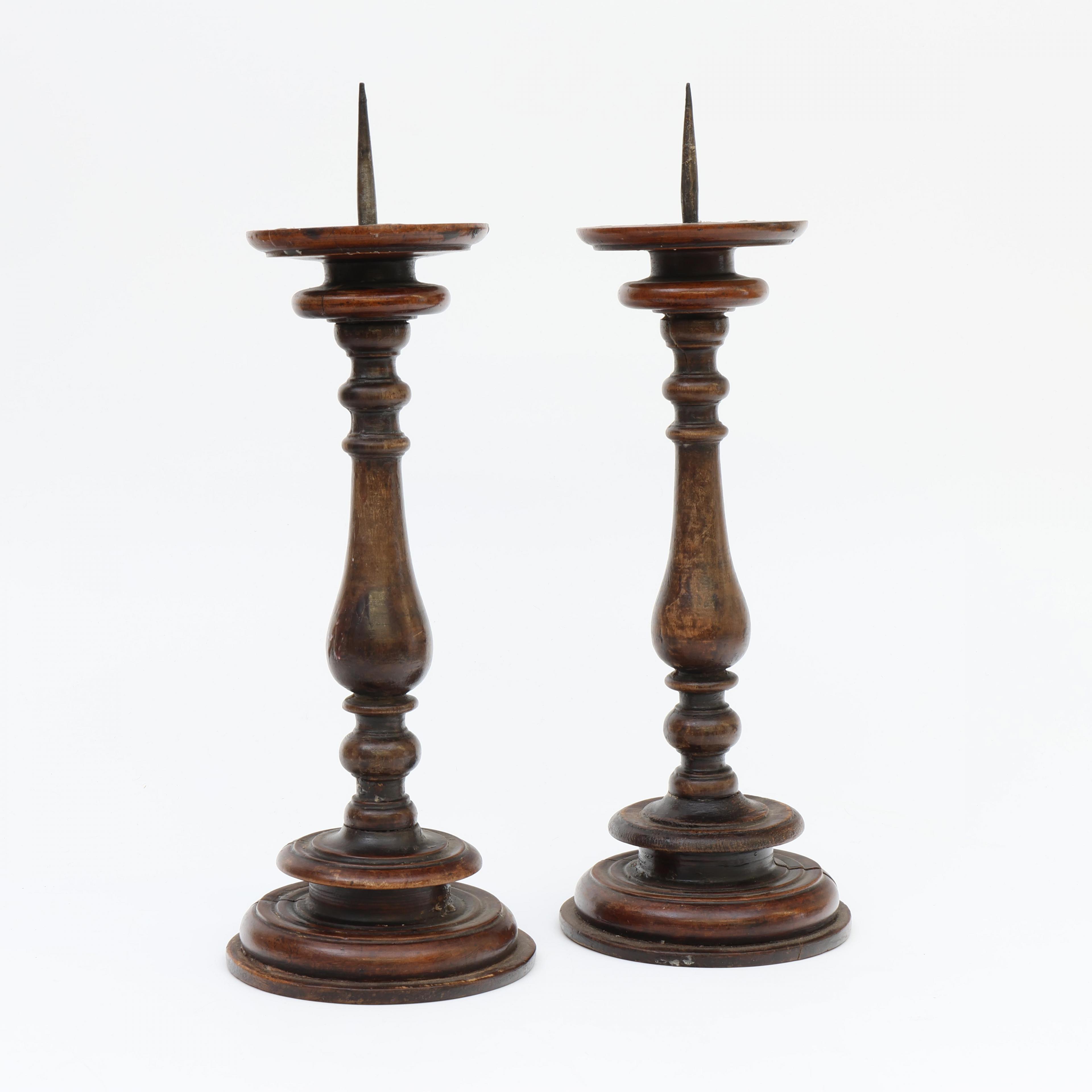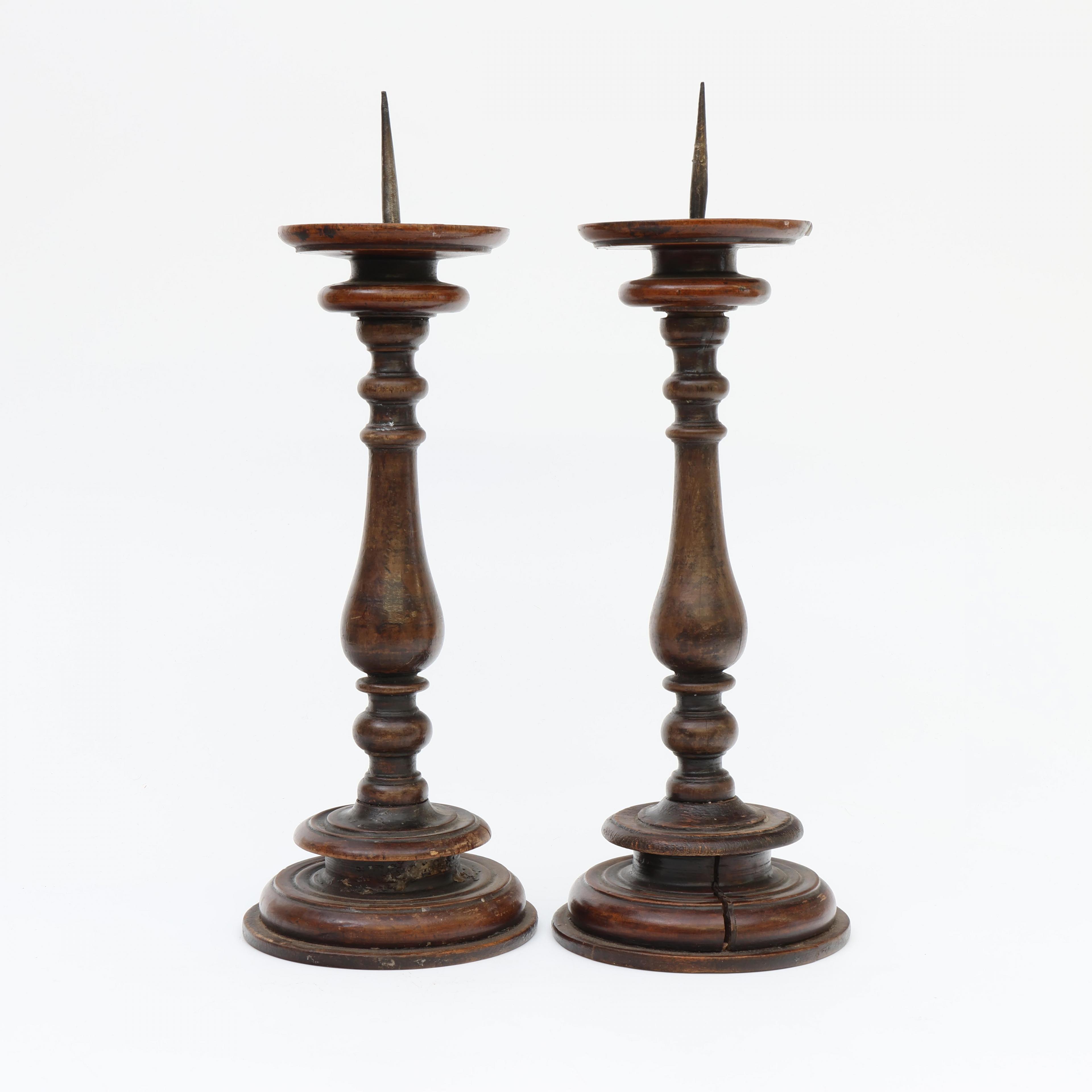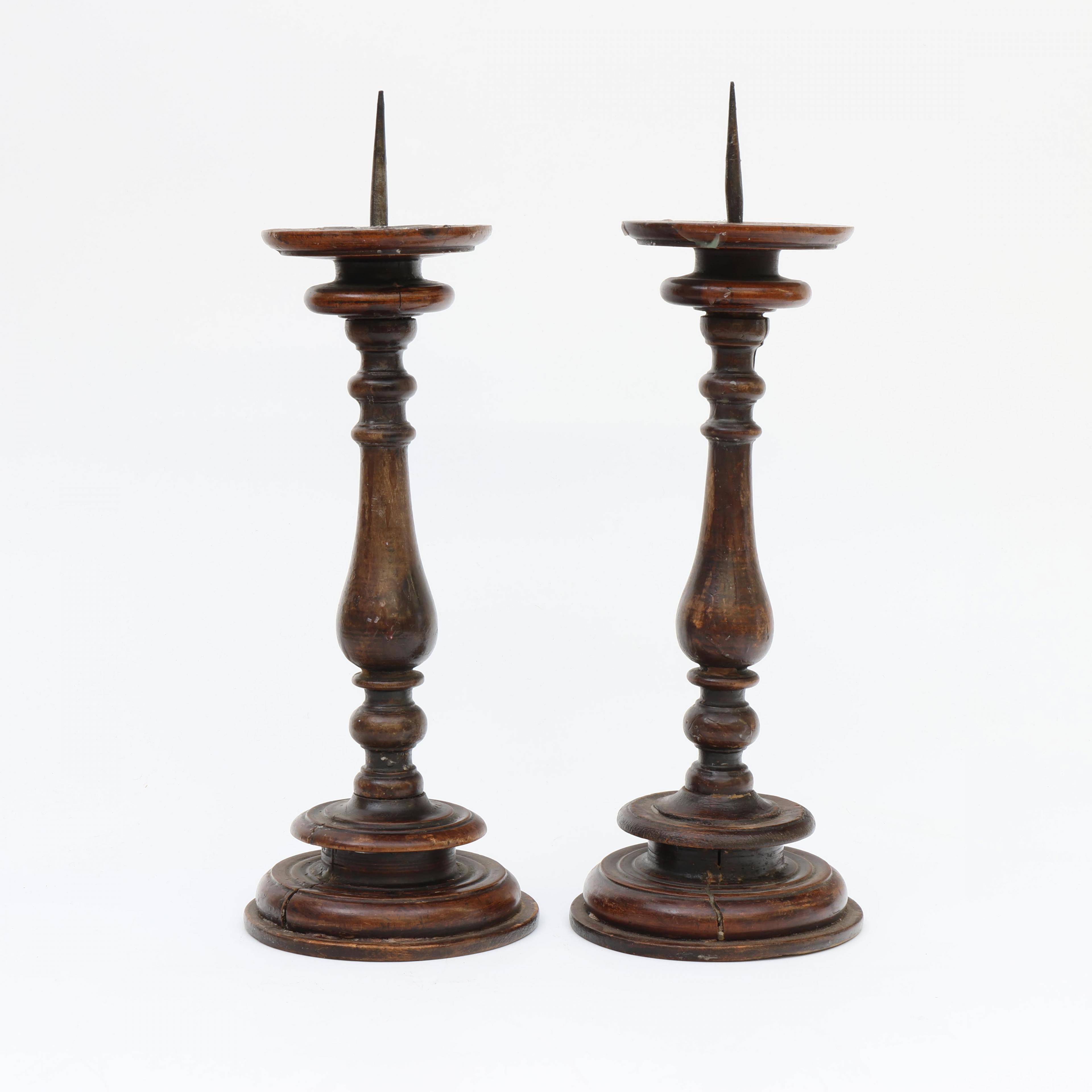 Italië, paar notenhouten gedraaide penkandelaars, 17e eeuw;