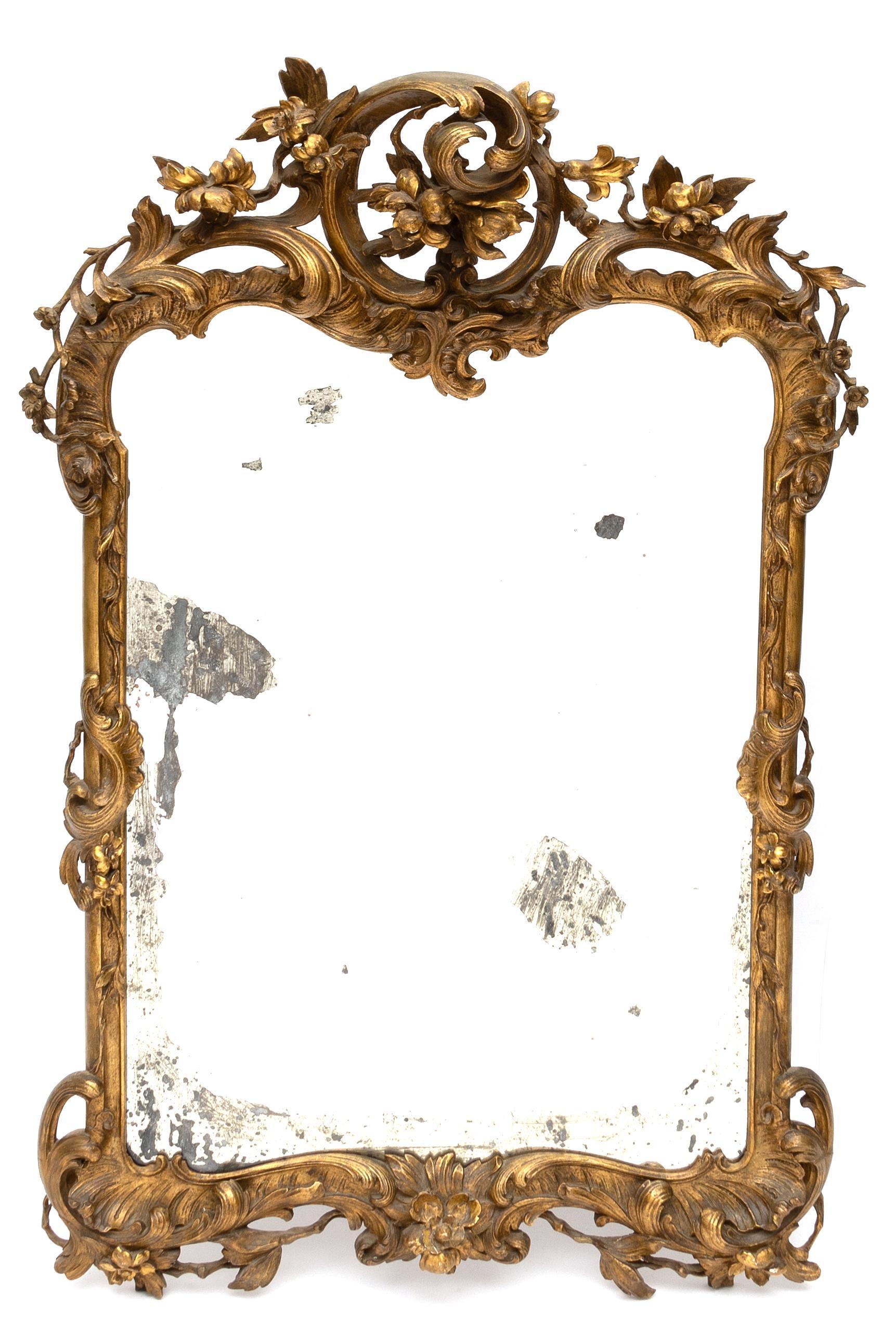 met opengewerkte kuif. Het geheel rijkelijk versierd met blad- en bloemranken, acanthusbladeren en schelpornamenten