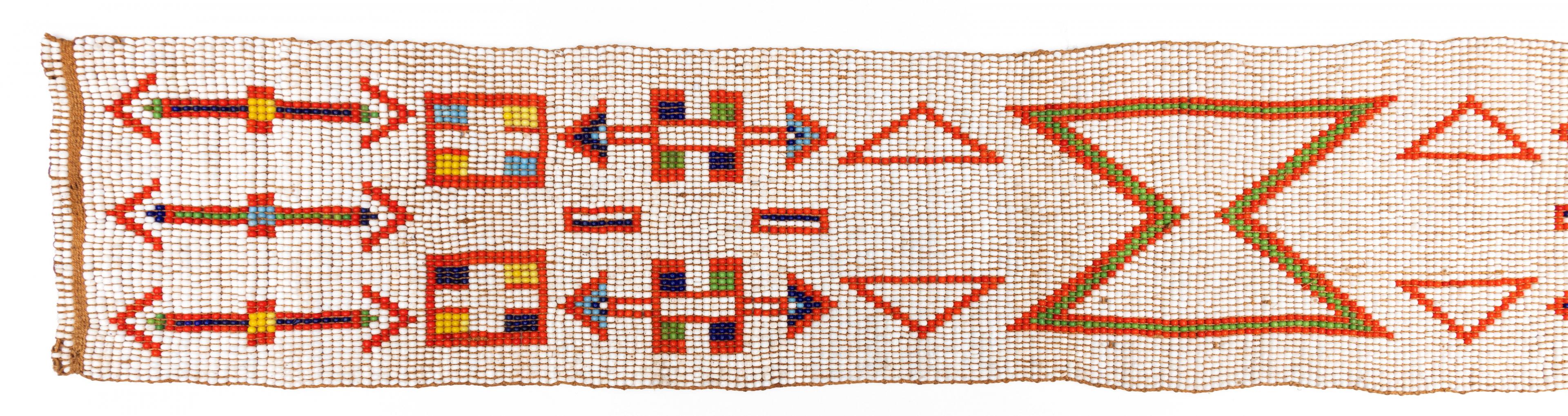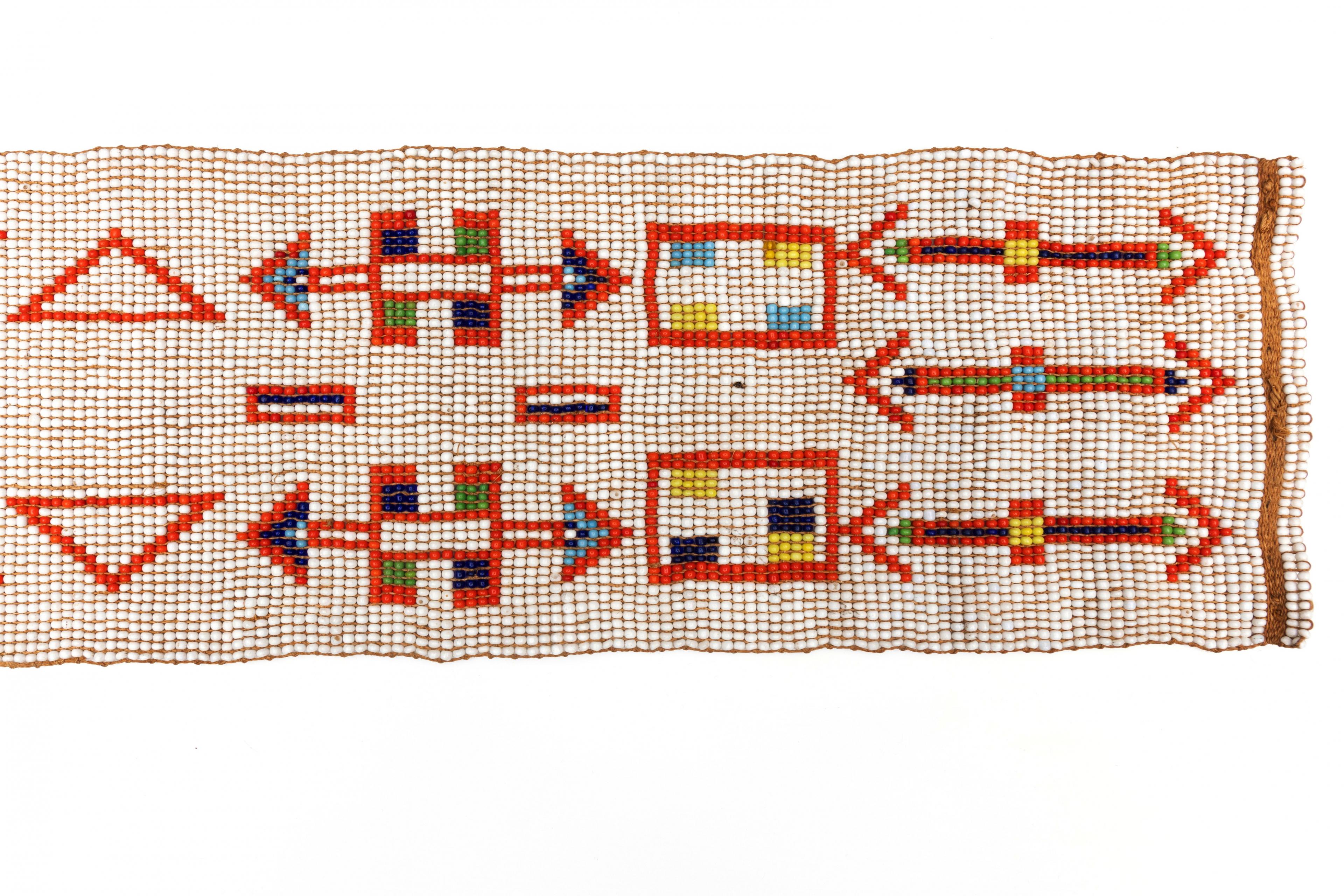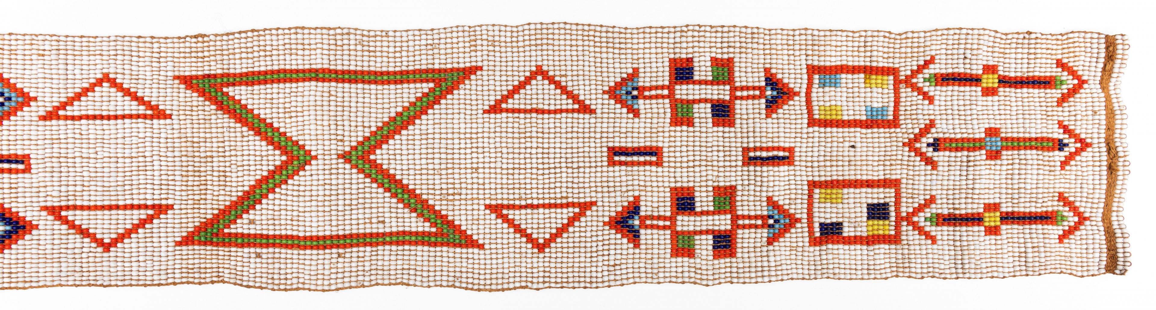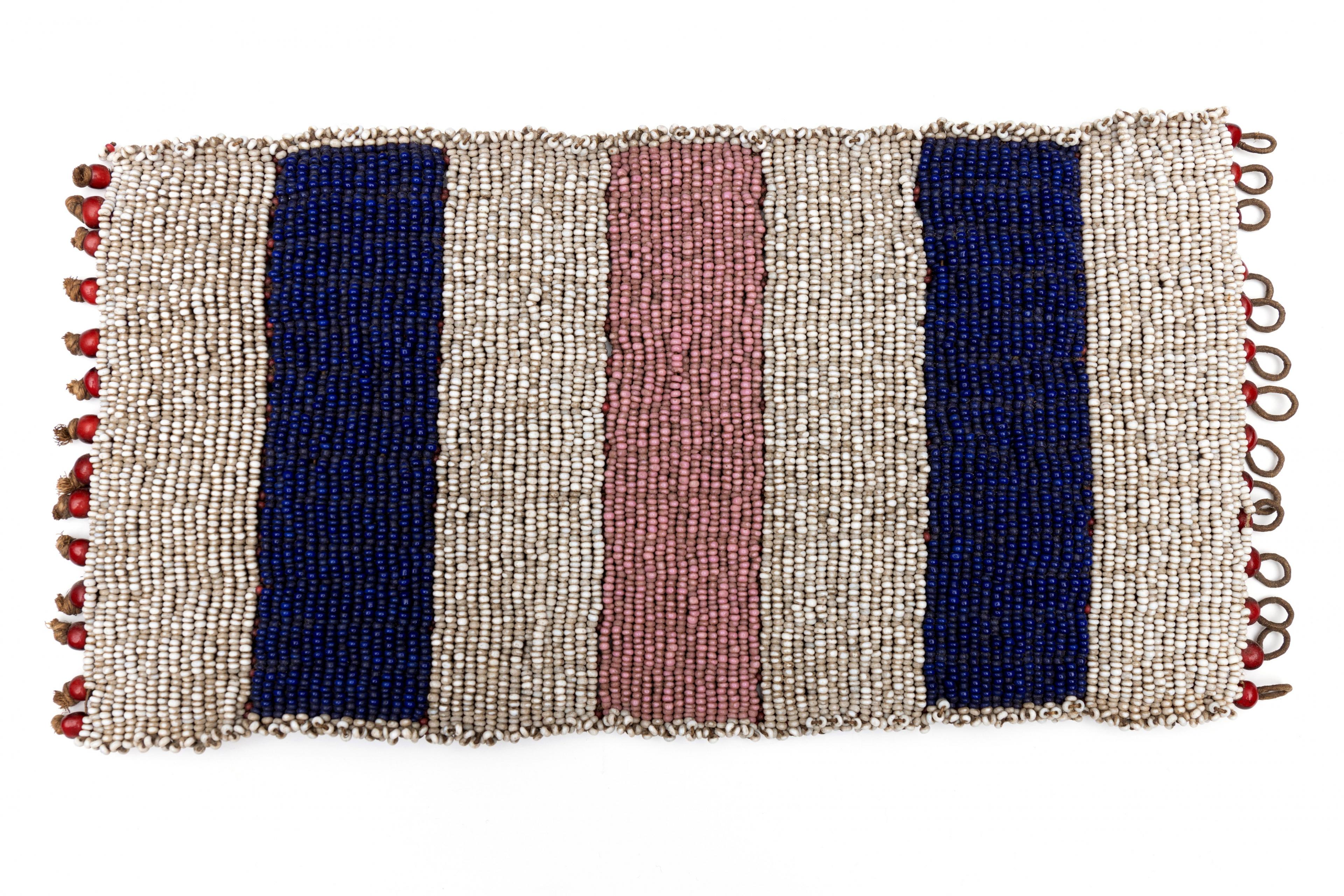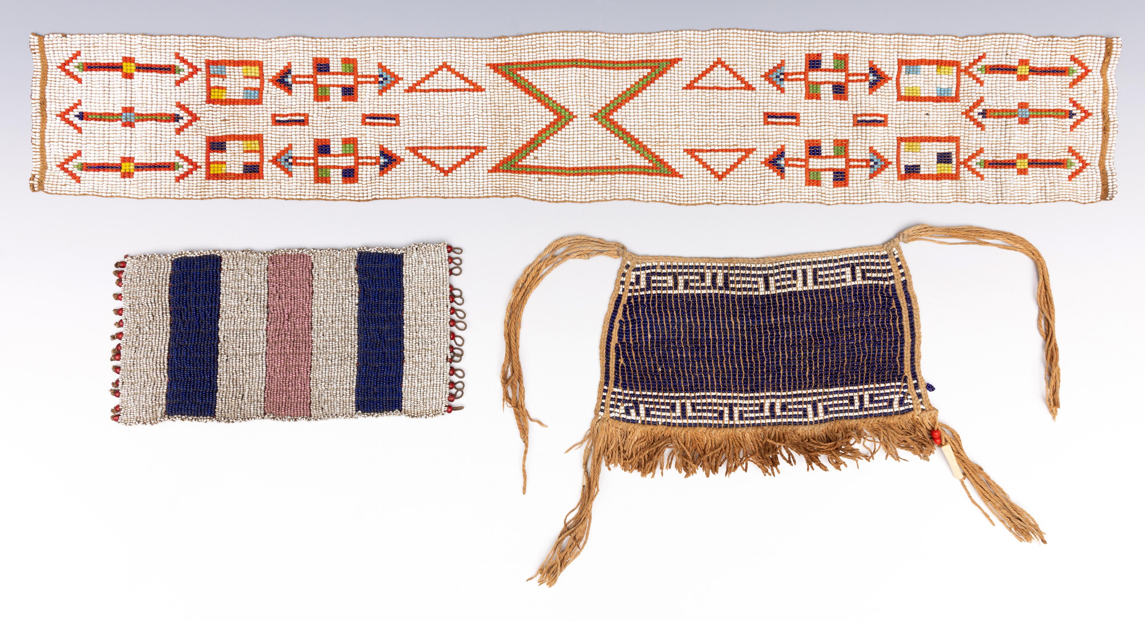 North America, Native American, Plains, two beaded rectangular panels and an Amazonian Indian blue beaded panel;